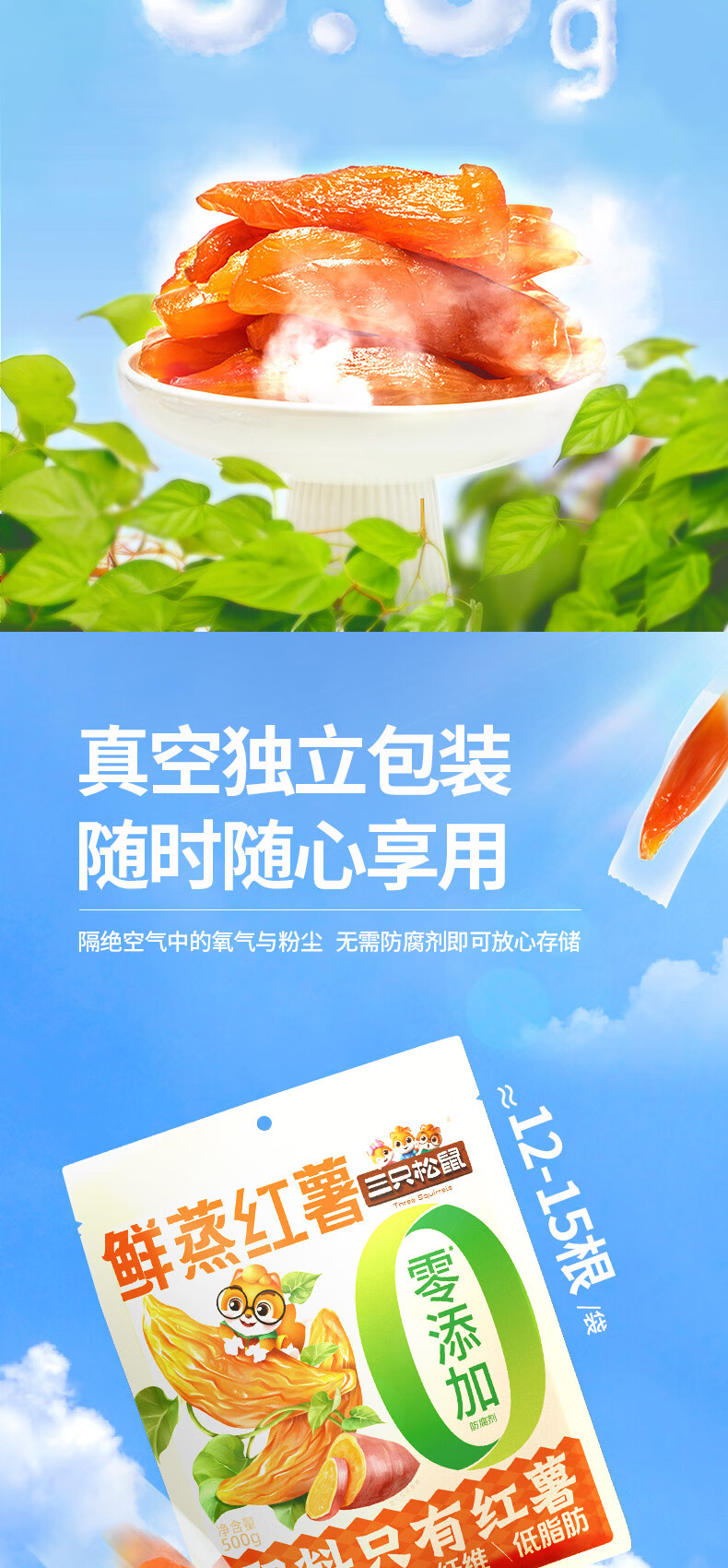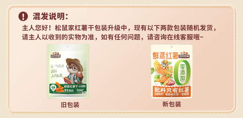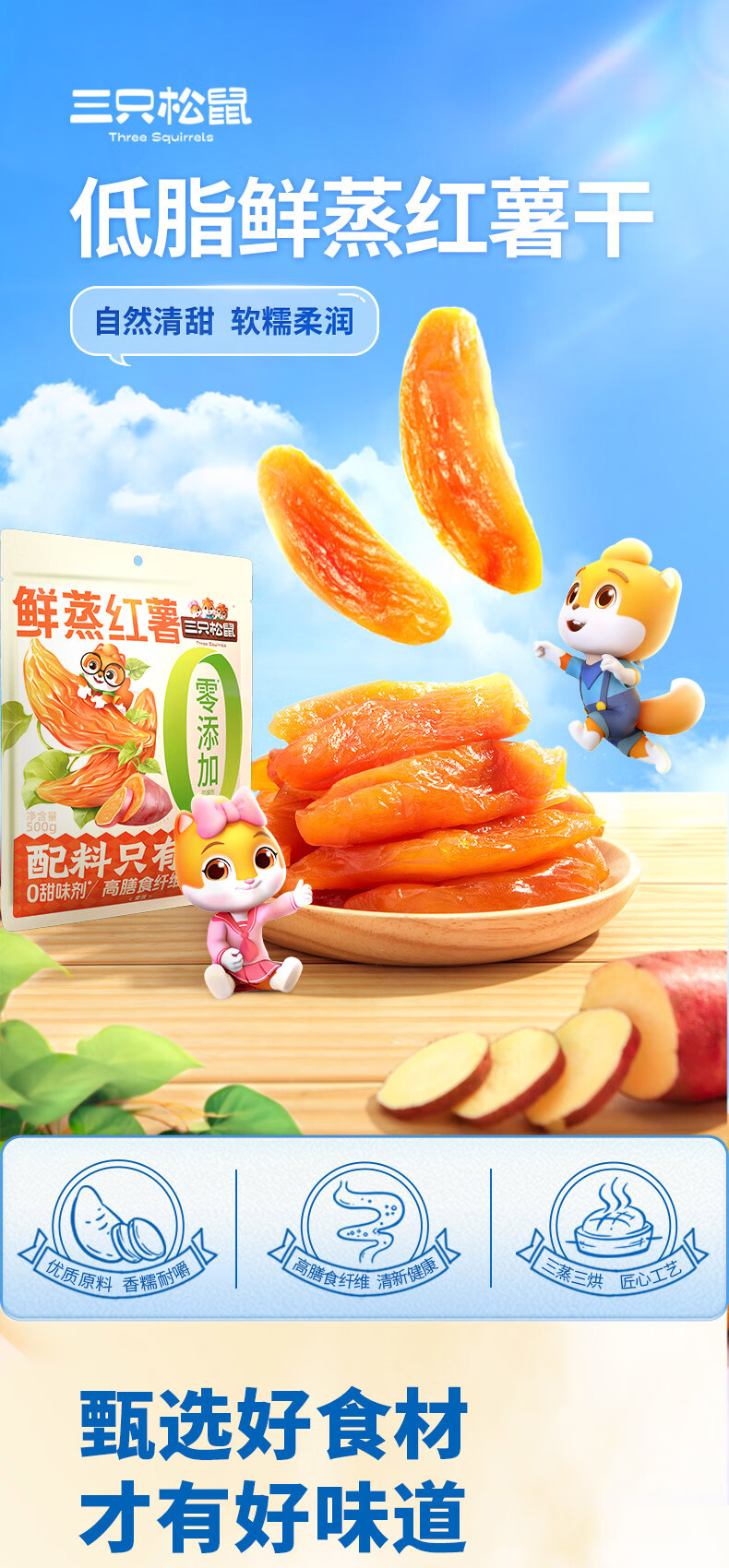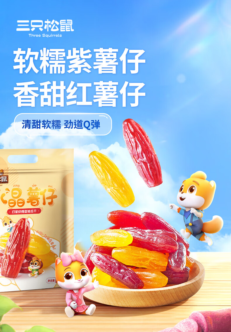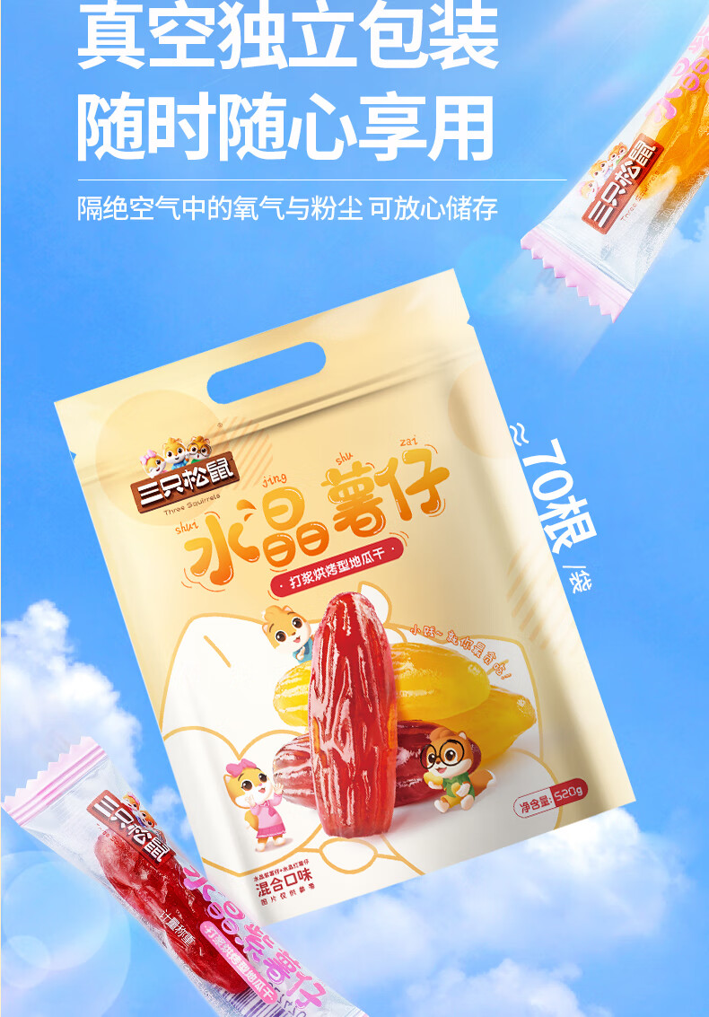 三只松鼠休闲零食果干蜜饯0添加红薯地瓜干办公室小吃量贩袋装 【推荐】量贩红薯干500g