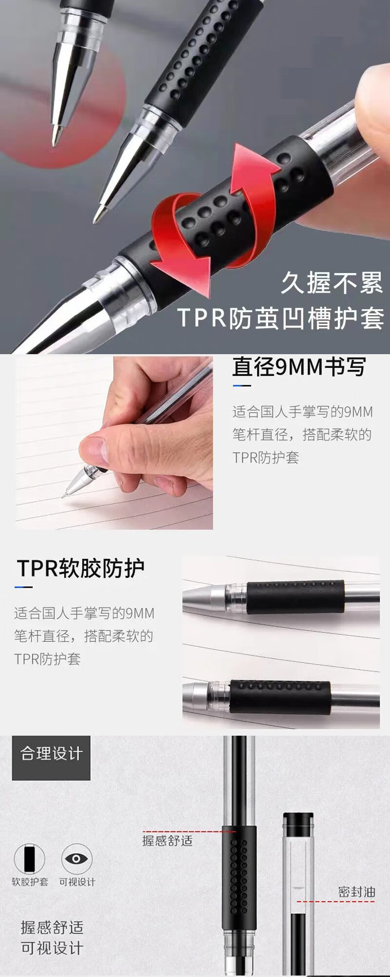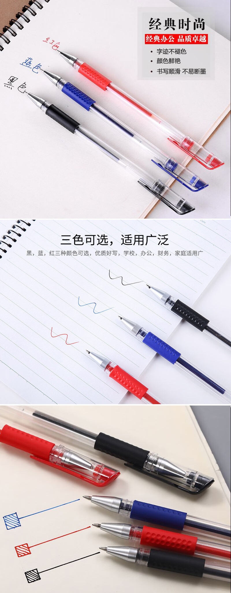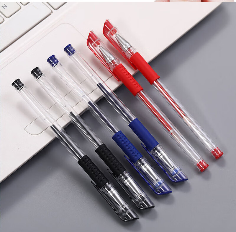 中性笔0.5mm头黑色碳素水性笔学生办公文具签字水笔 红色-3支 0.5mm子弹头