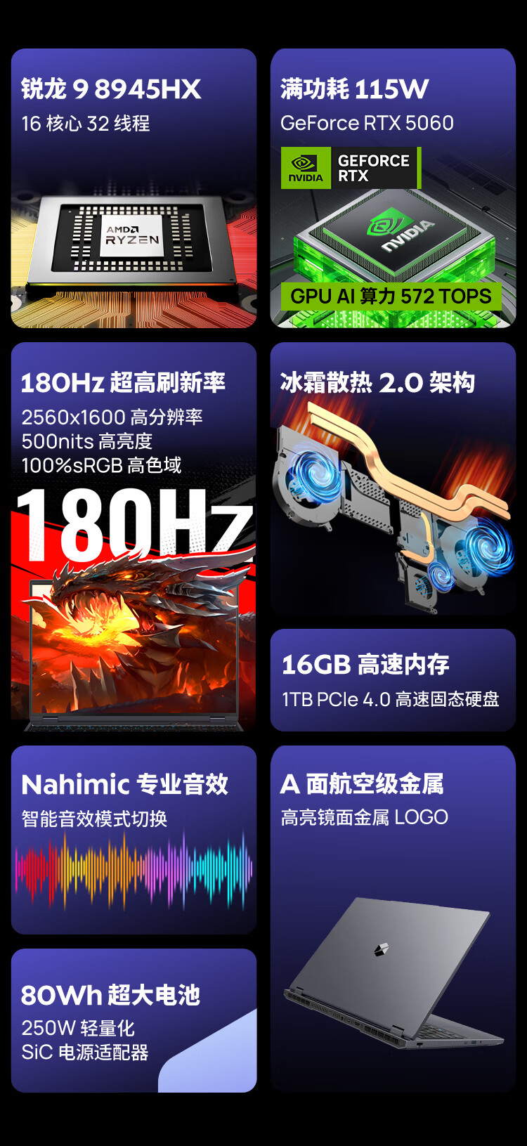 机械革命蛟龙16Pro 2026 16英寸游戏电竞笔记本电脑(R9-8945HX 16G 1T RTX5060 180Hz 灰)