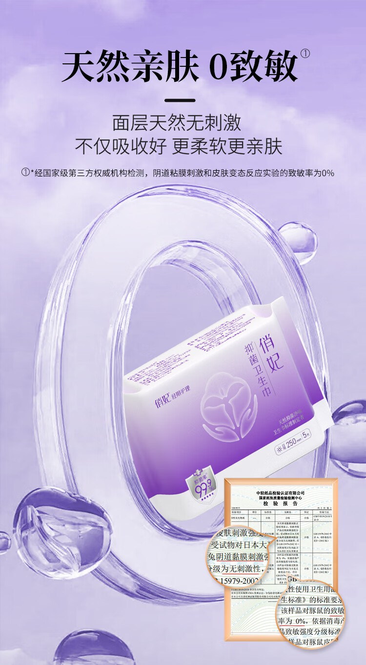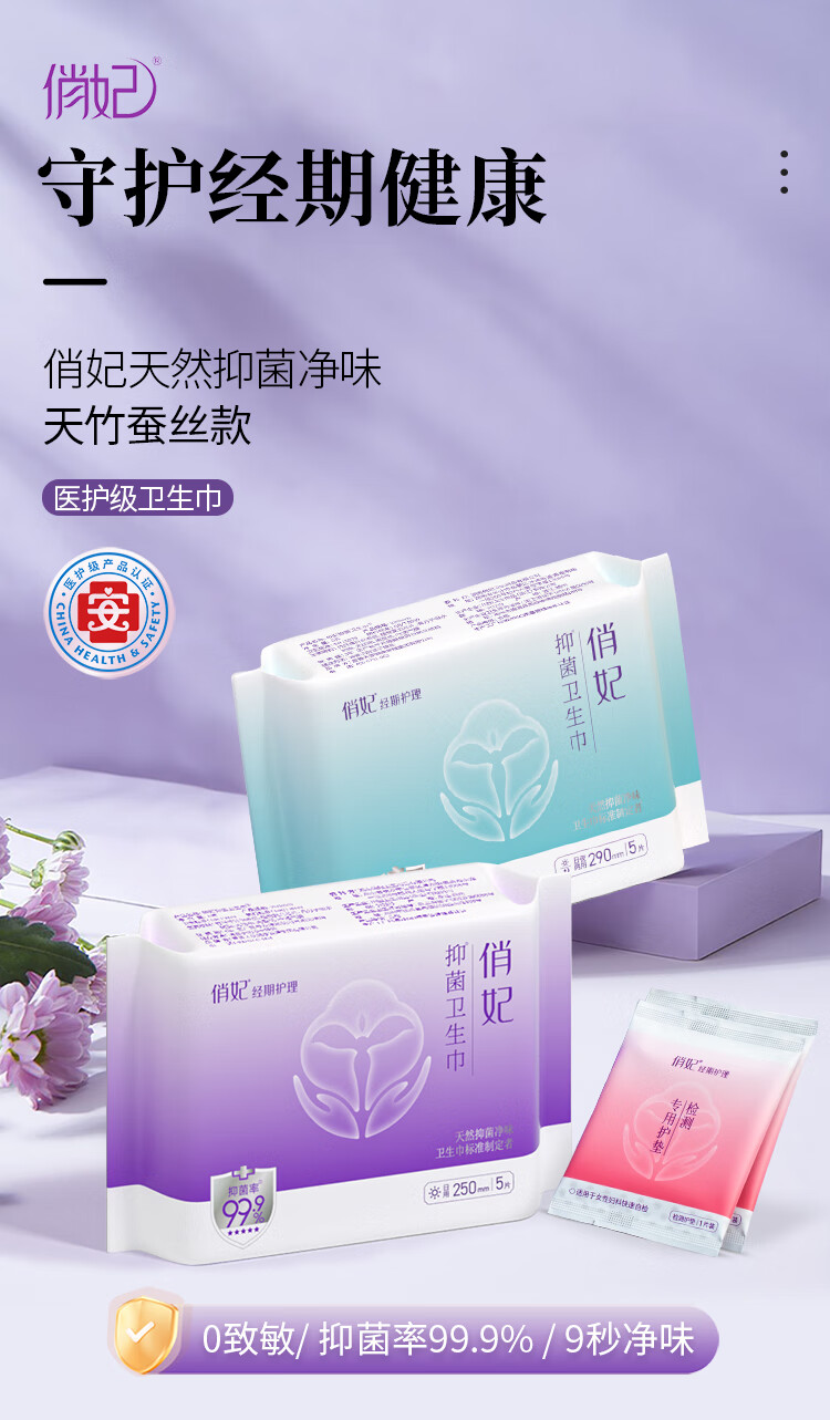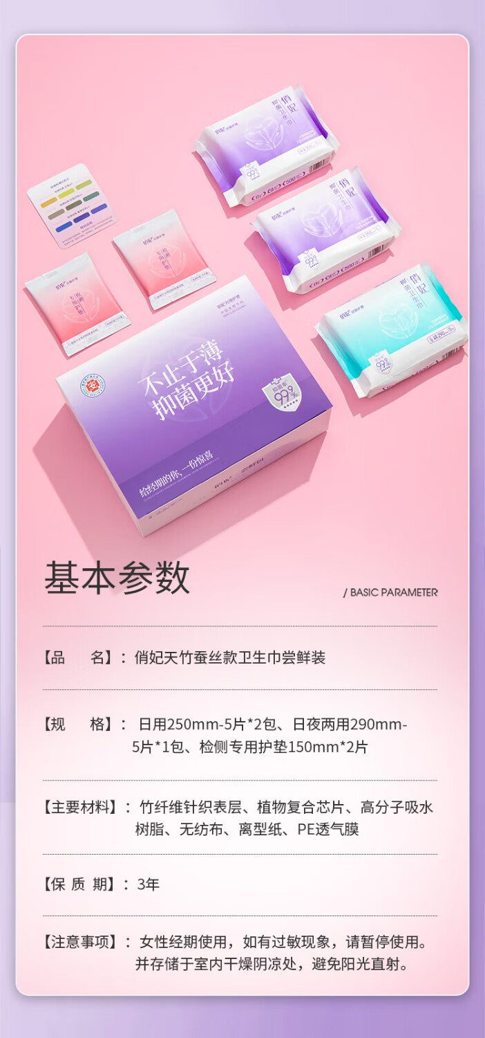 俏妃医护级蚕丝0致敏超薄卫生巾拉菲草礼盒17片(含PH检测护垫+比色卡 尝鲜装17片