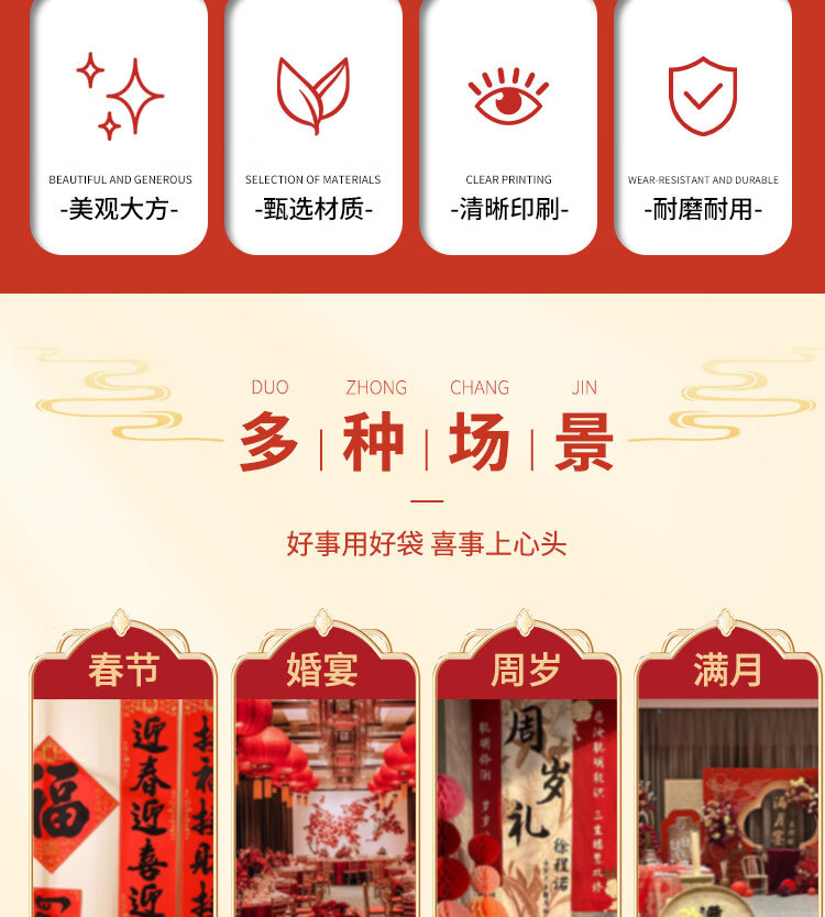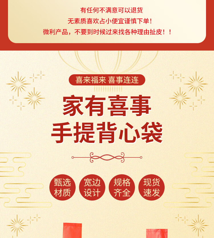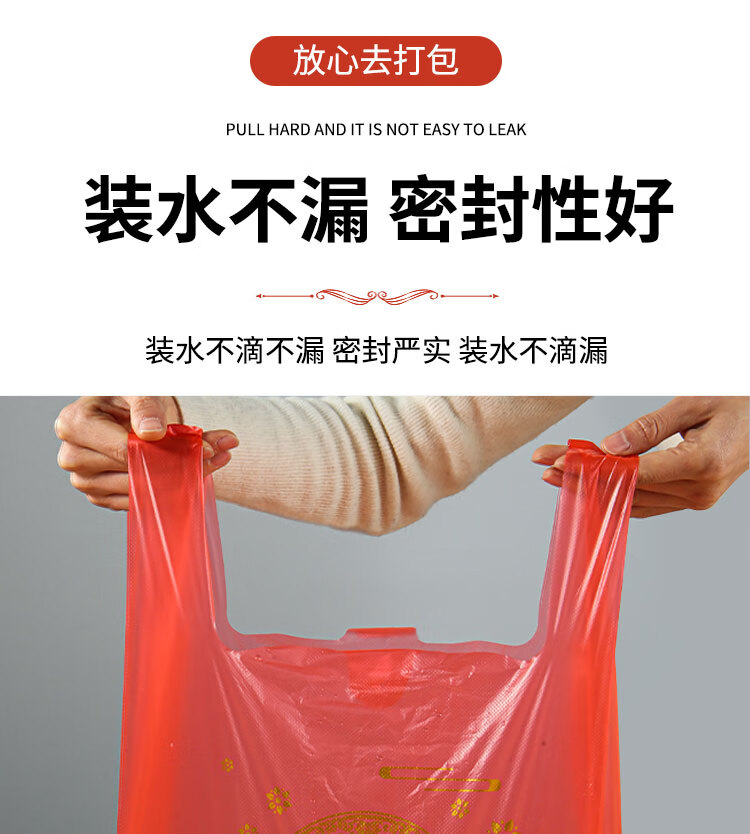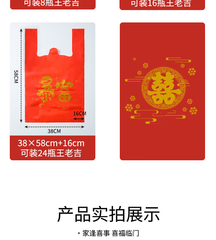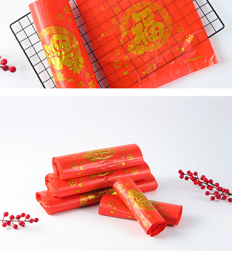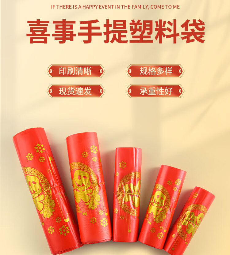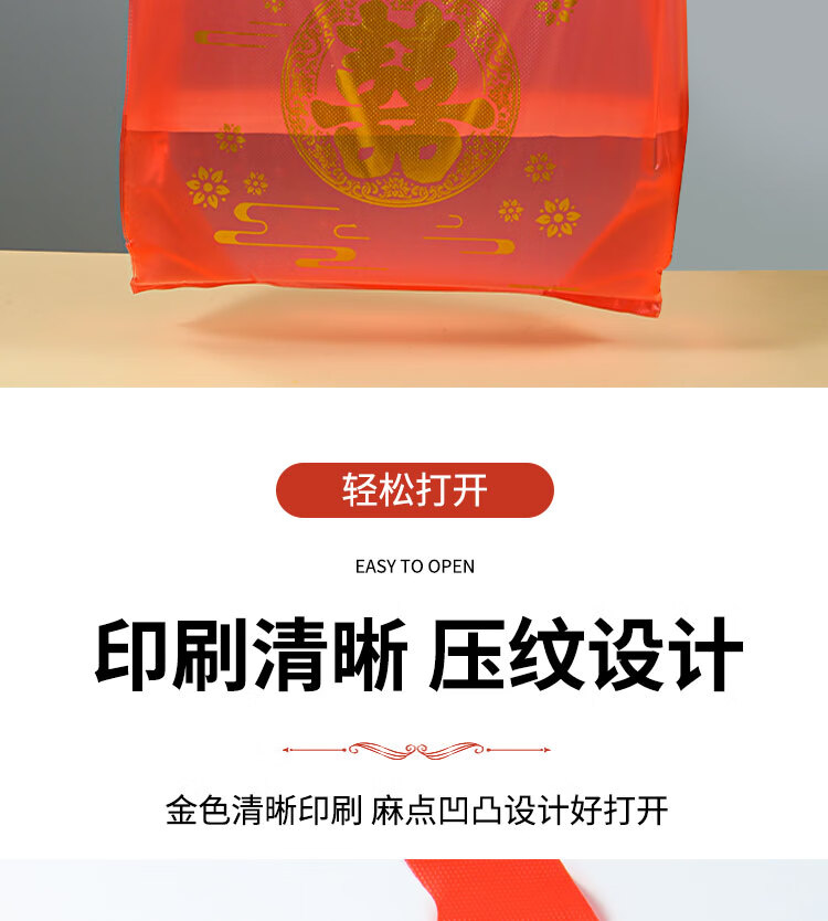 小岛老师喜庆中式烫印红色塑料袋结婚新年元旦加厚零食礼品袋喜字手提袋子 加厚款 38*16*58cm 金双喜字红色袋子 50个