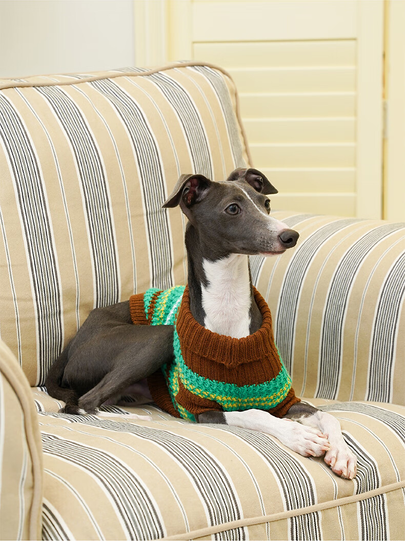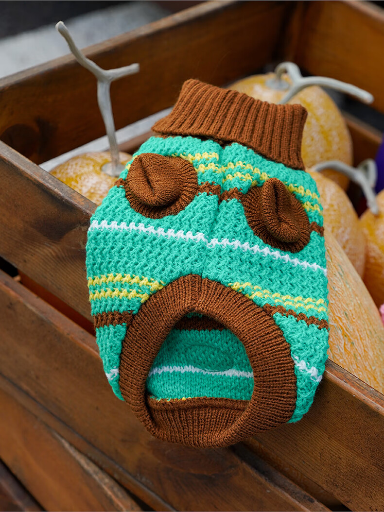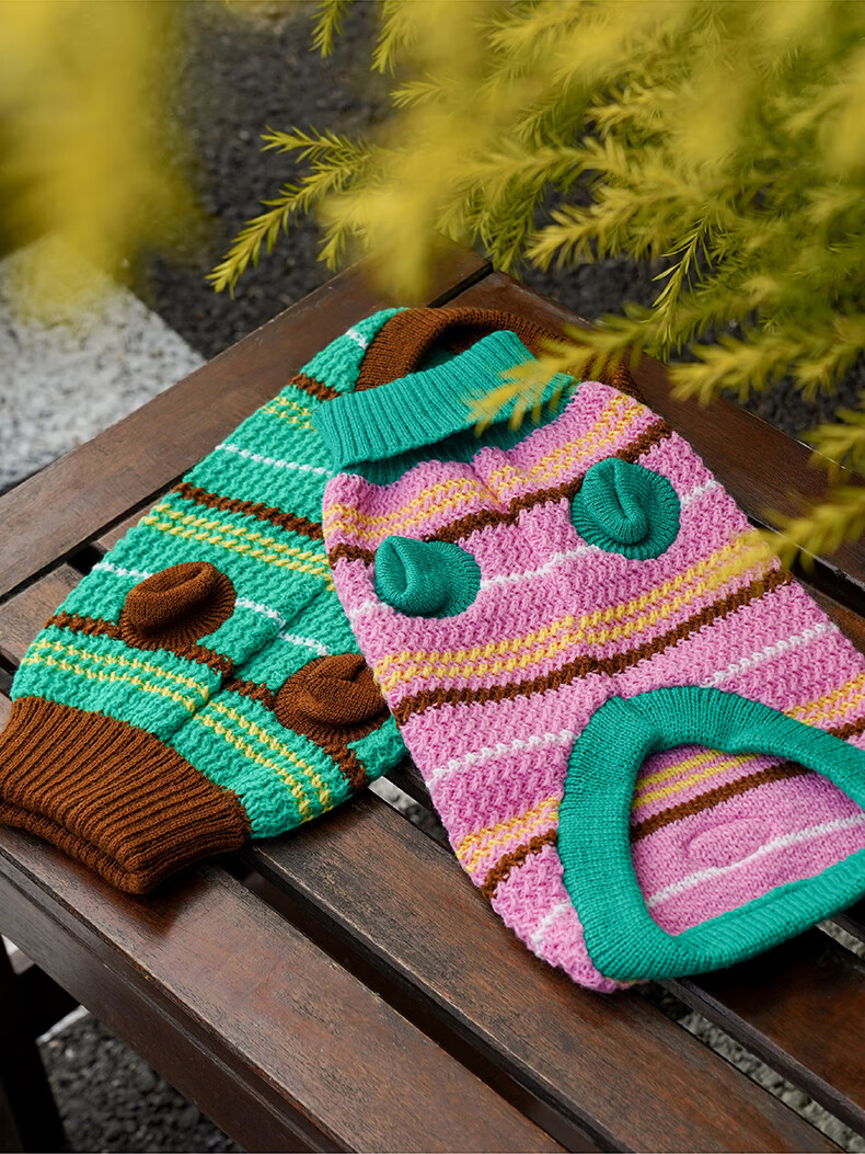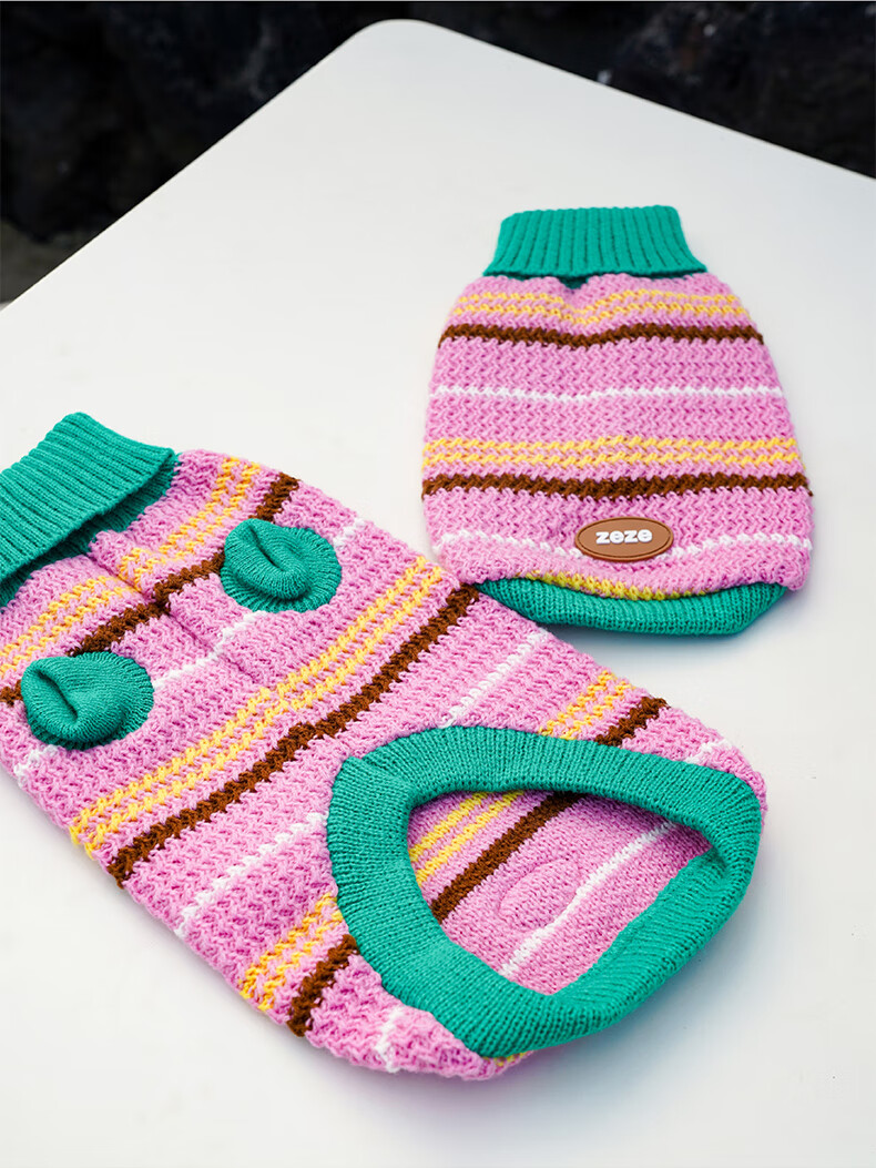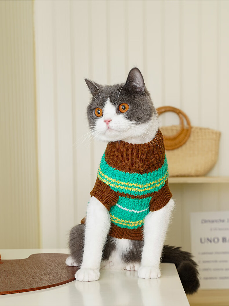 ZEZE条纹宠物衣服冬季保暖猫咪狗狗衣服宠物小猫毛衣针织背心马甲 绒绒条纹宠物连帽背心(黄蓝) M 【8-12斤适用】