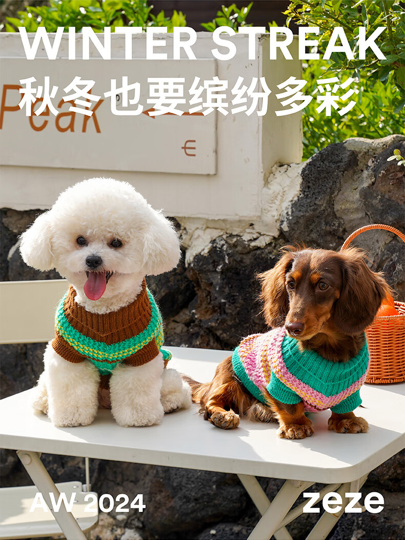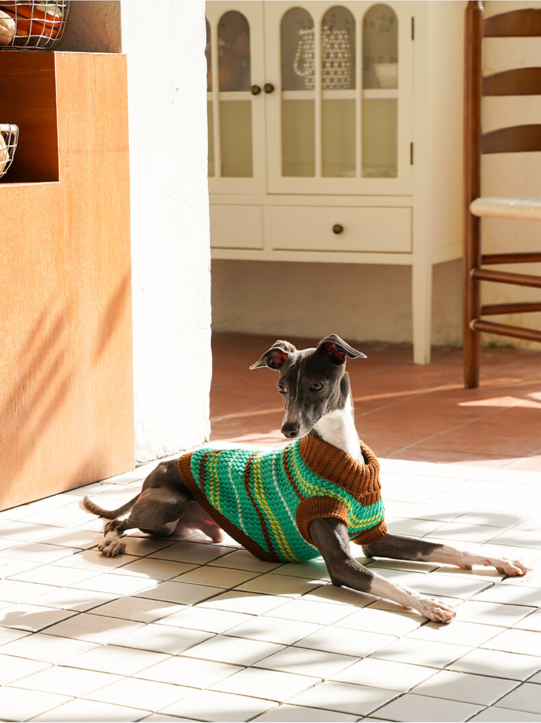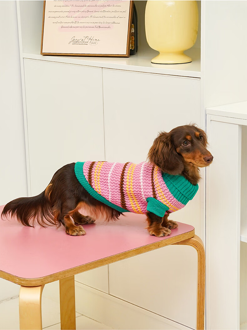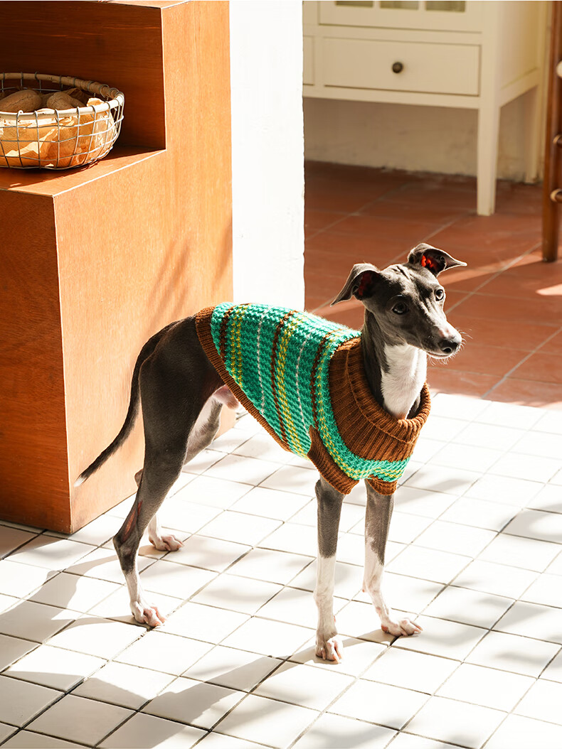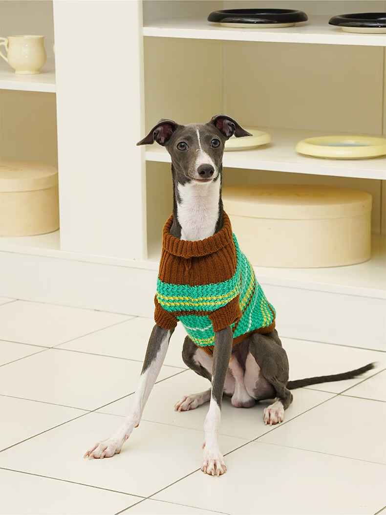 ZEZE条纹宠物衣服冬季保暖猫咪狗狗衣服宠物小猫毛衣针织背心马甲 绒绒条纹宠物连帽背心(黄蓝) M 【8-12斤适用】