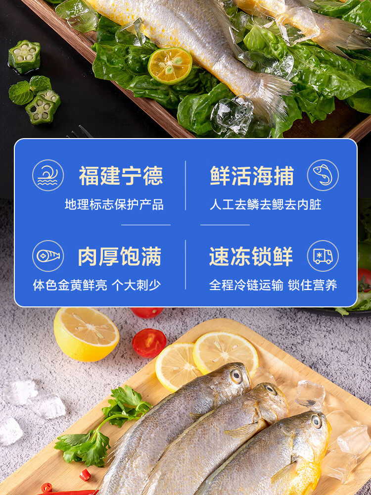 1号会员店宁德三去黄花鱼 净重2斤/3条 大黄鱼 深海鱼 冷冻海鲜水产 生鲜