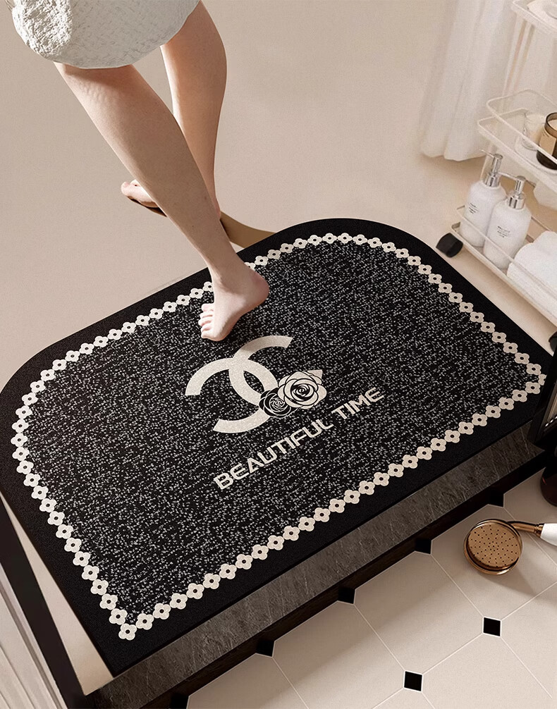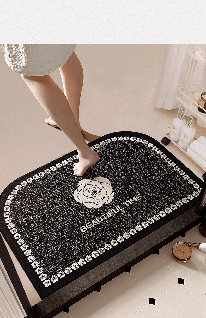 纤苏浴室地垫硅藻泥吸水速干脚垫卫生间防滑耐脏垫子家用厕所门口地毯 素色回纹棕 40*60cm(多数人的选择)