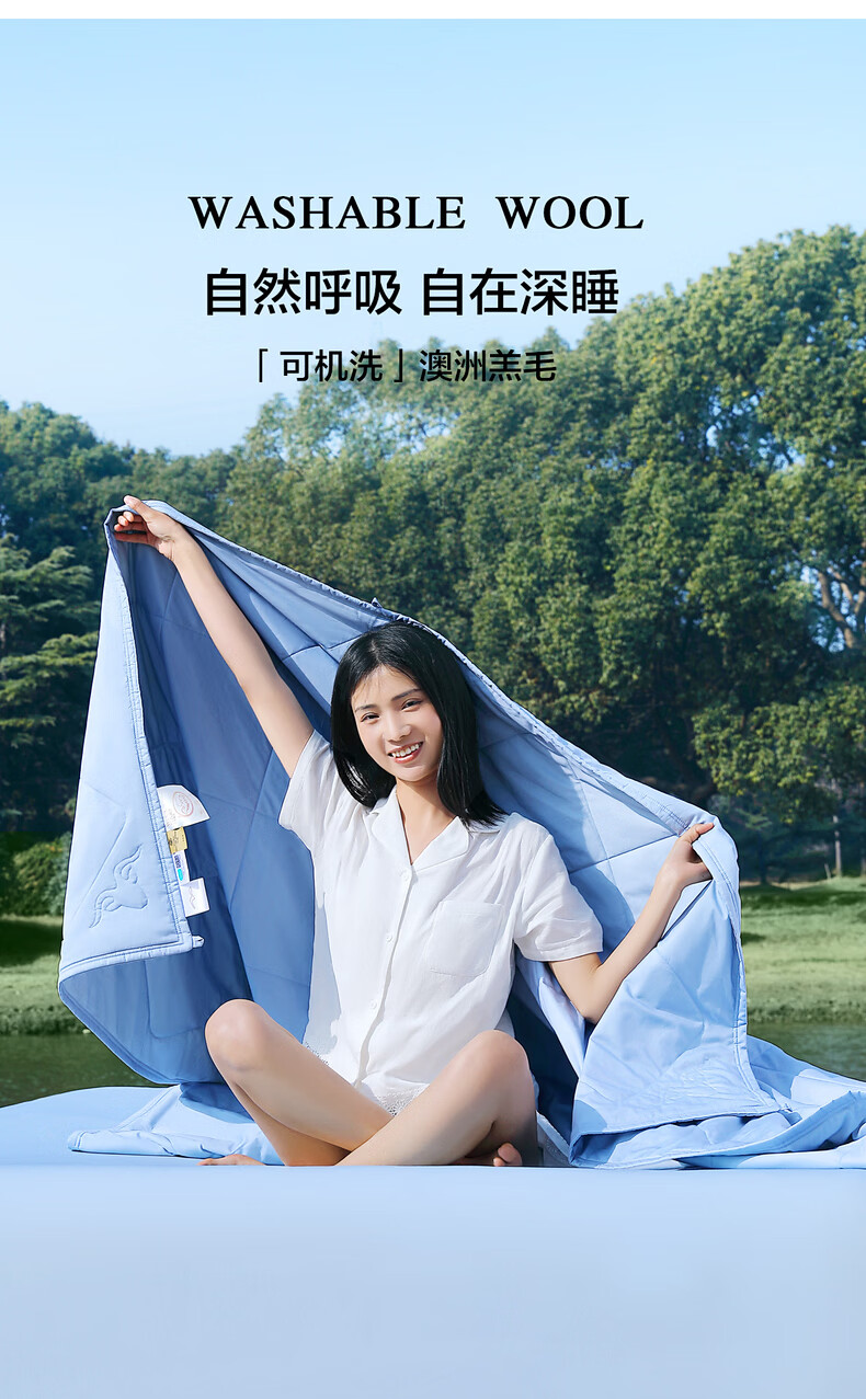 水星家纺被子夏被 澳洲羊毛阳光卷毛3.0·咩咩云朵夏凉被空调被 咩咩云朵【澳洲羊毛填充/80S全棉面料】黄 150cm*210cm