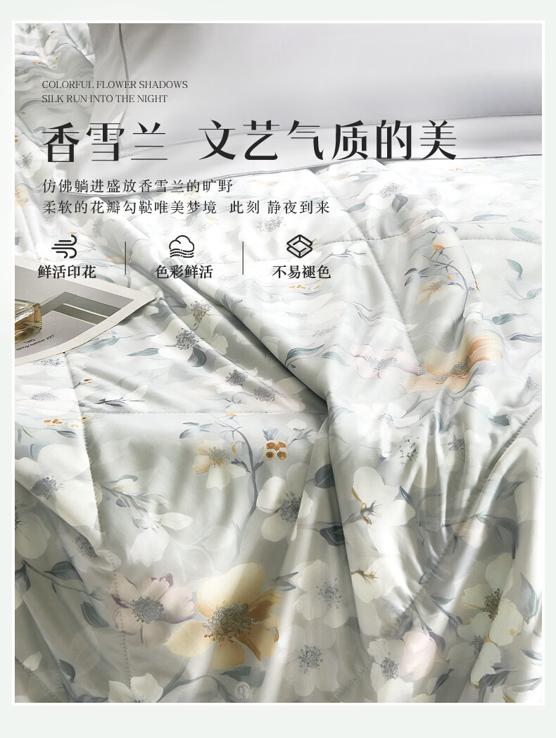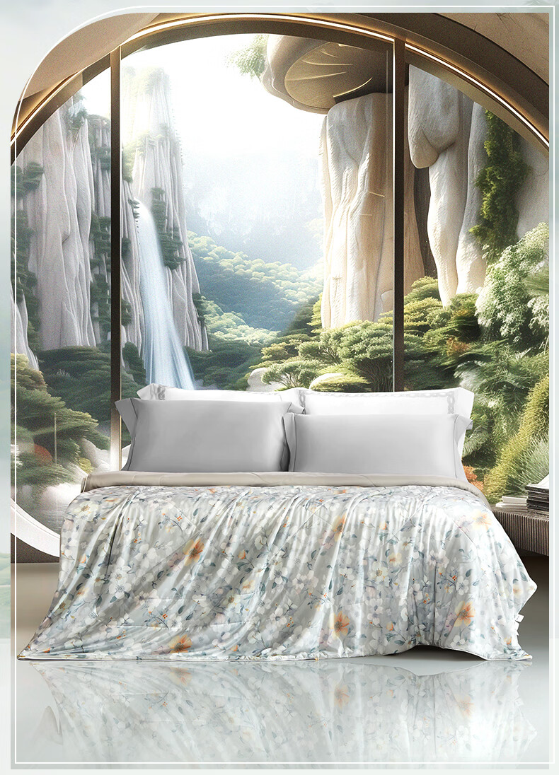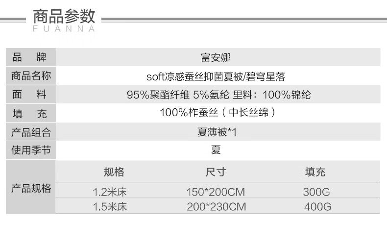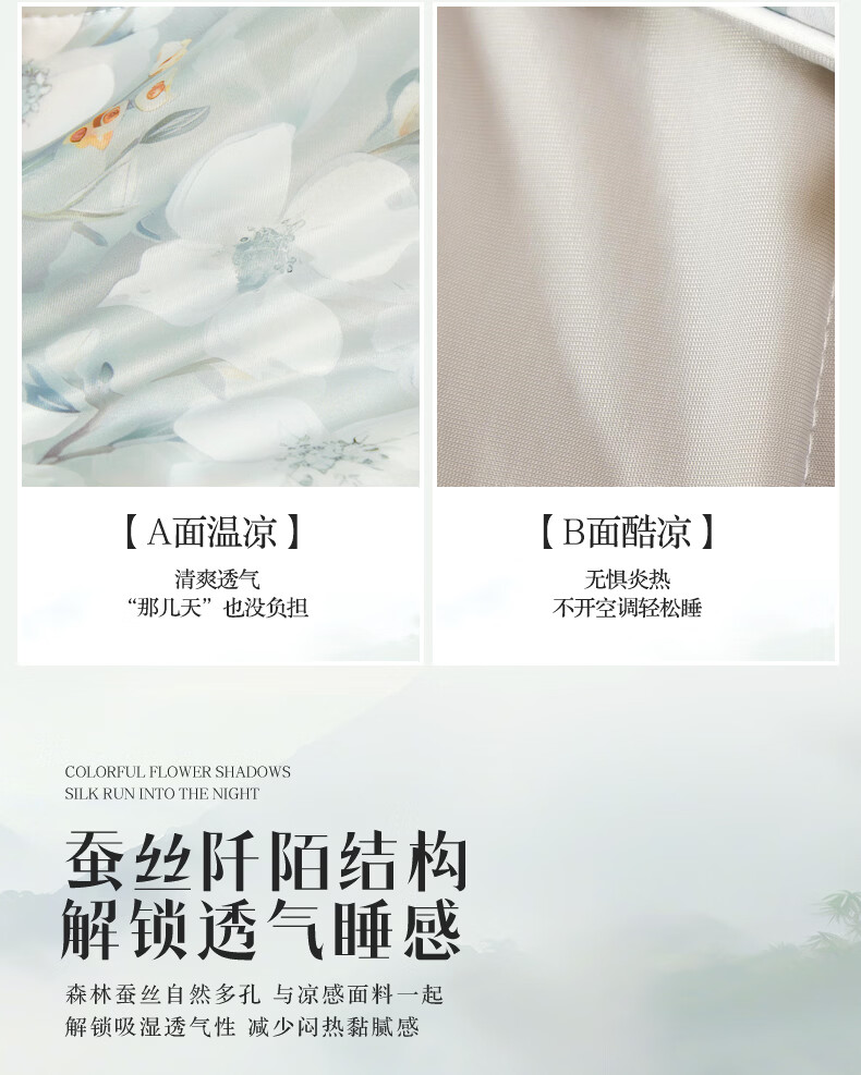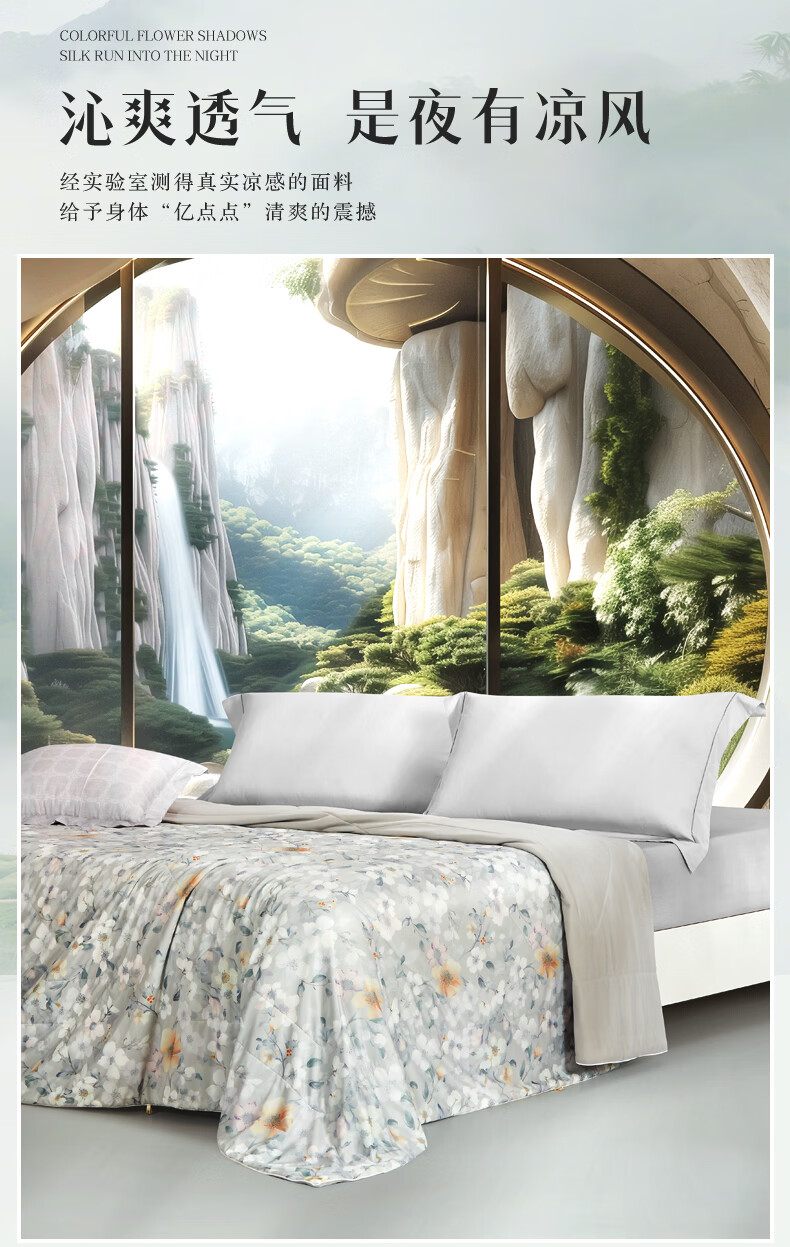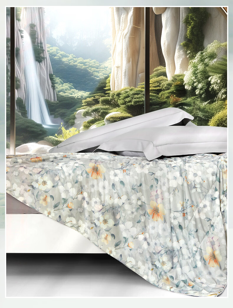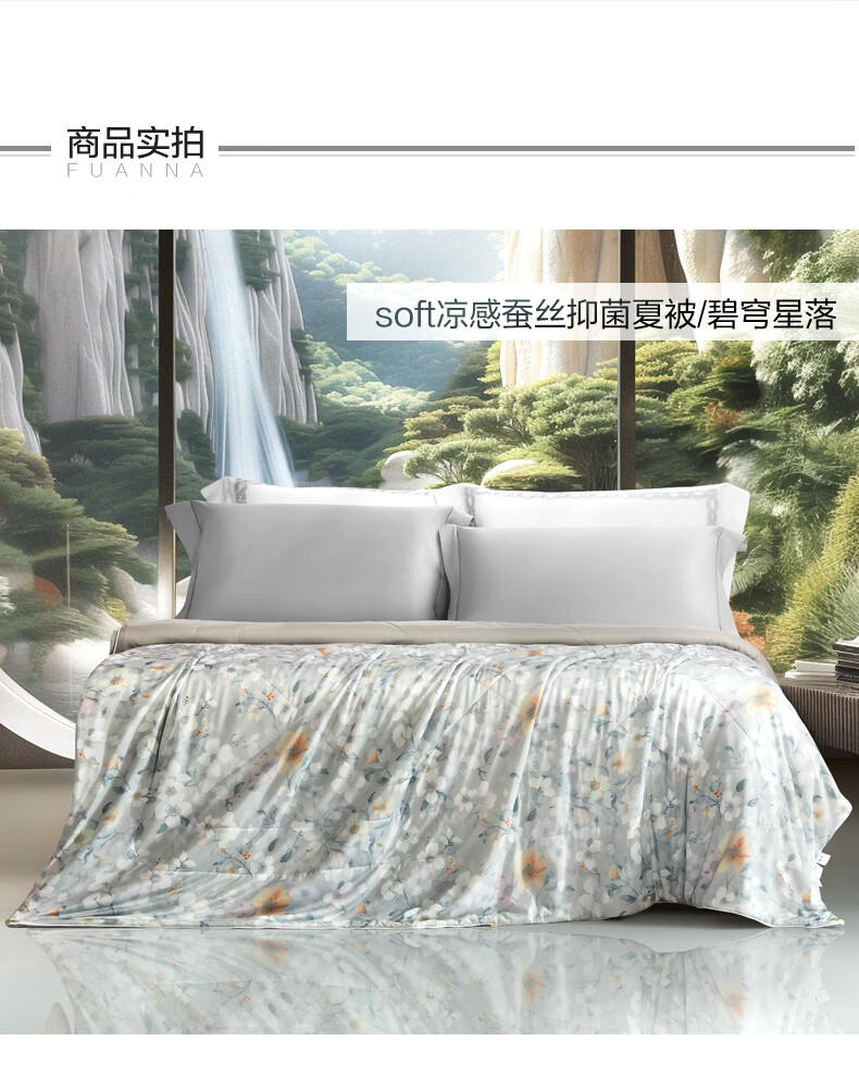 富安娜 夏凉被100%蚕丝凉感被芯单人双人印花空调被薄被子 【凉感抑菌】碧穹 150cm*200cm