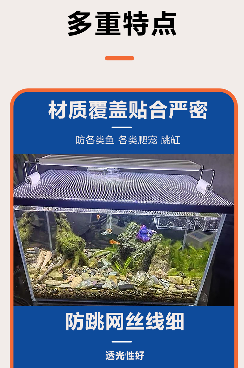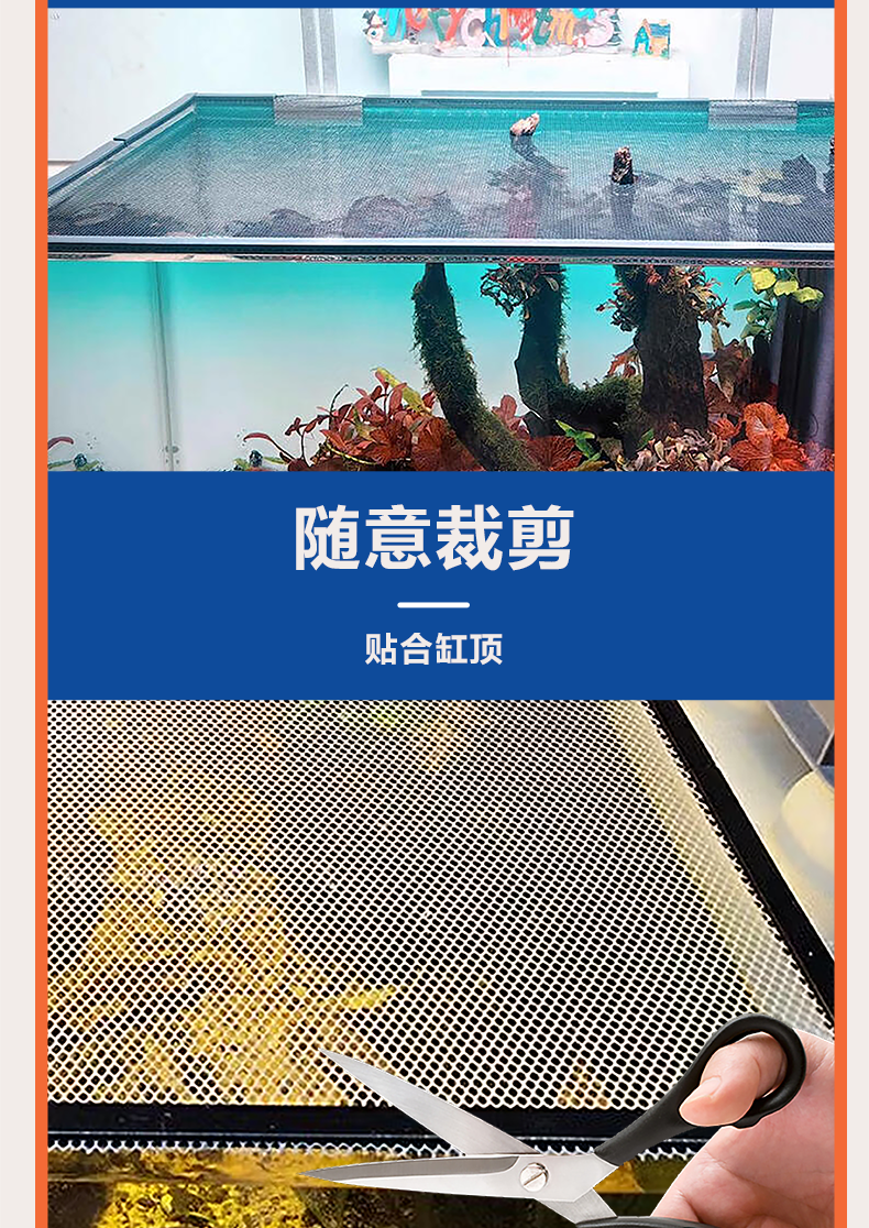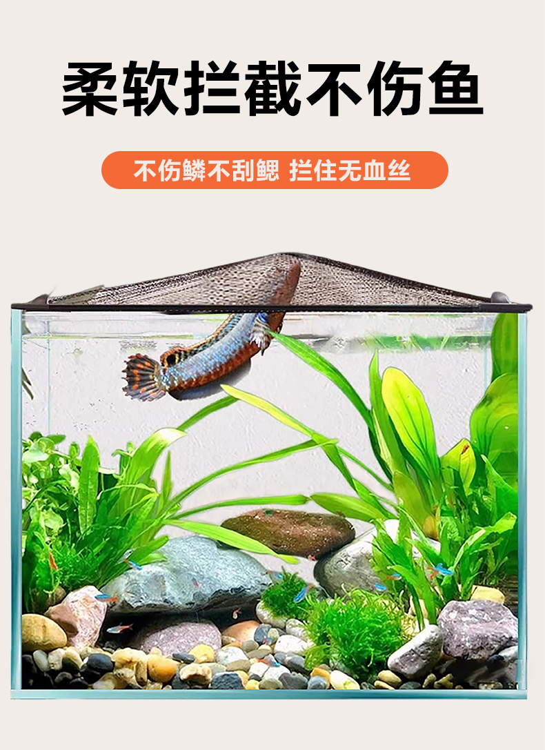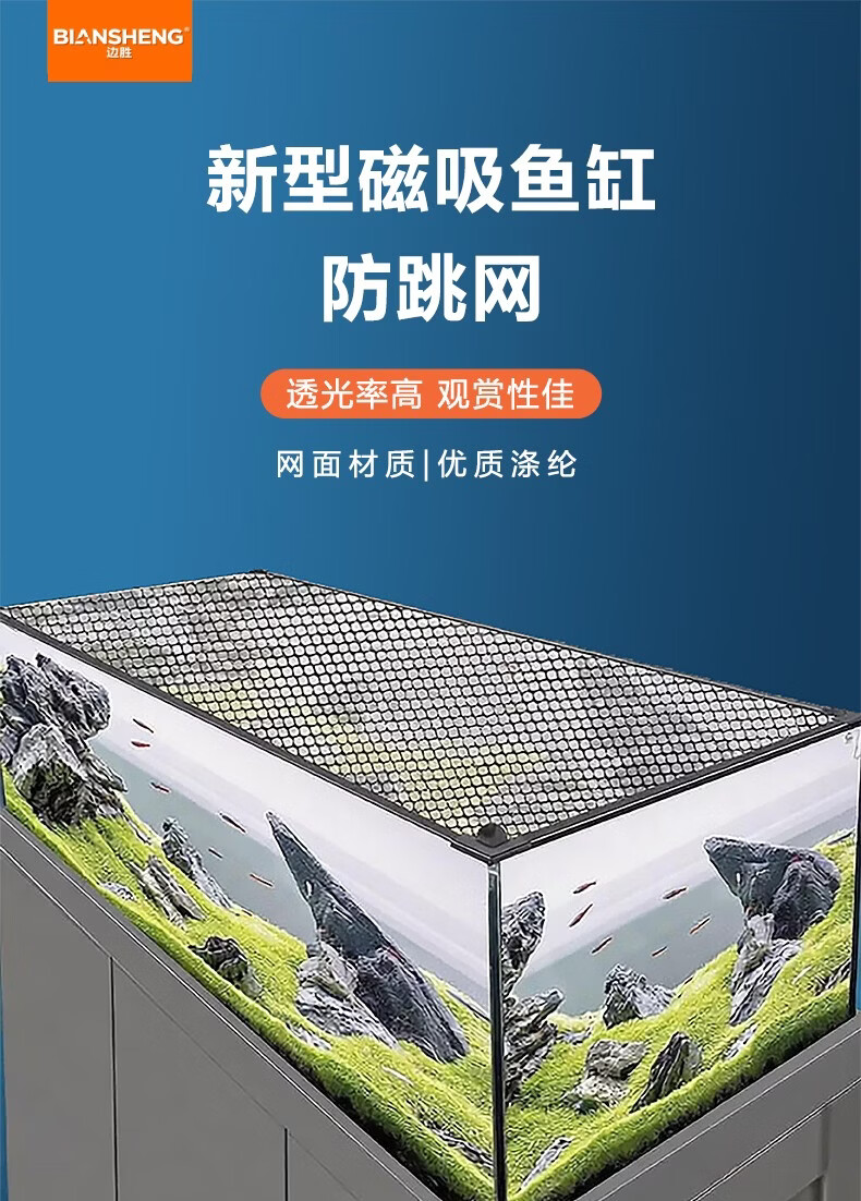 边胜鱼缸防跳网盖板顶盖子磁吸防跳缸鱼缸防逃网溪流缸雷龙防跳网防逃 50X30cm深灰边+白纱(自由裁剪)