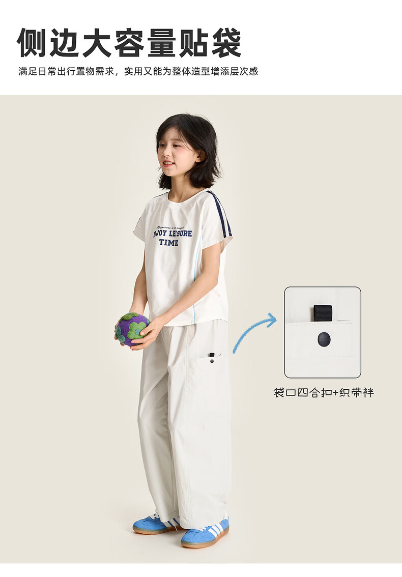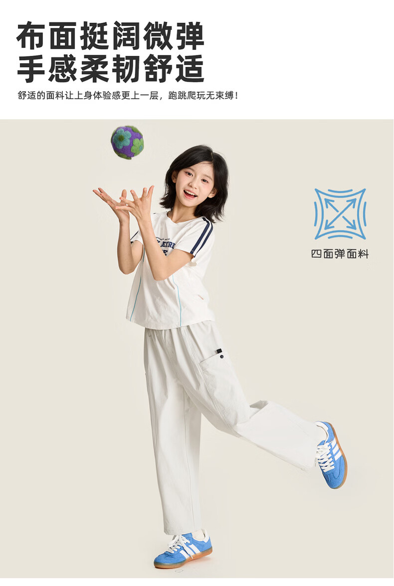 棉叔叔【2.3春上新锥形裤】女童四面弹侧袋分割造型休闲百搭裤男童2026 浅灰 120 120