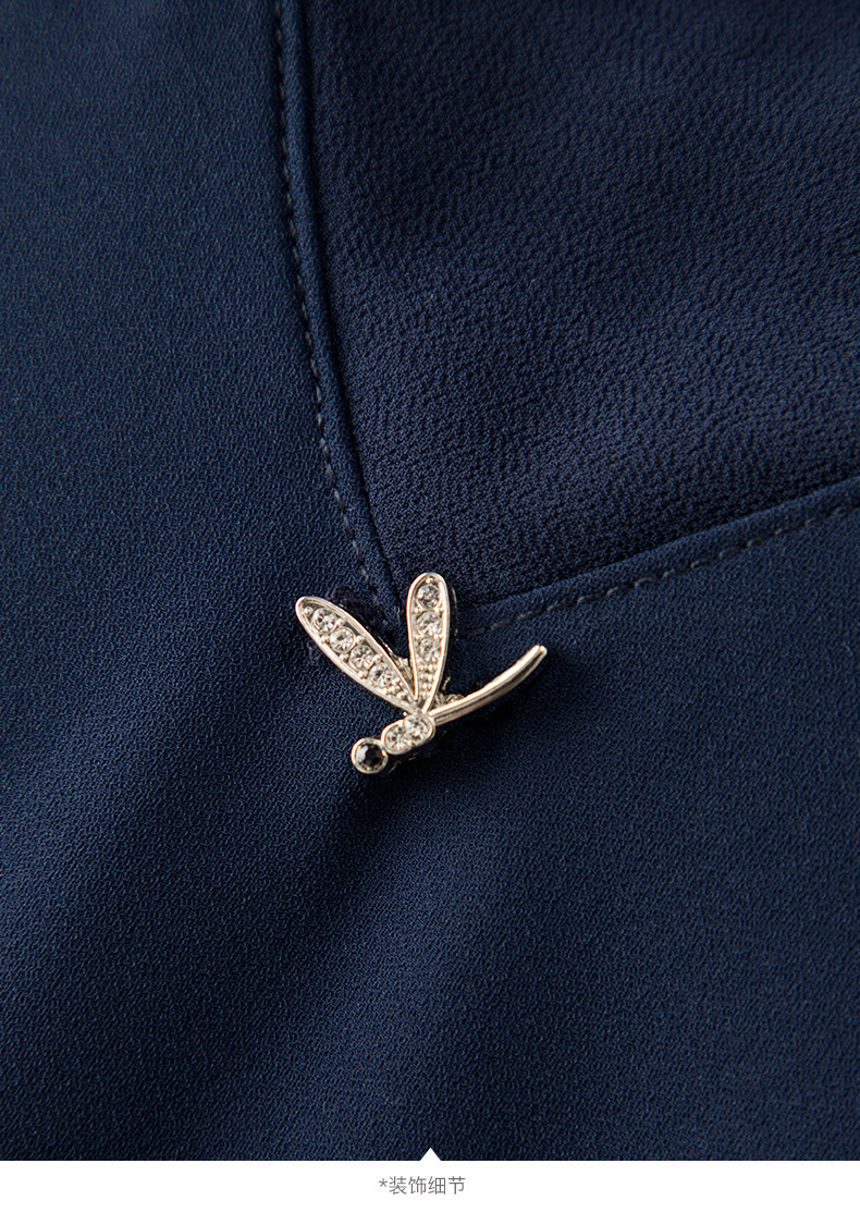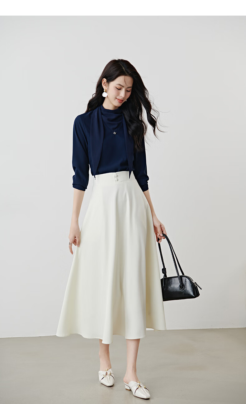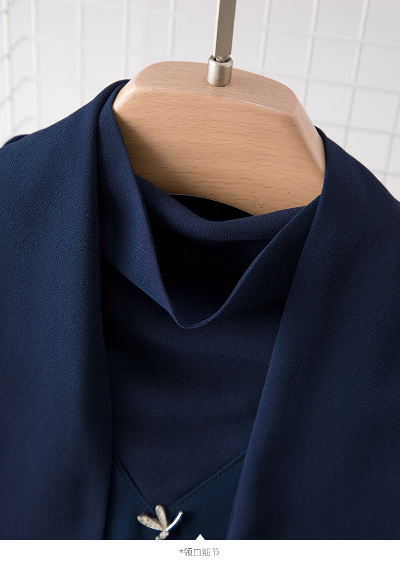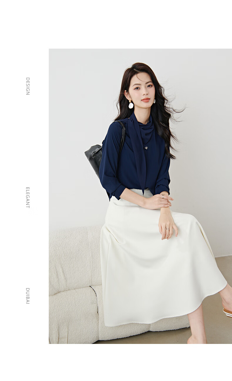 晚白2026年春款垂感系带蝴蝶结领假两件上衣干练通勤行政蓝衬衫女 深蓝色 S