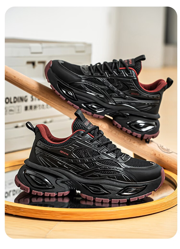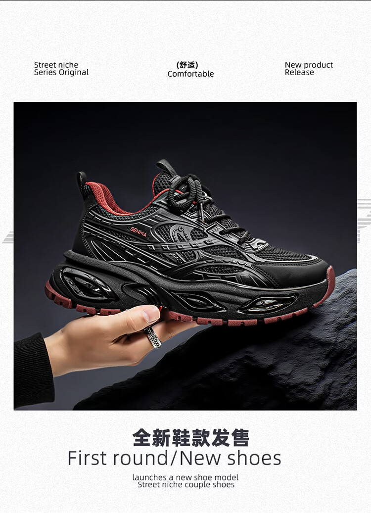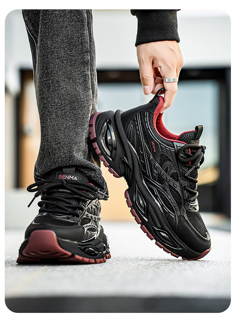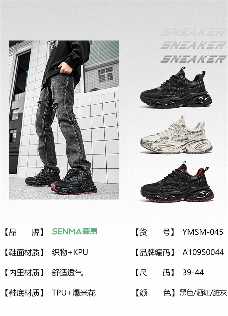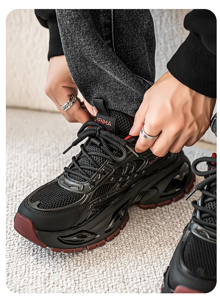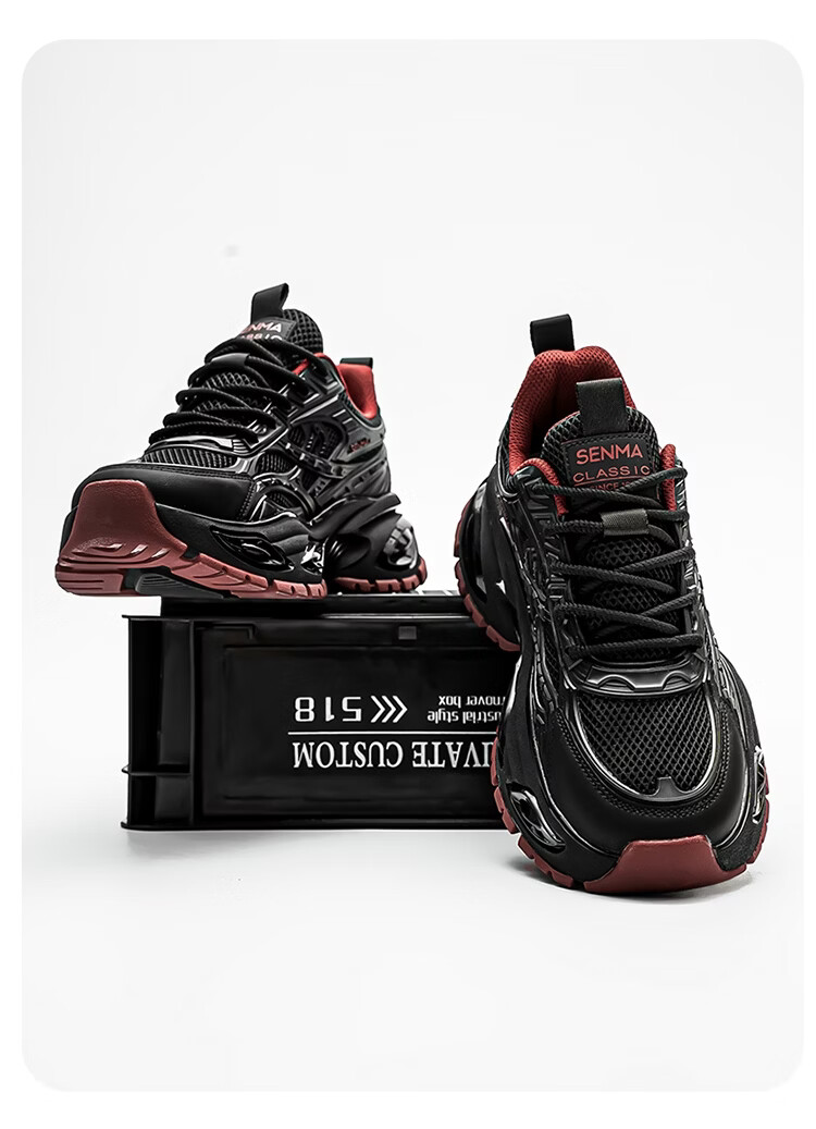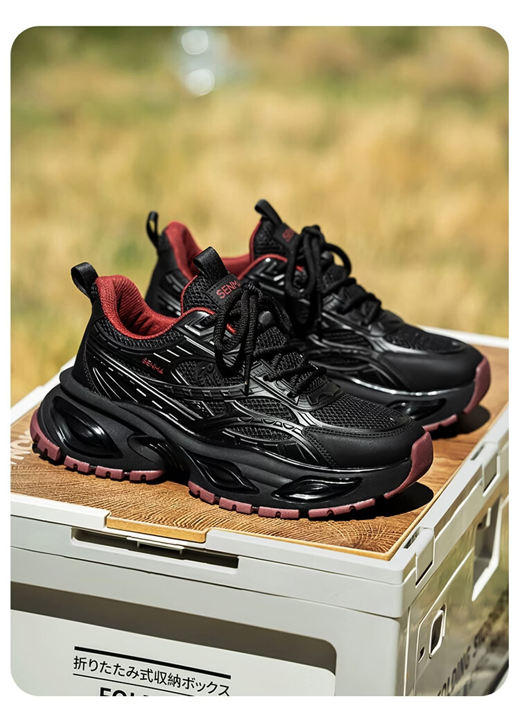森馬男鞋2026新款春秋季休闲百搭跑步运动鞋男士防滑厚底增高老爹潮鞋 酒红【普通款】 39 标准码数/现货秒发