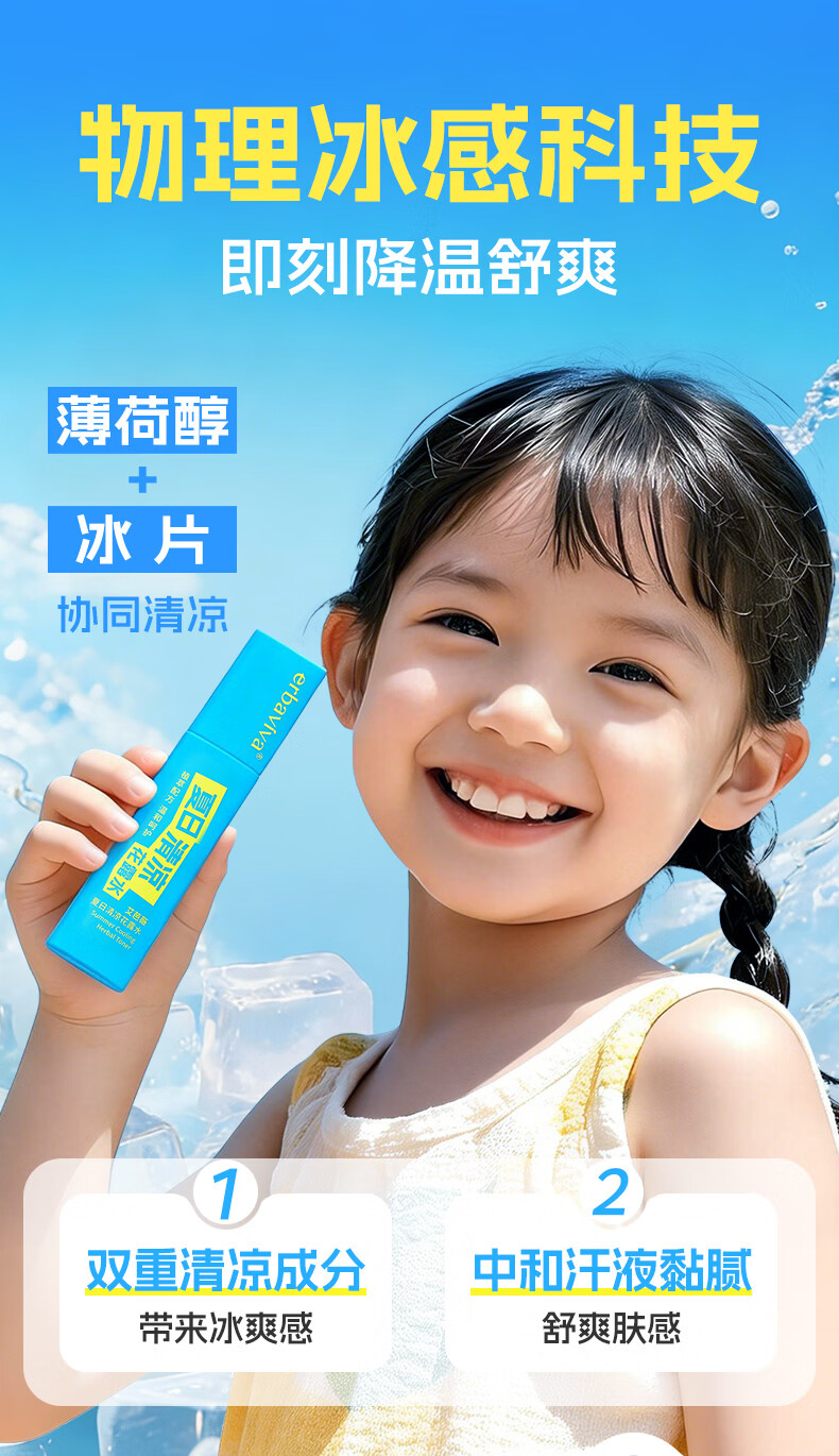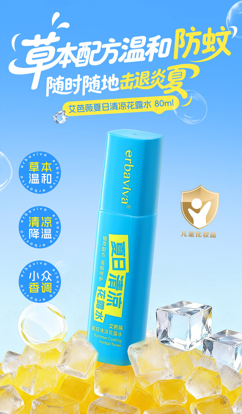 艾芭薇夏日清凉花露水80ml 儿童花露水爽肤清凉温和无刺激 薄荷香 80ml