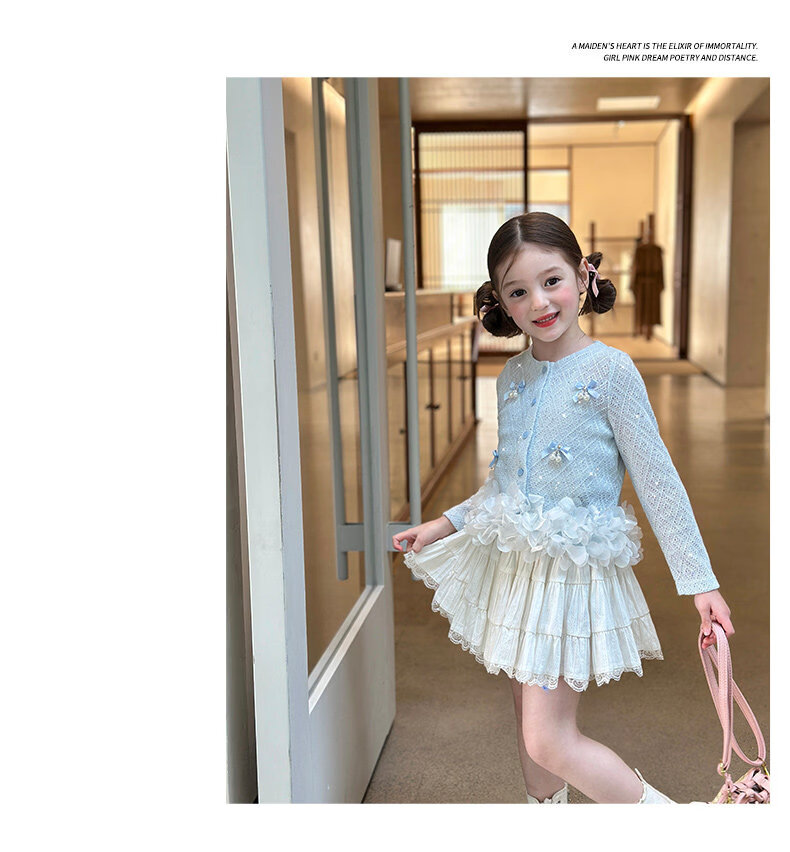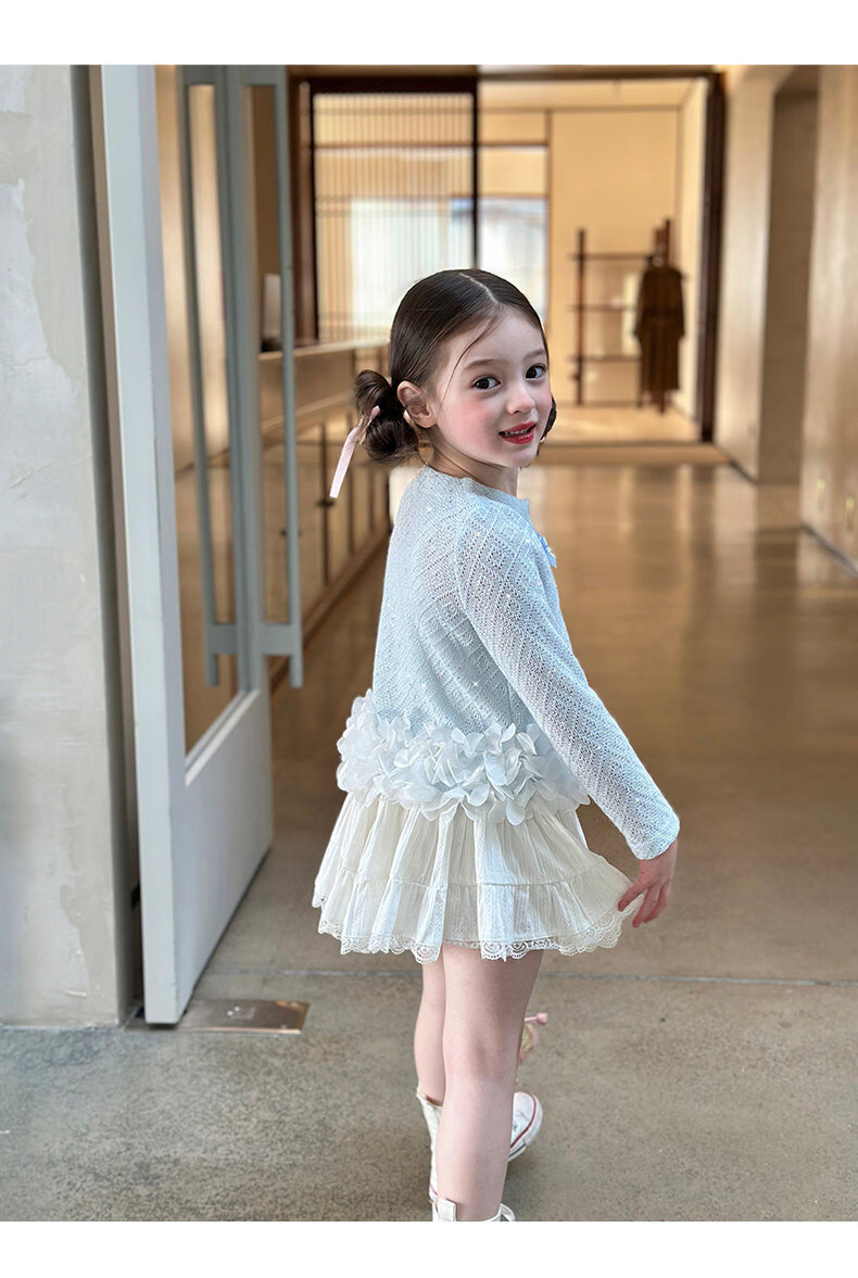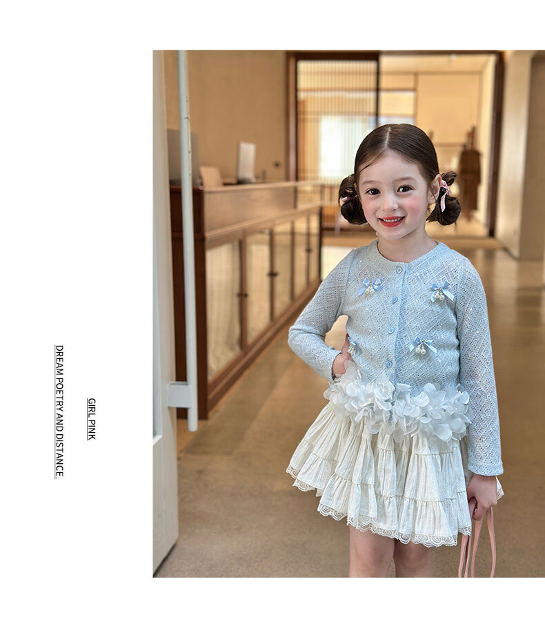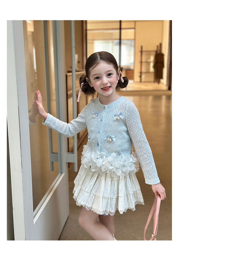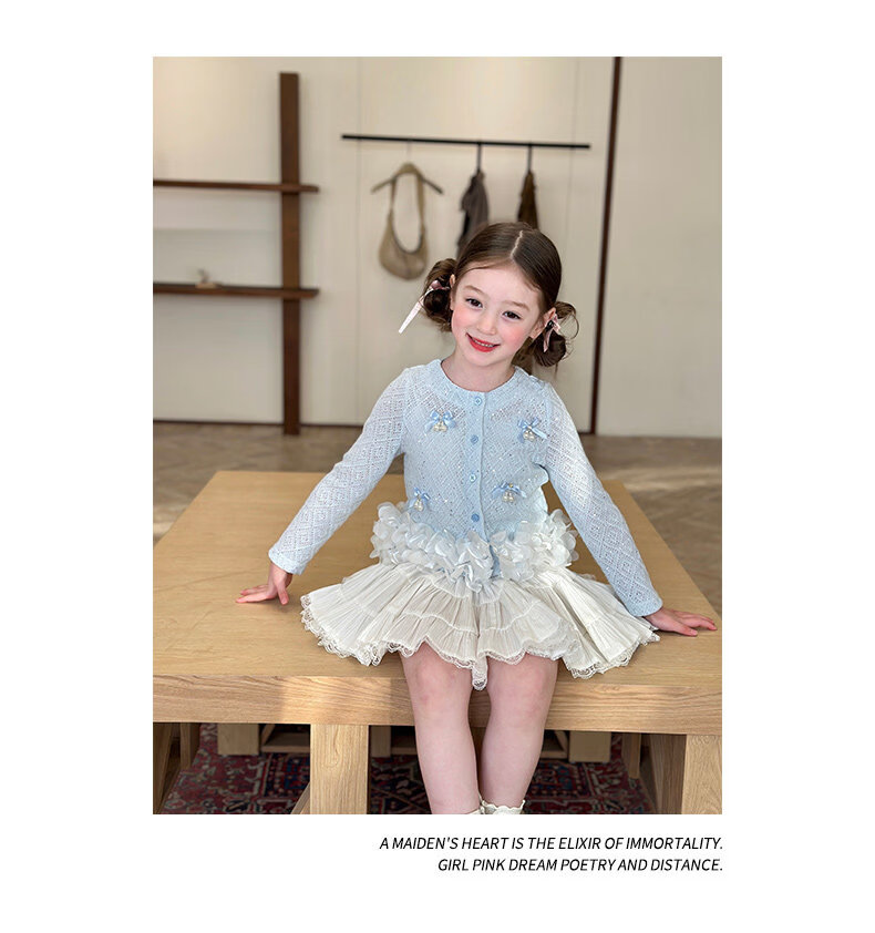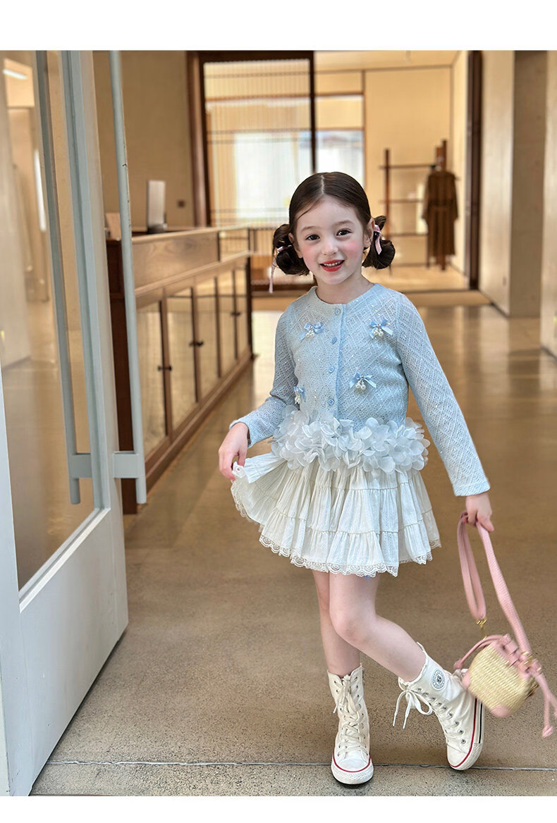栀了成长记童装女童韩版时髦上衣2026春季儿童甜美蝴蝶结针织开衫 蓝色 上衣 100 cm