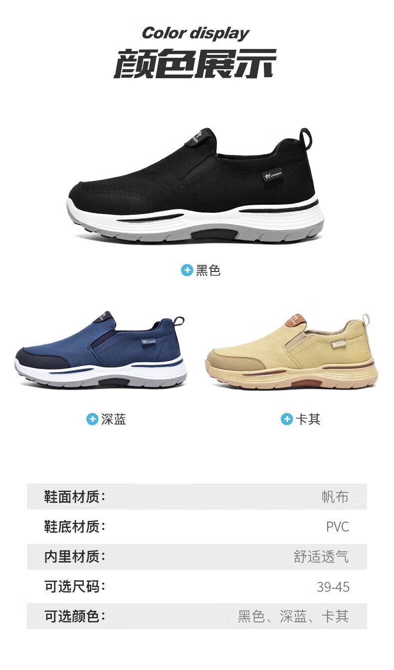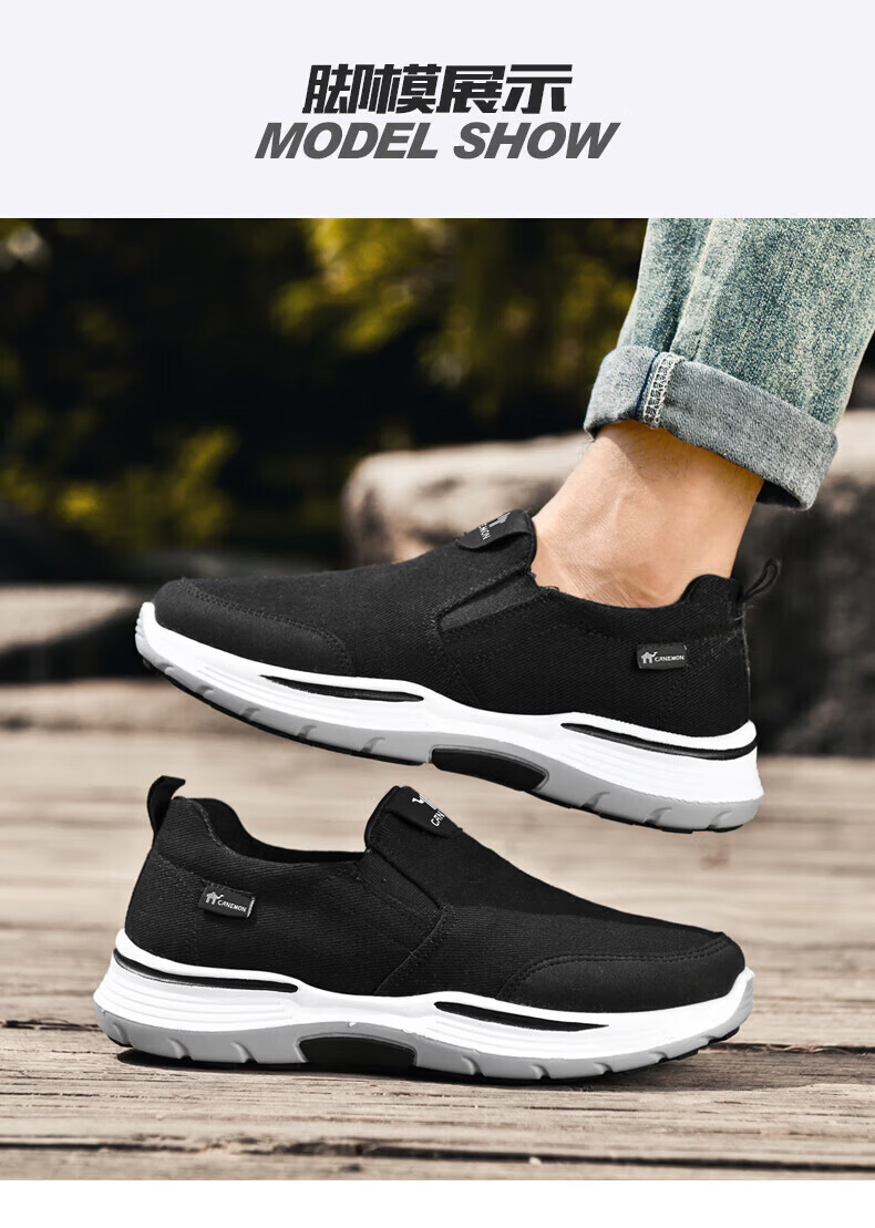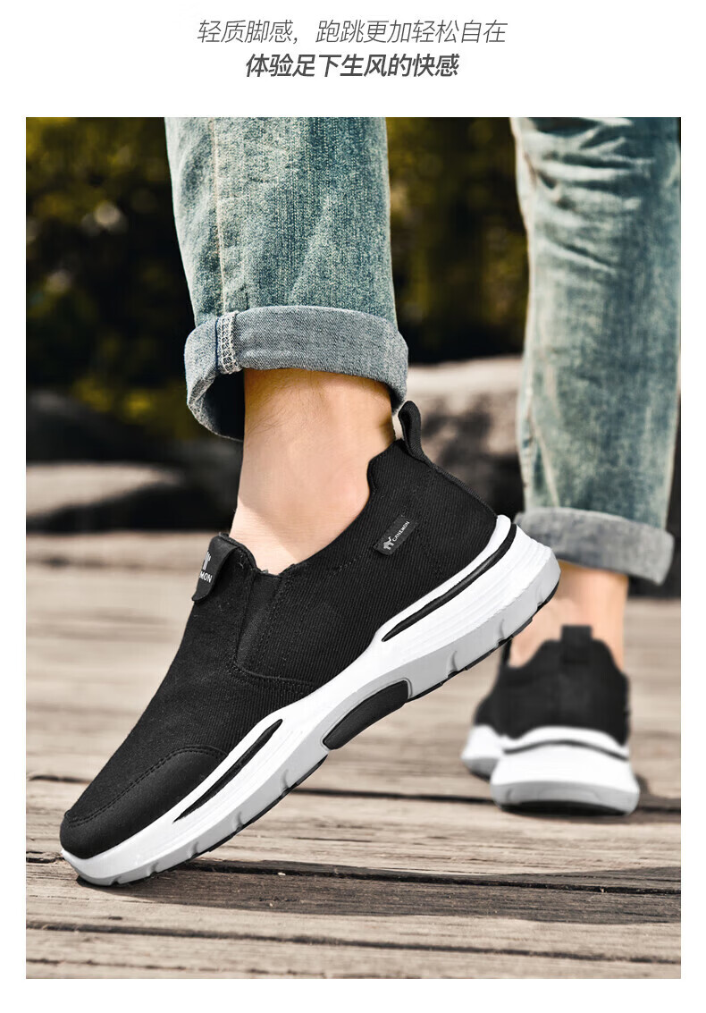 保罗骆驼运动休闲男鞋 夏季新款透气休闲老北京布鞋 软底一脚蹬爸爸健步 【黑色】 LY333 39 【标准运动鞋码】