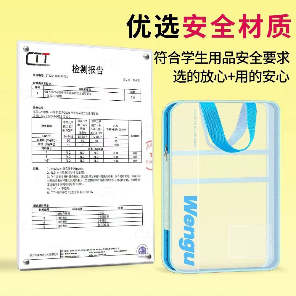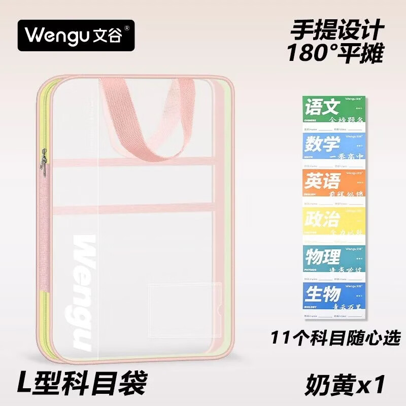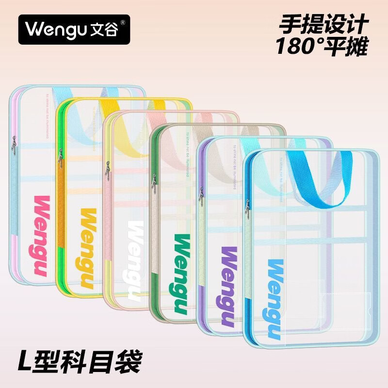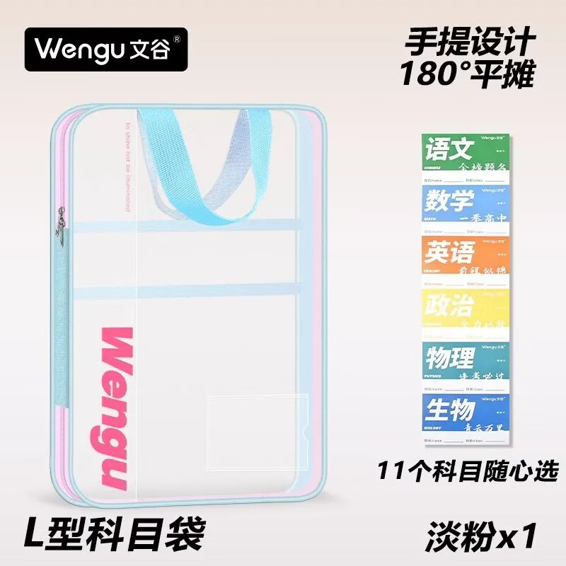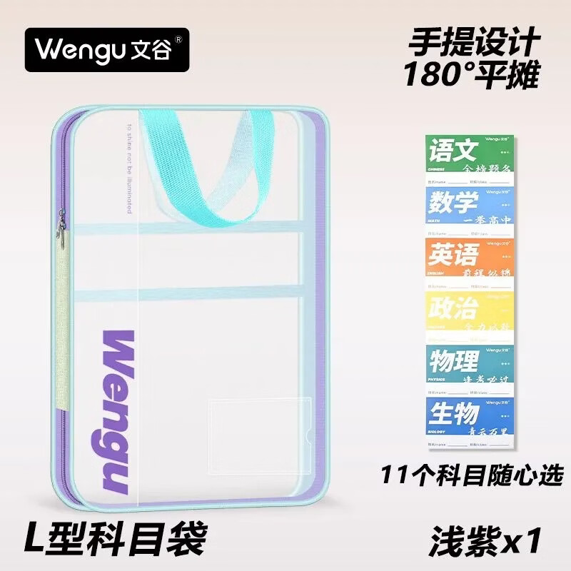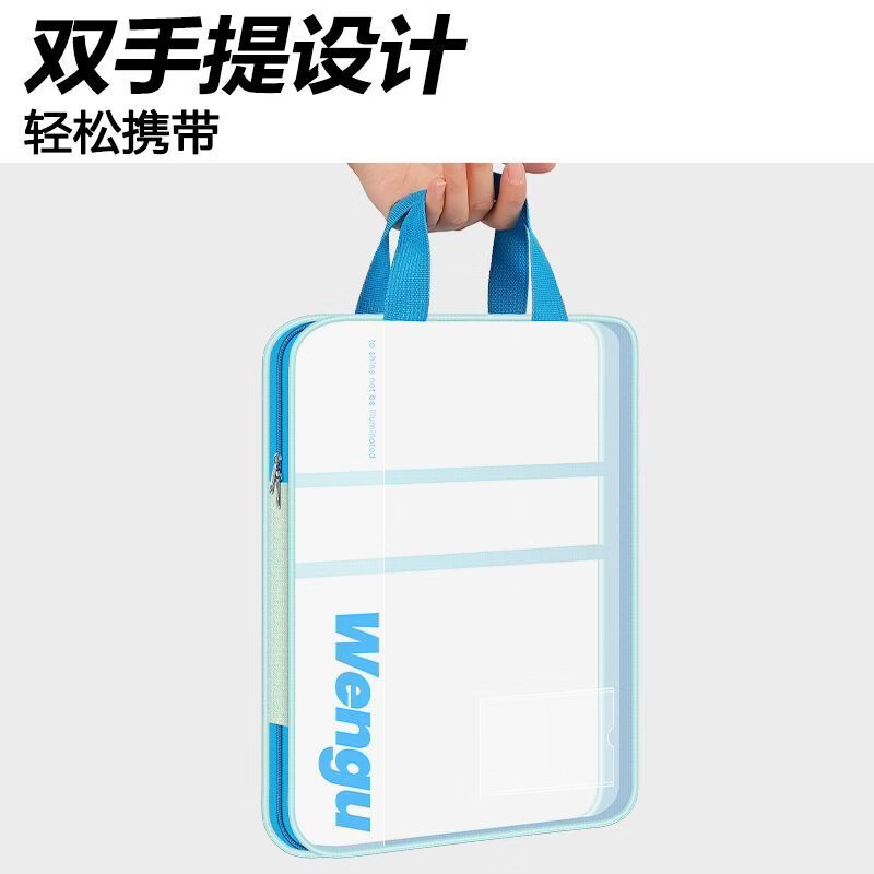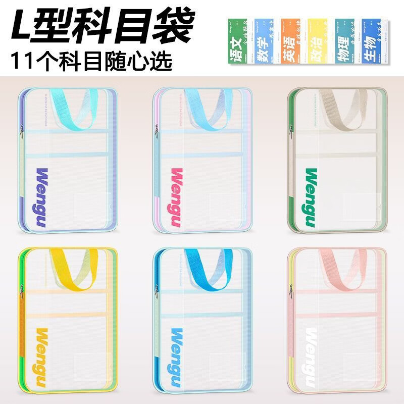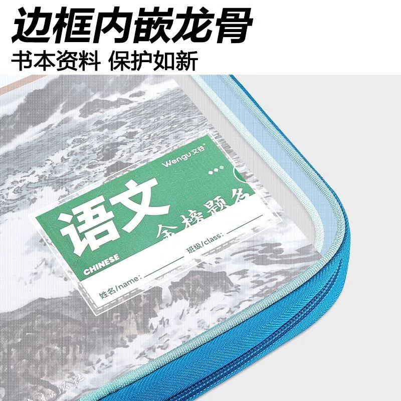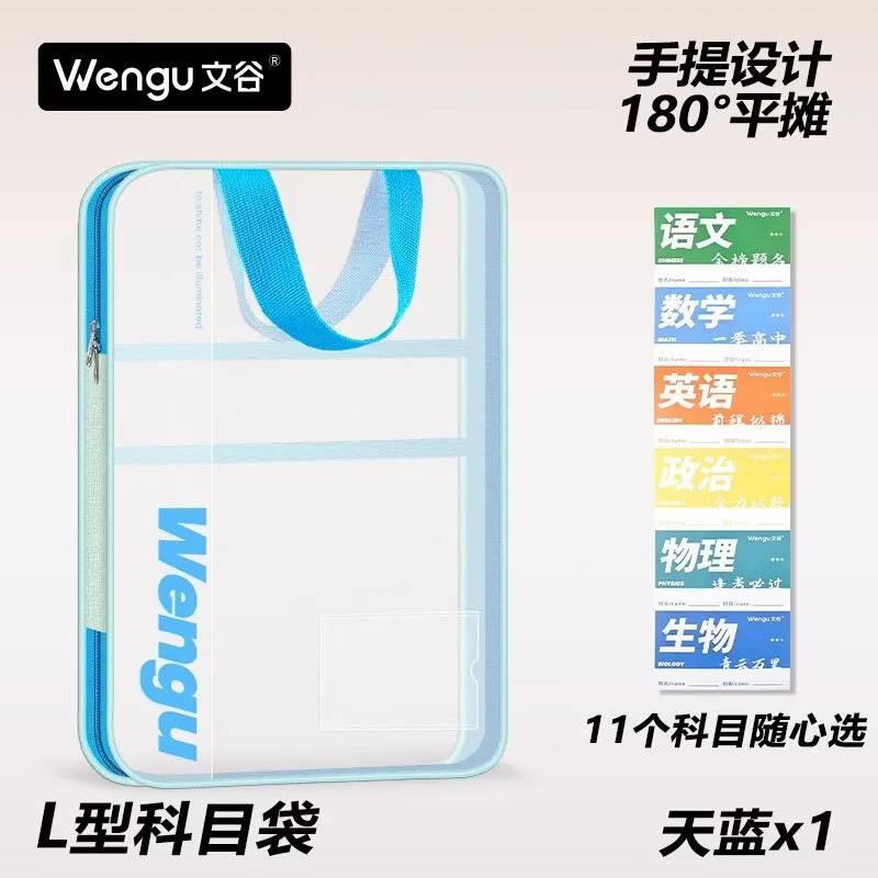 文谷(Wengu)文件袋小学生分科目书袋L型拉链学科分类科目袋试卷收纳办公开学必备文具用品加厚天蓝L-WSD-027-C