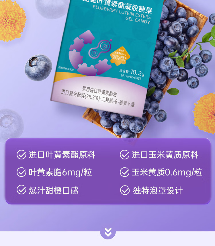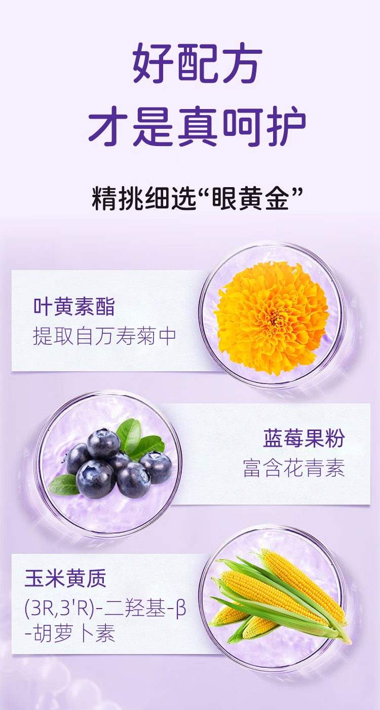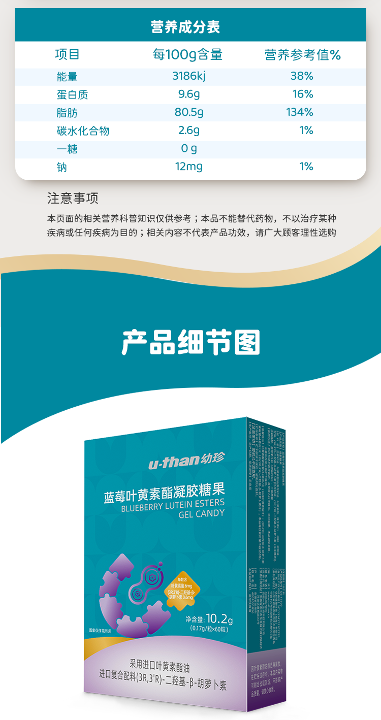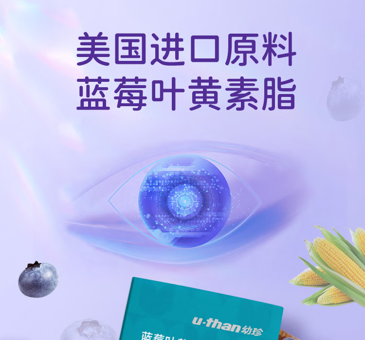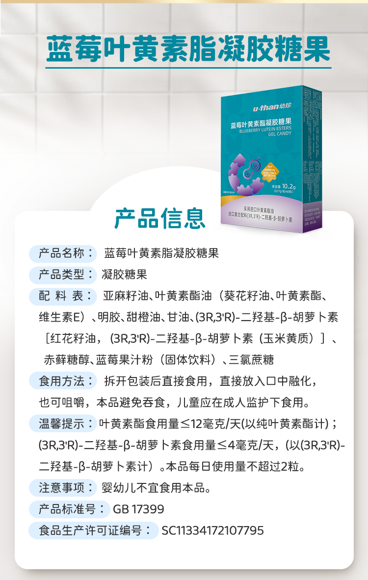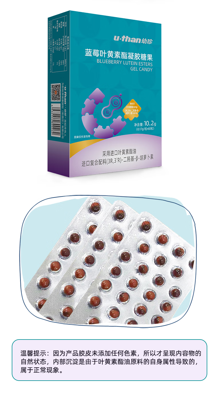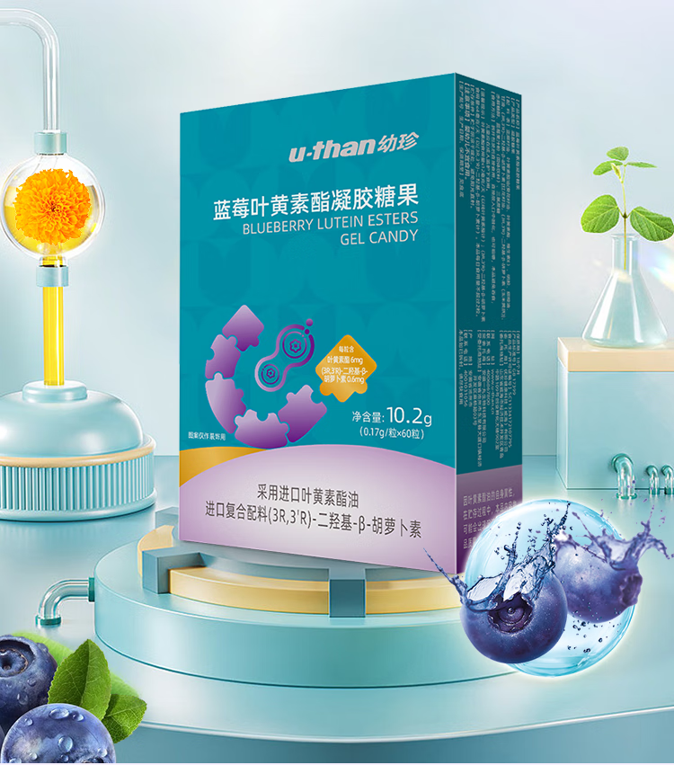 U-than幼珍蓝莓叶黄素酯凝糖果片60粒/瓶 儿童青少年学生成人眼睛营养 60粒*3盒