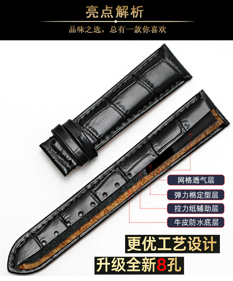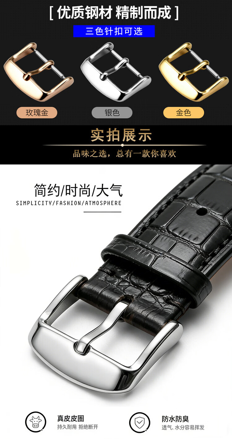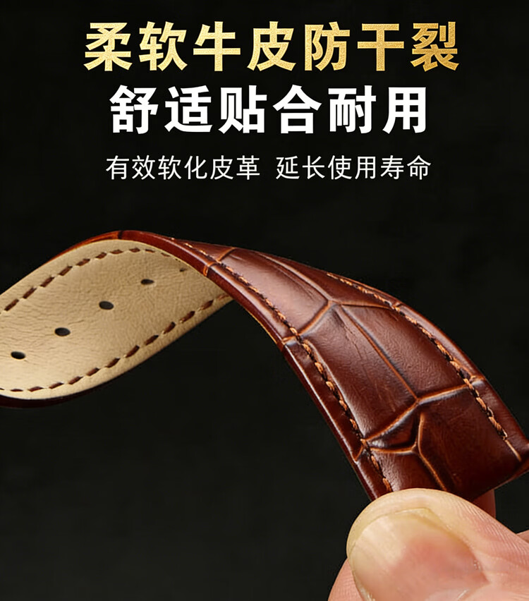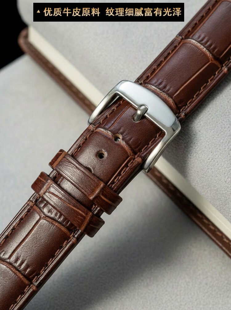 欧格利(Aurgelly)牛皮表带代用天梭卡西欧浪琴欧米茄手表带真皮表带男皮表带手表配件男士表带配换装工具 黑色皮带-20mm