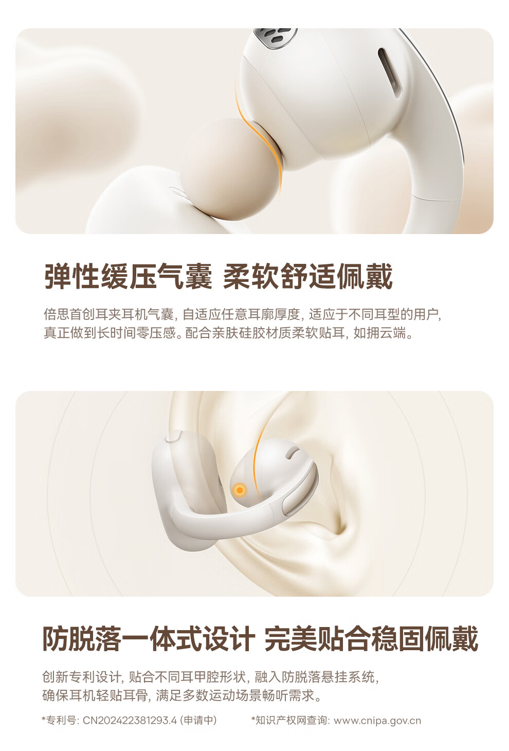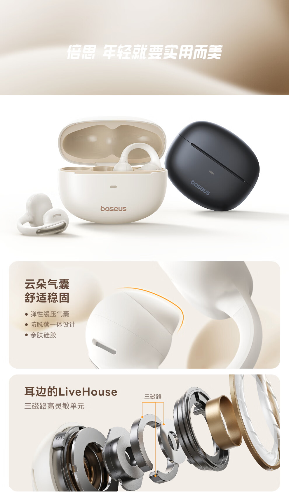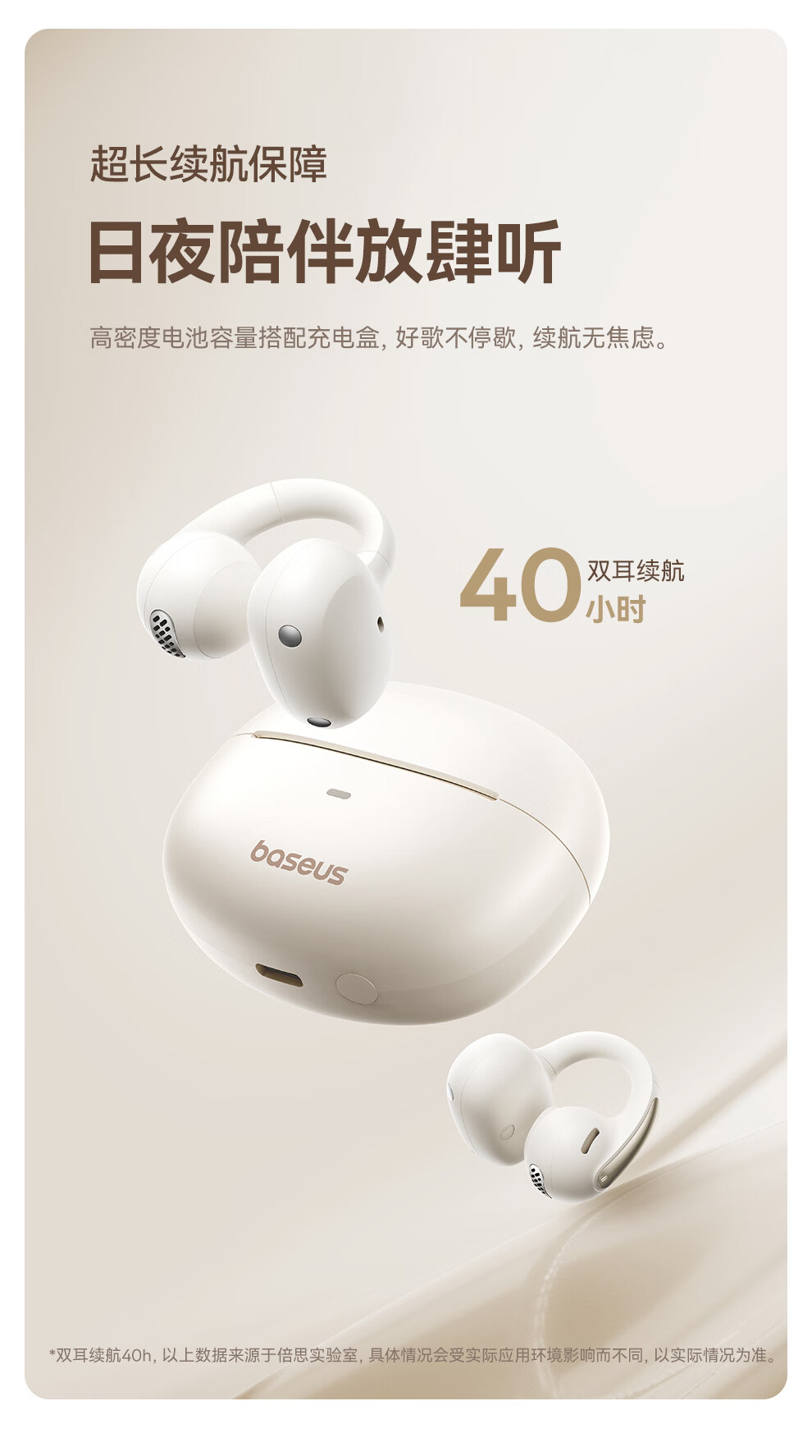 BASEUS耳机蓝牙不伤耳朵2026新款耳夹式开放式气骨传导无线不入耳运动跑步高音质耳机运动跑步专用耳机 白色 【冰川】—白 开放式不入耳运动耳机