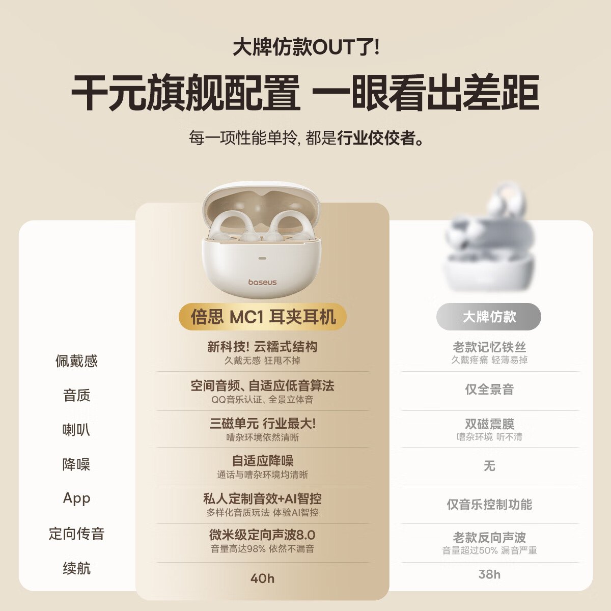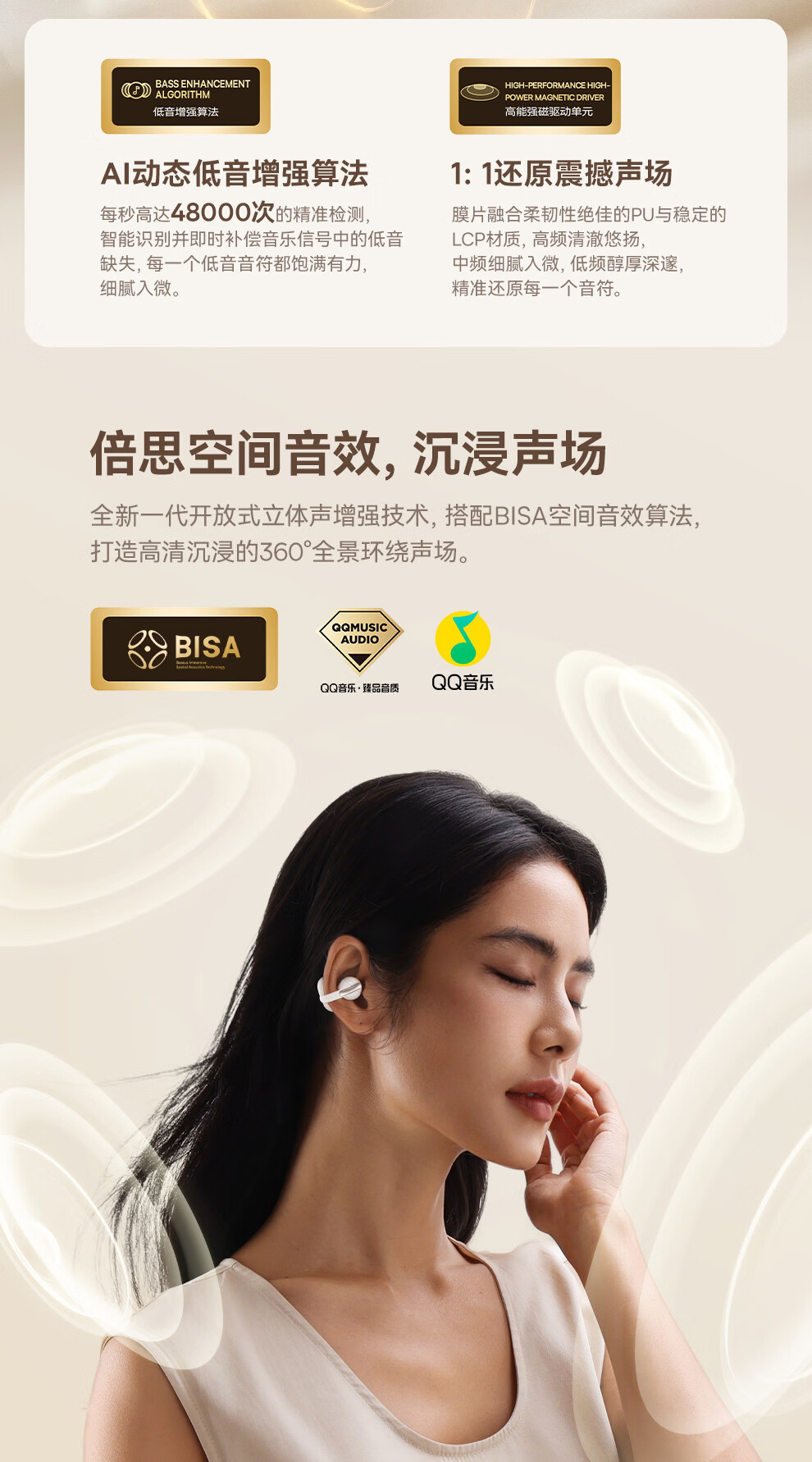 酷狗【音乐金榜】6.0蓝牙耳机耳夹式骨传导概念无线不入耳运动跑步降噪续航开放适用于苹果华为KG300 香槟金丨蓝牙6.0旗舰丨超长续航丨磁力数显