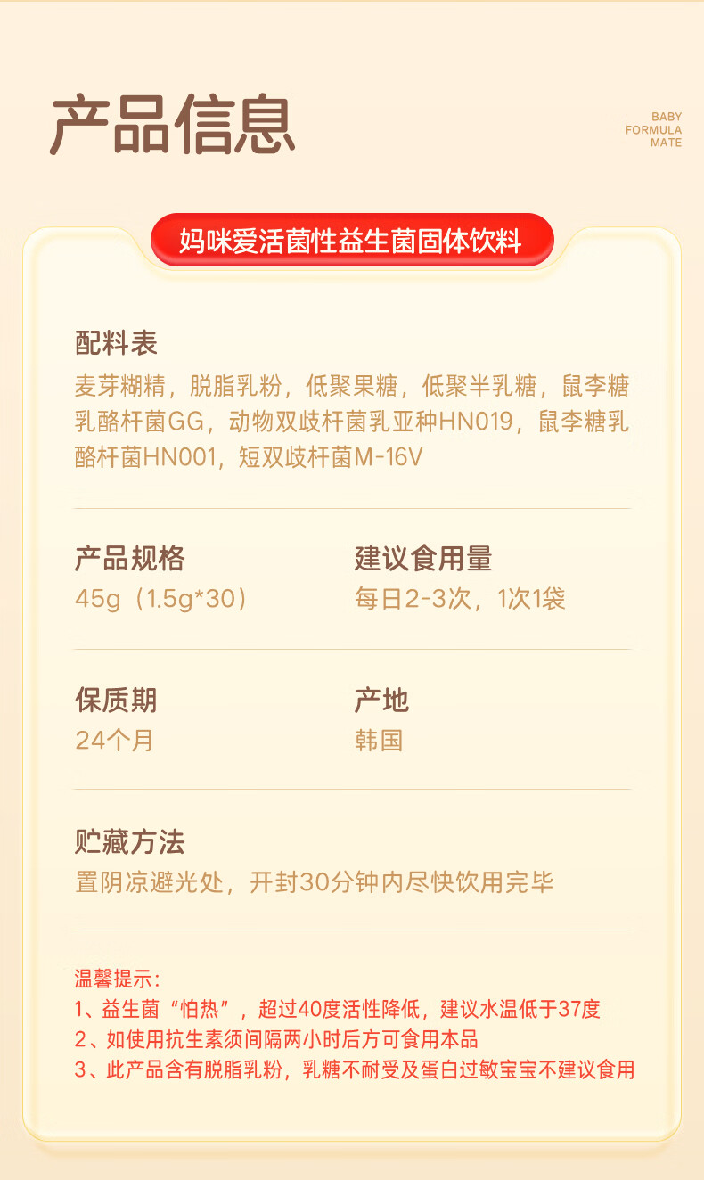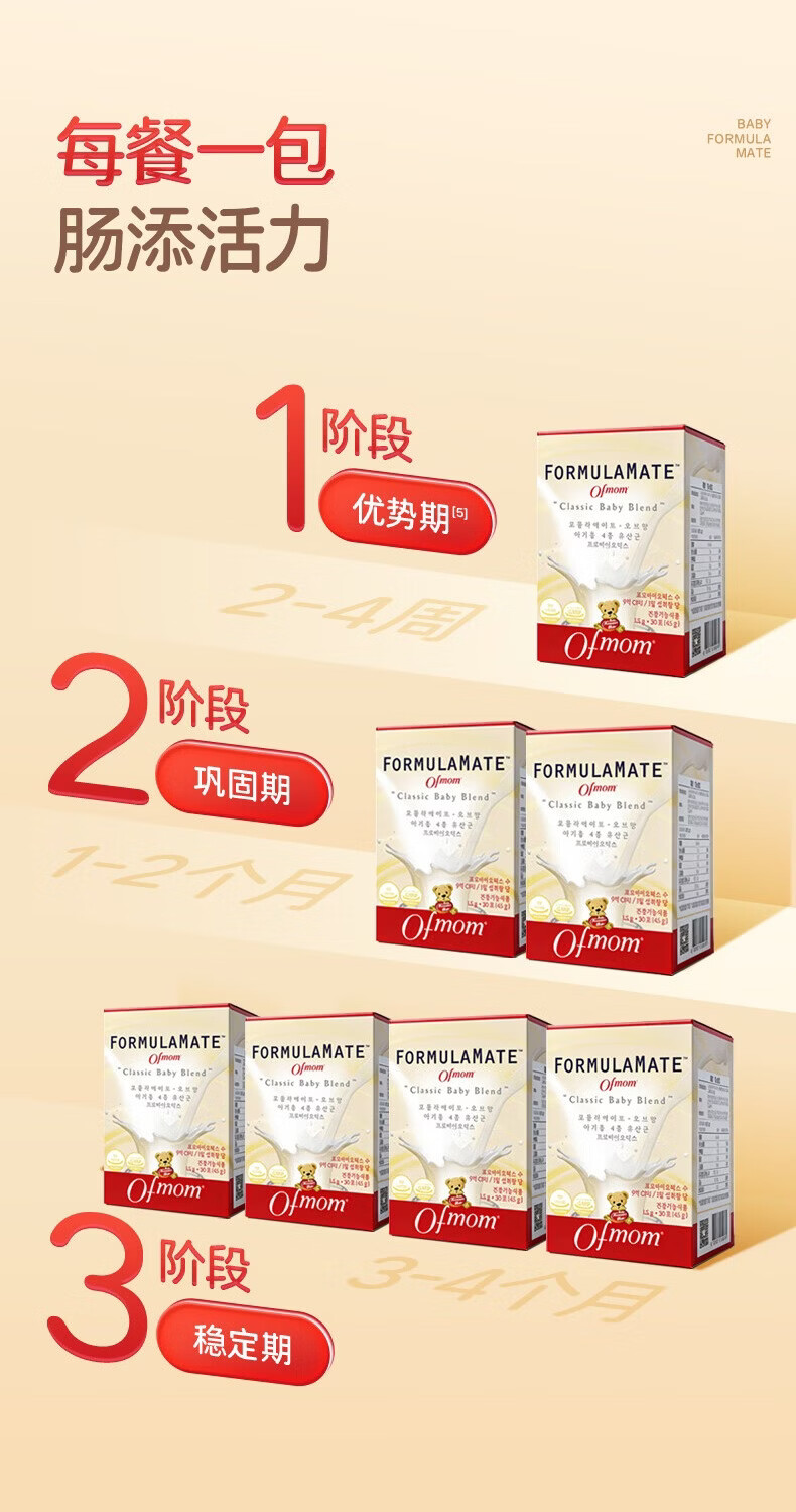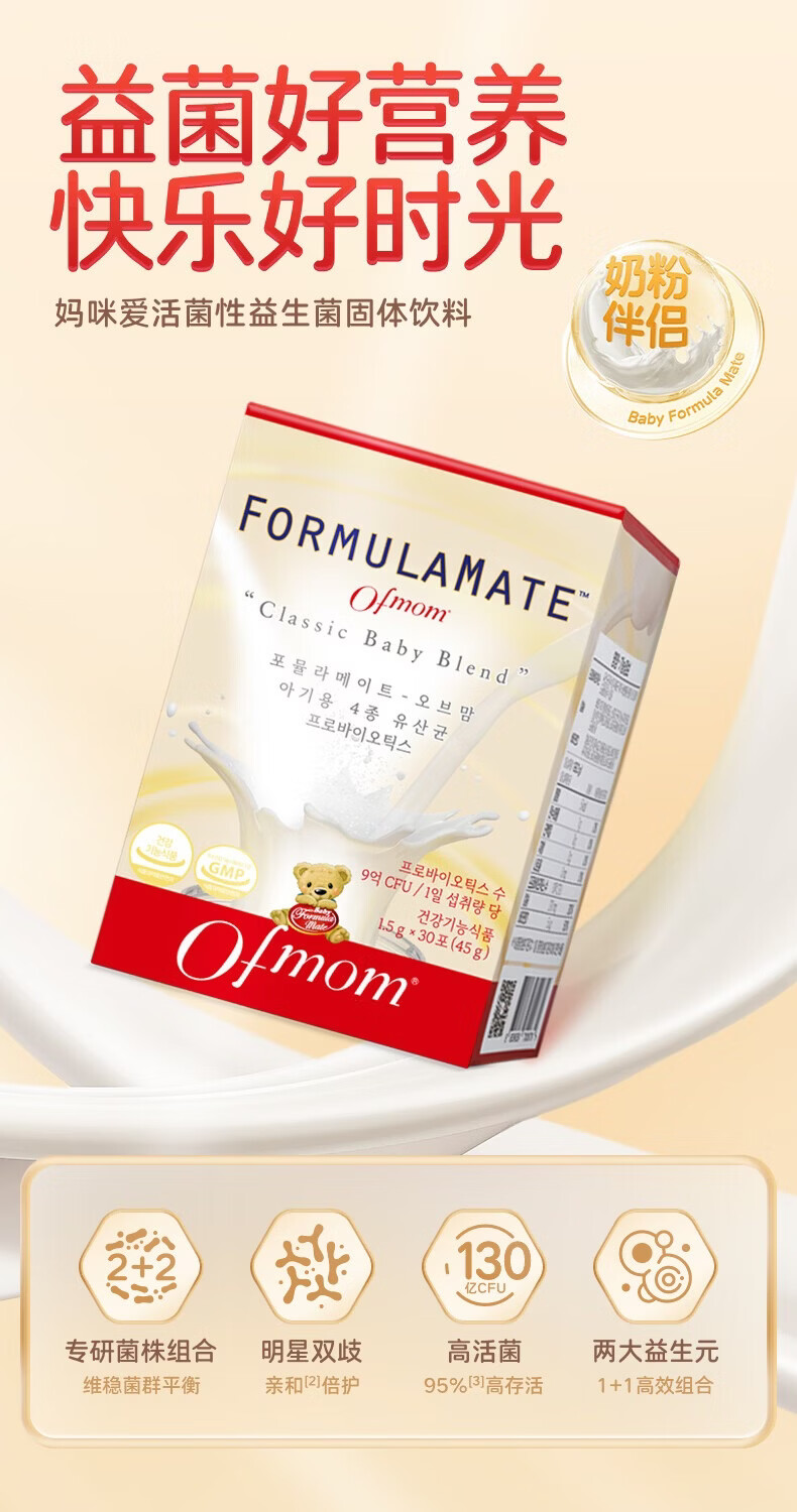 OFMOM妈咪爱活性益生菌四联肠胃益生菌呵护肠道奶味 30支*2盒