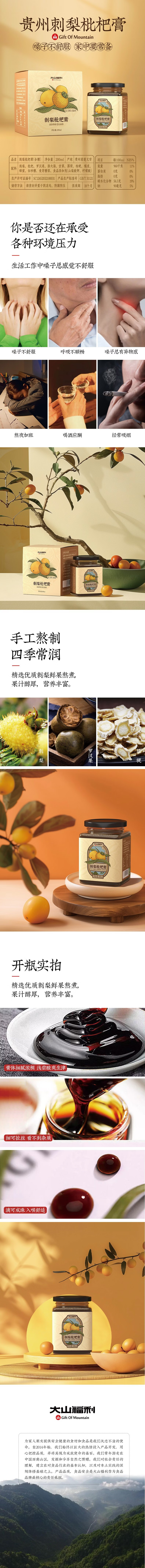 大山福利刺梨枇杷膏贵州特产伴手礼罗汉果胖大海泡水茶手工熬制补充VC瓶装 200ml*1瓶 刺梨枇杷膏
