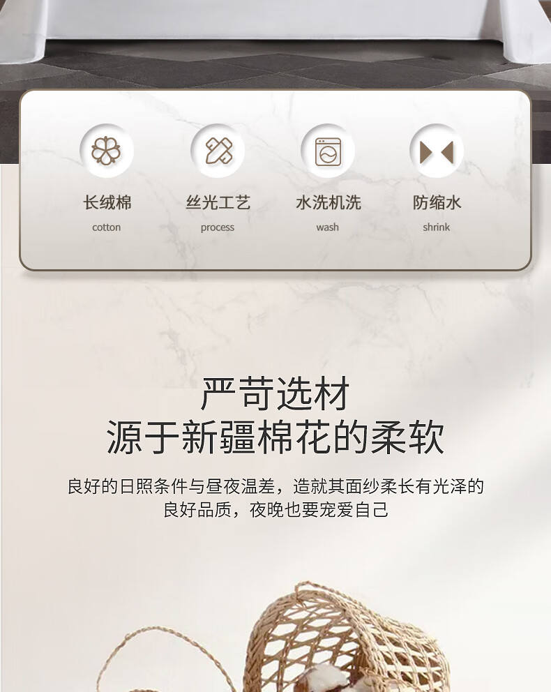 雅色白色床单纯棉 酒店长绒棉纯白色床单 全棉白色床单床罩 纯白贡缎【万豪同款】床笠 100支 【单品床笠】 180cm*200cm