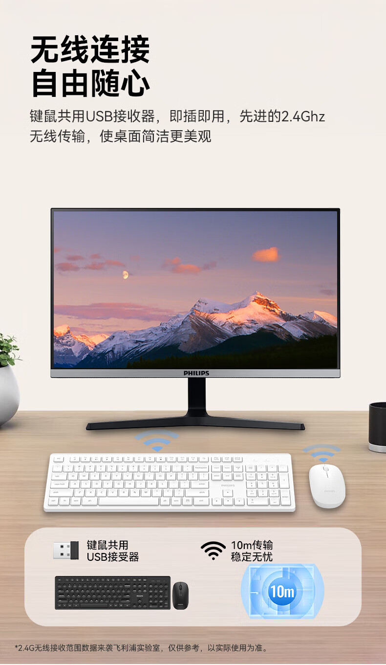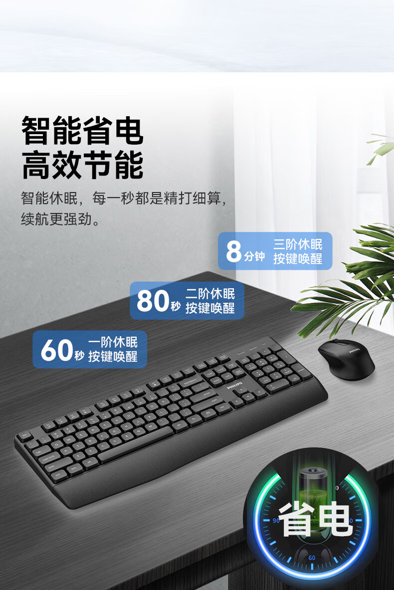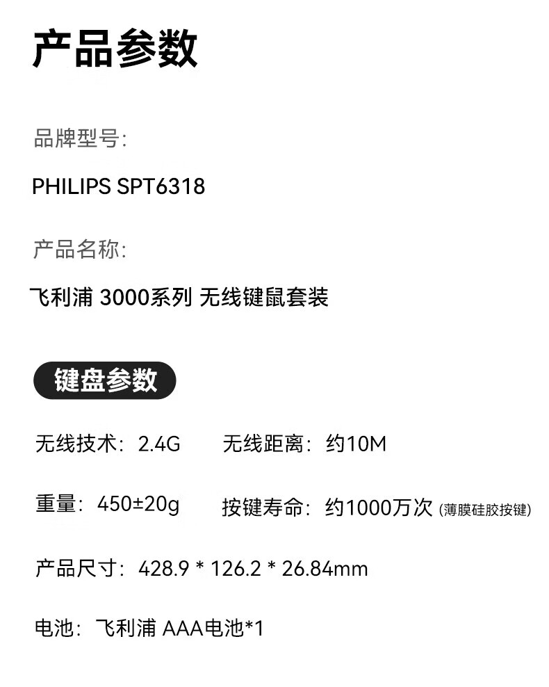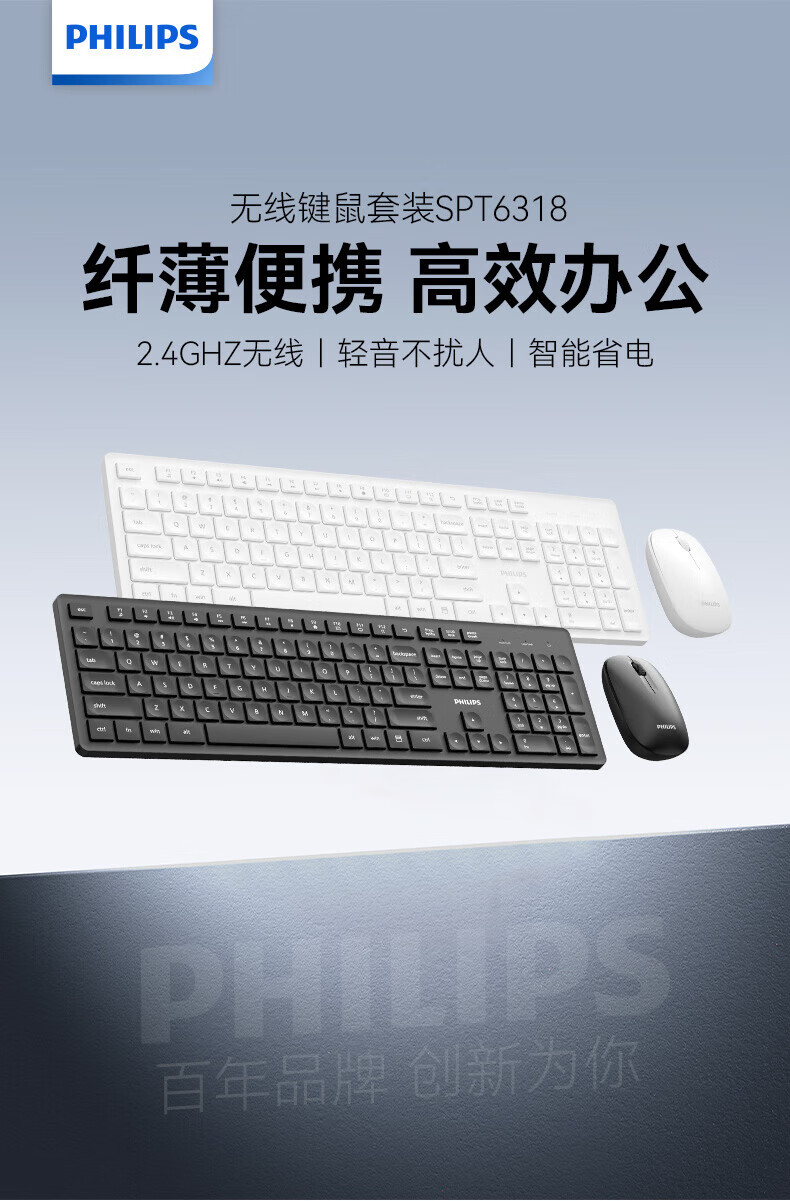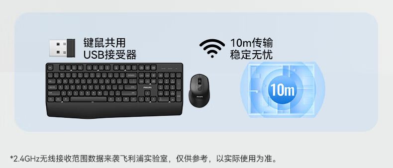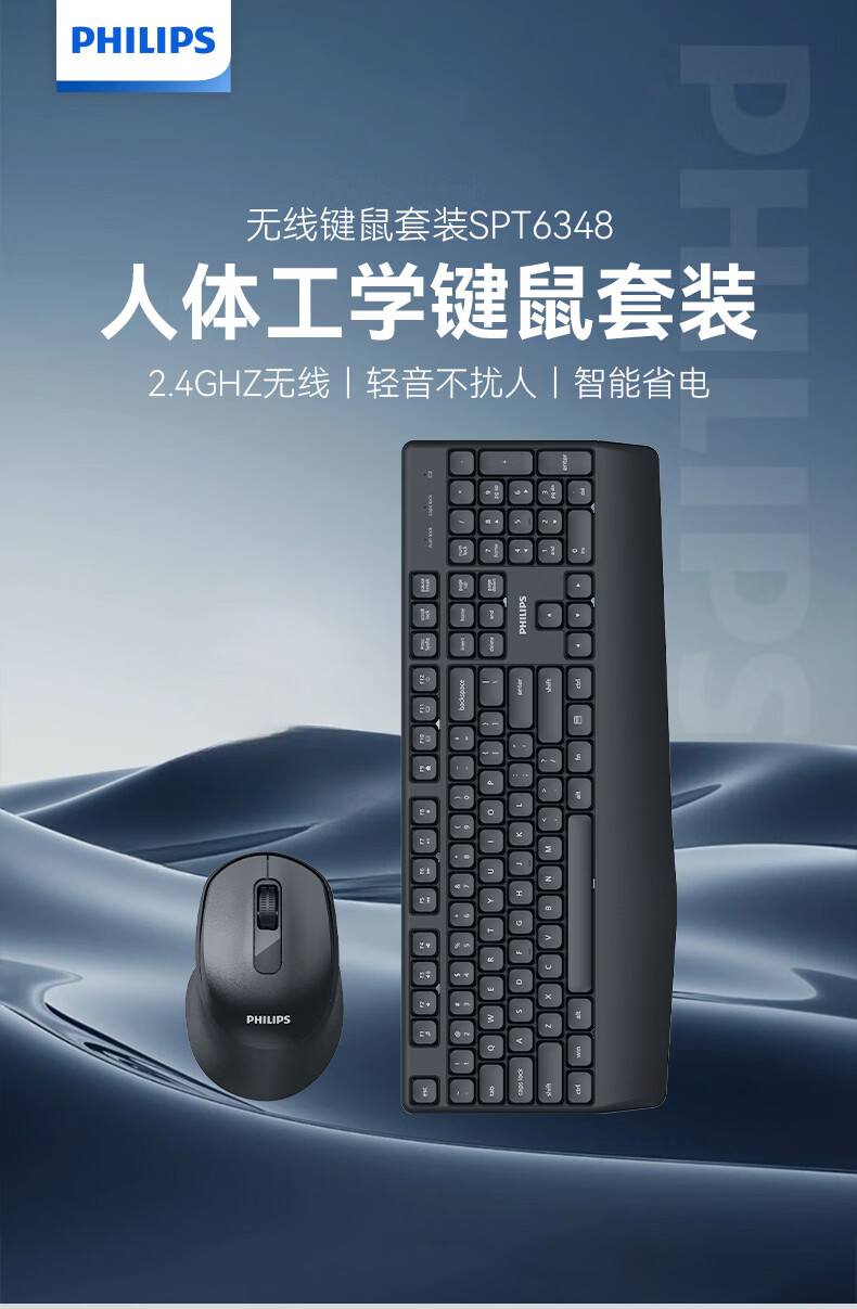 飞利浦(PHILIPS)无线键盘鼠标套装办公电脑台式键盘有线USB笔记本外接家用打字低音键盘企业采购WF13A SPT6318无线键鼠套装 黑色