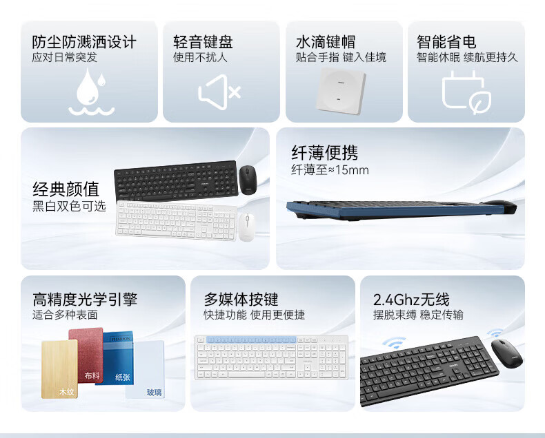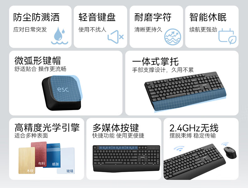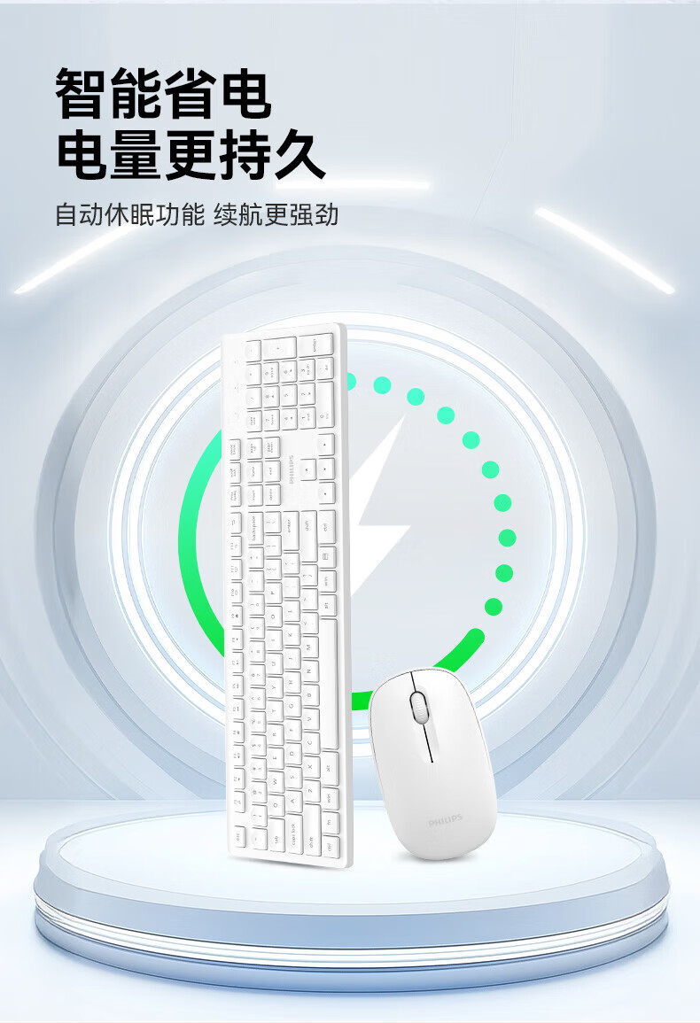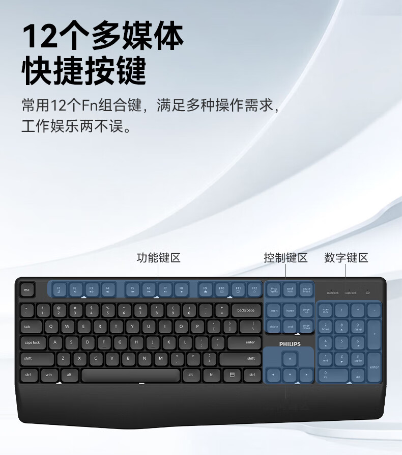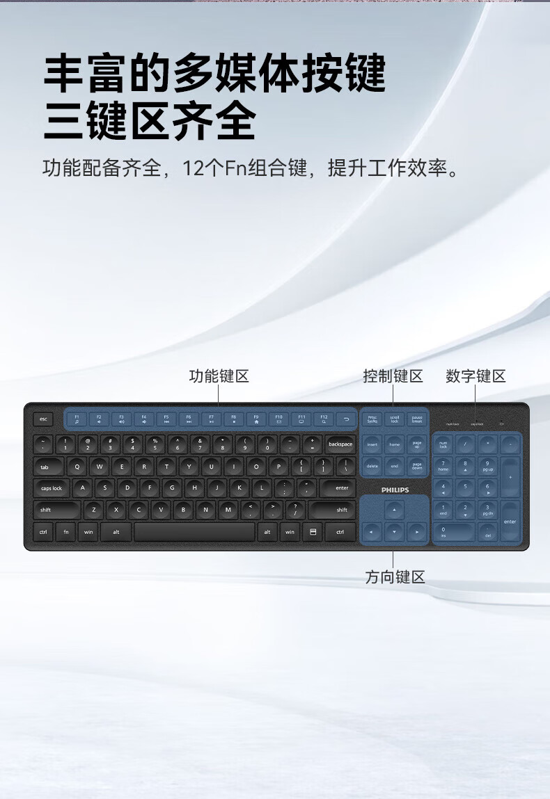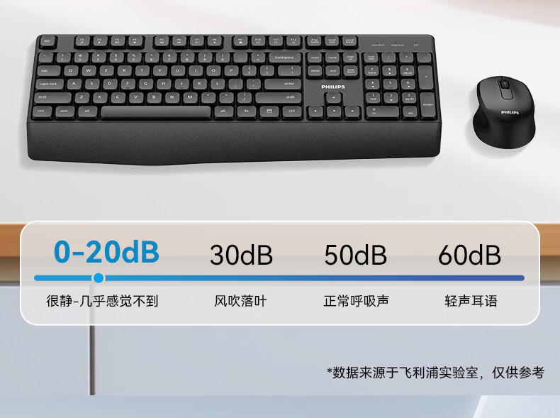 飞利浦(PHILIPS)无线键盘鼠标套装办公电脑台式键盘有线USB笔记本外接家用打字低音键盘企业采购WF13A SPT6318无线键鼠套装 黑色