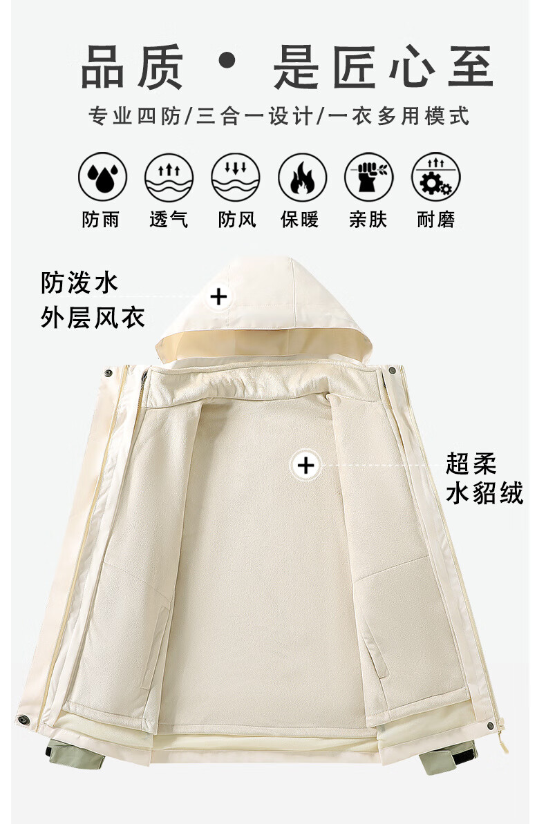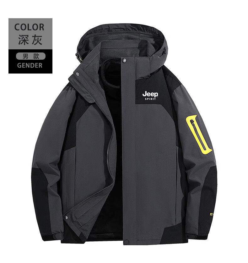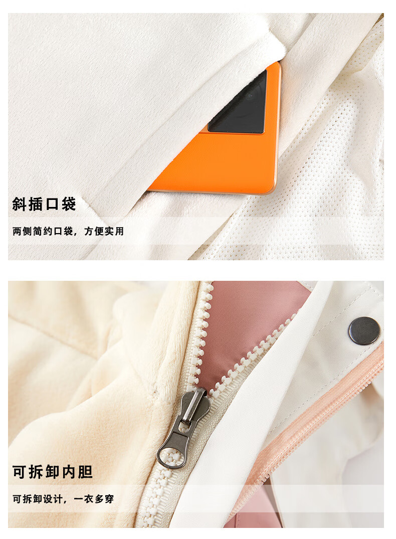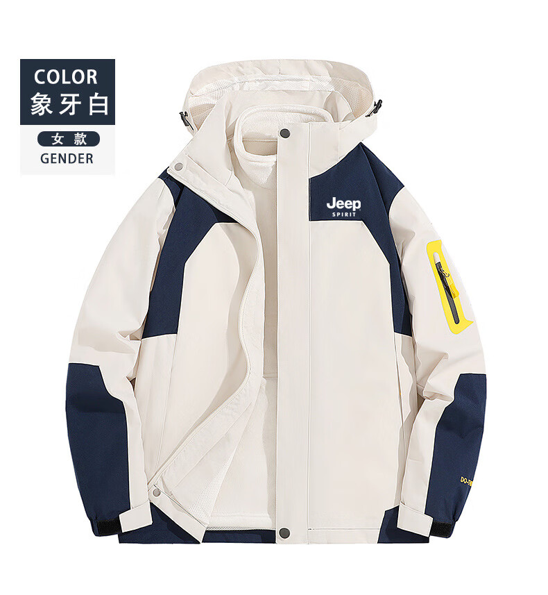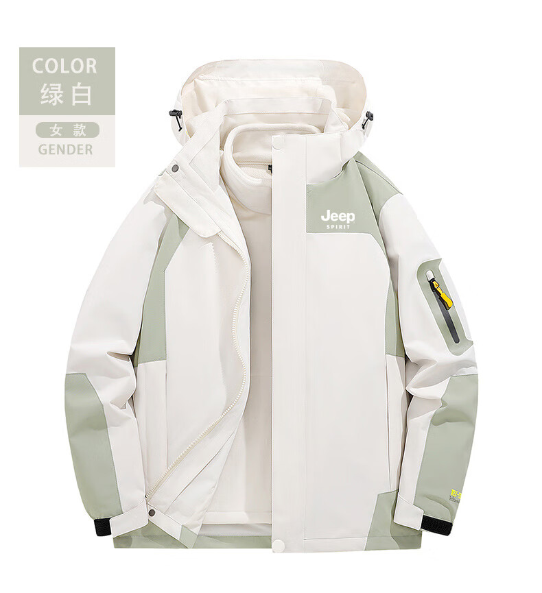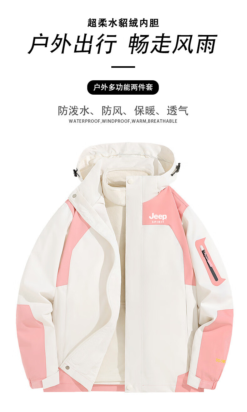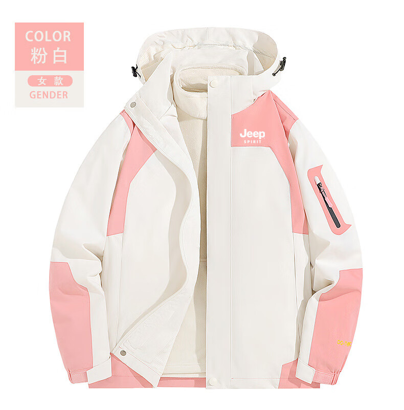 JEEP SPIRIT吉普冲锋衣夹克男女秋冬三合一加厚情侣两件套防风防水保暖外套 粉蓝(女款三合一) 6XL