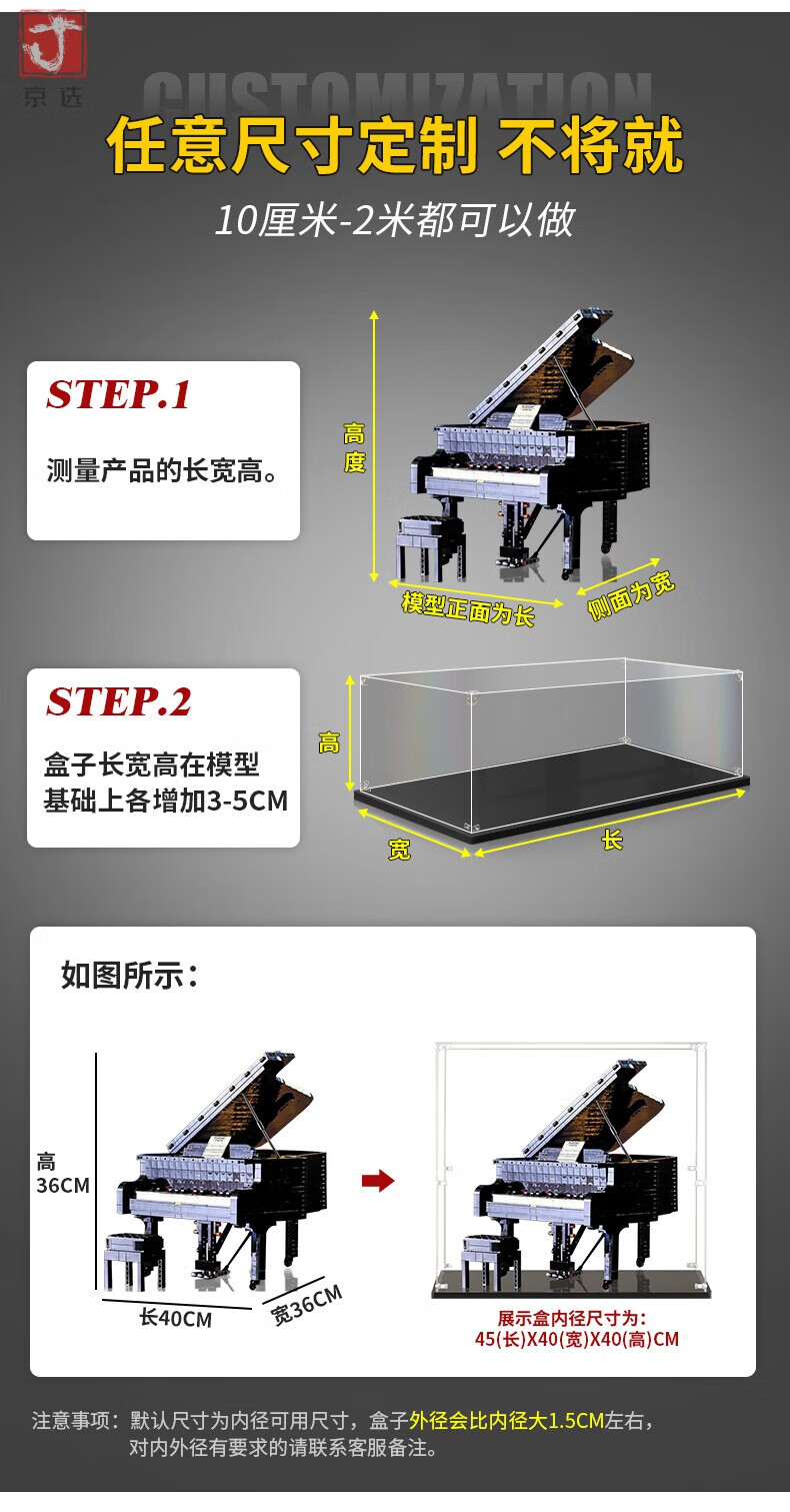 亚克力展示盒适用乐高手办模型收纳盒展示架可定制透明积木防尘罩 长宽15*10cm(内尺寸) 10cm高(内尺寸)