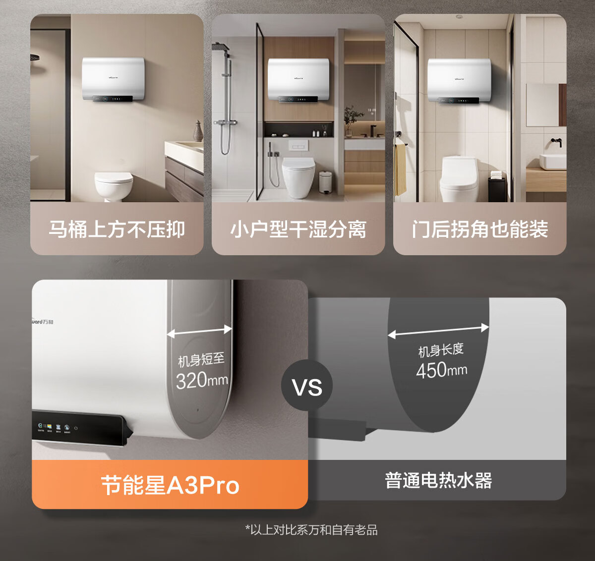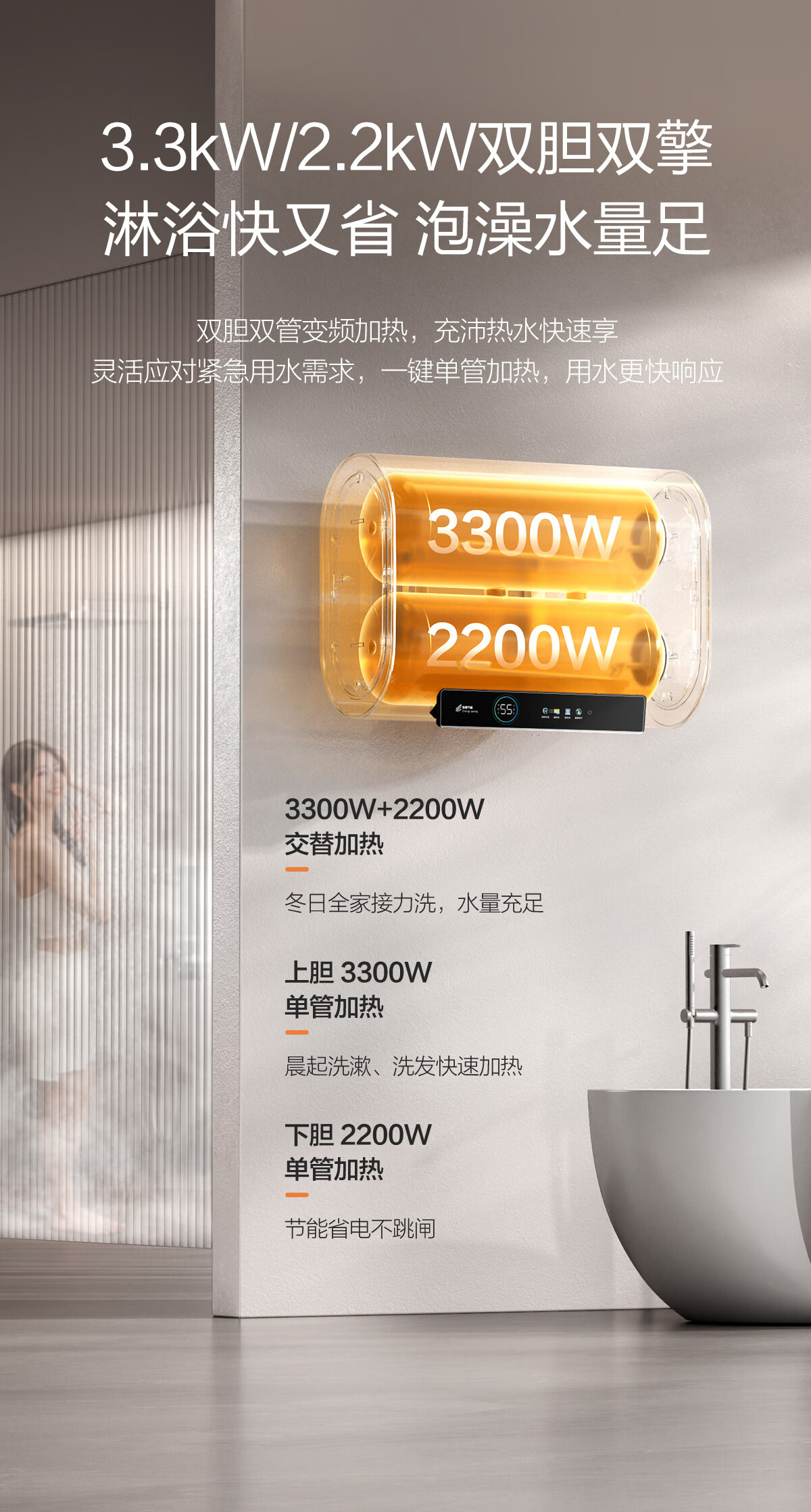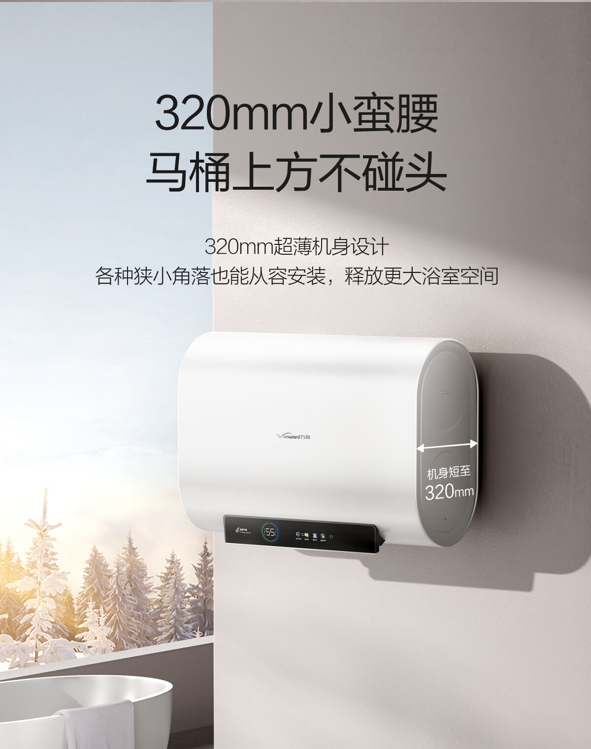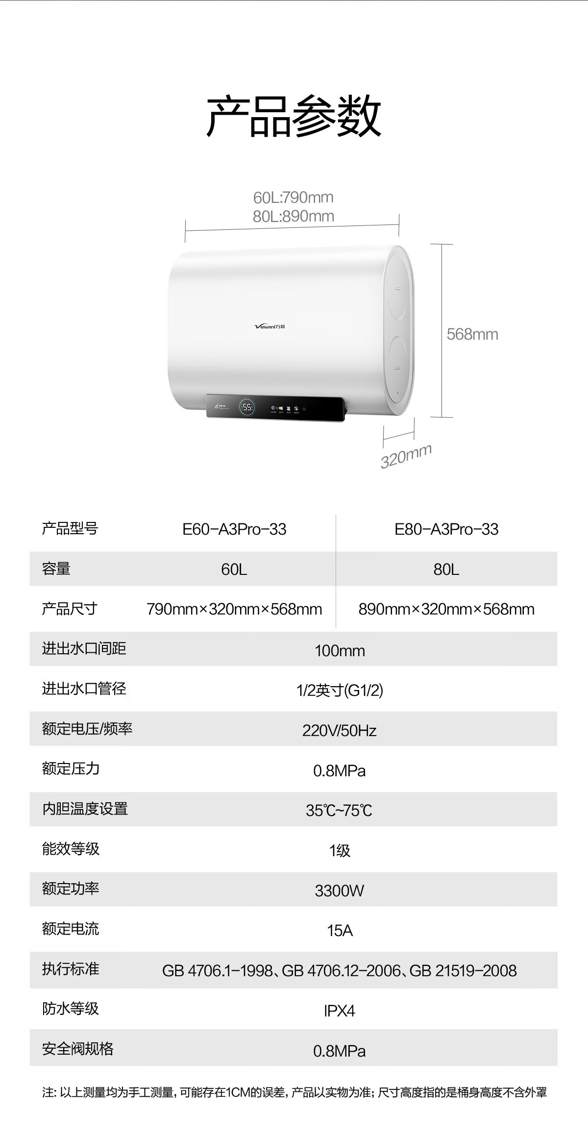 万和【节能星A3Pro】80升超薄双胆扁桶3300W变频速热免换镁棒超1吨大水量一级能效电热水器国家补贴15%