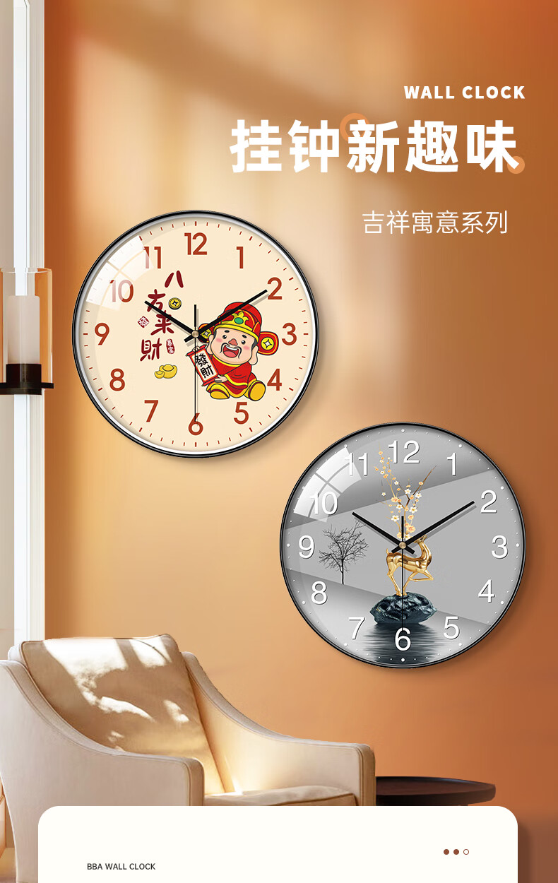 BBA挂钟客厅八方来财新中式创意餐厅装饰钟表挂墙石英钟25cm