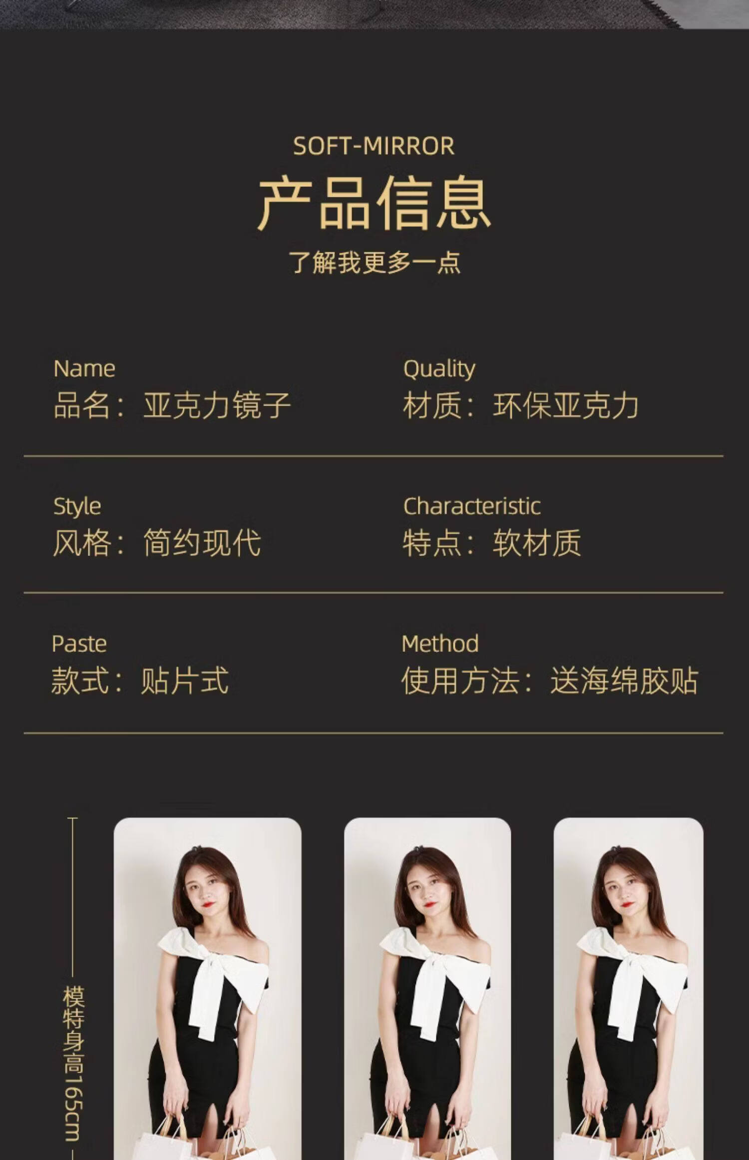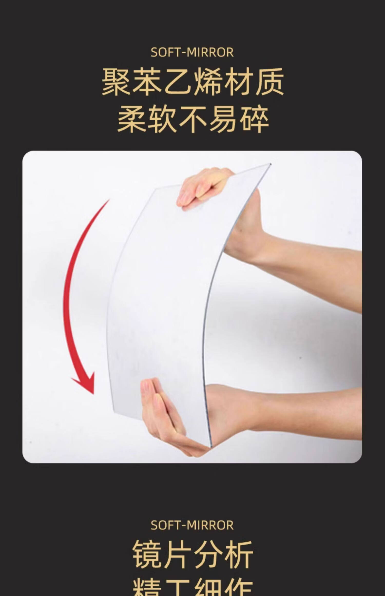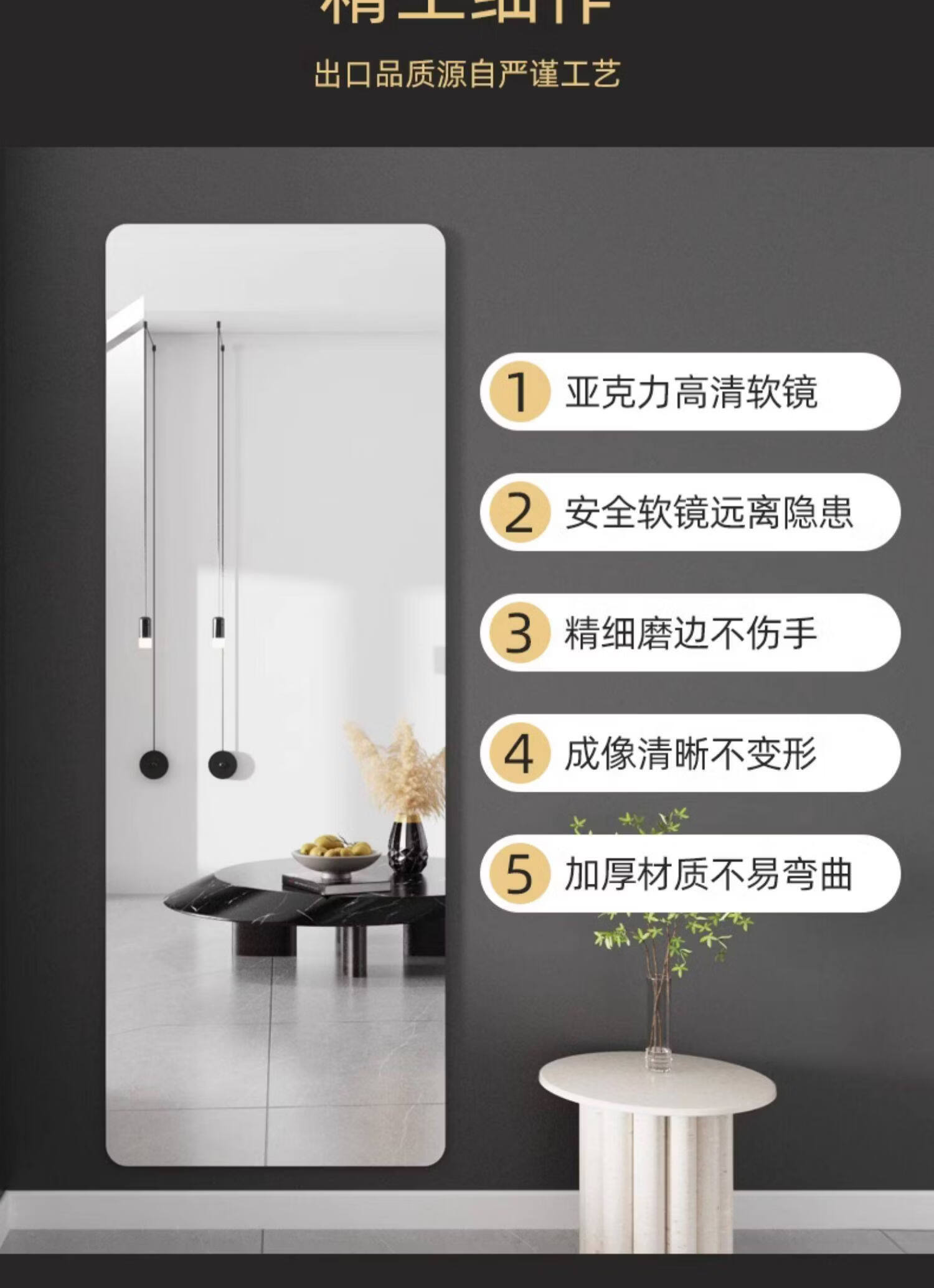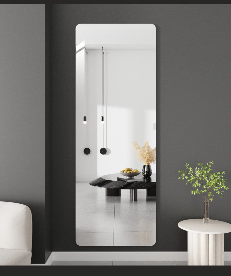 诗元亚克力软镜子贴墙自粘镜面贴纸家用试衣镜卧室全身镜穿衣镜贴柜门 圆角20*60cm 【不变形呈像清晰】