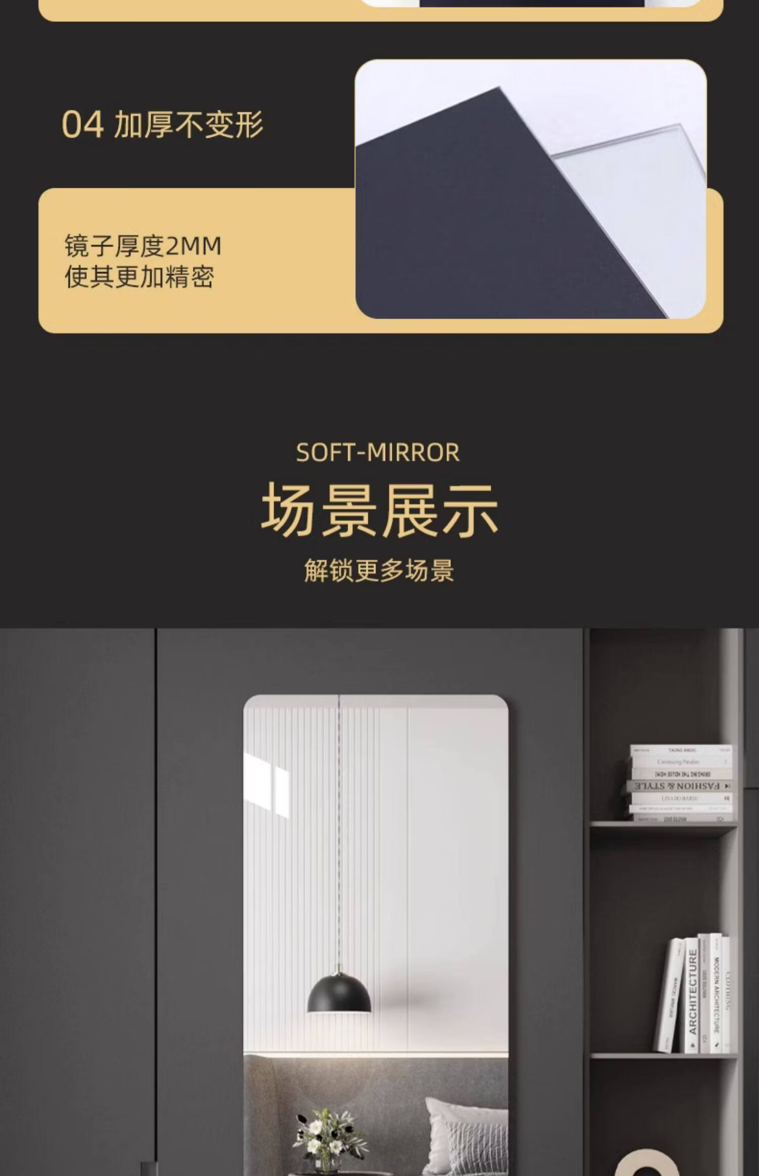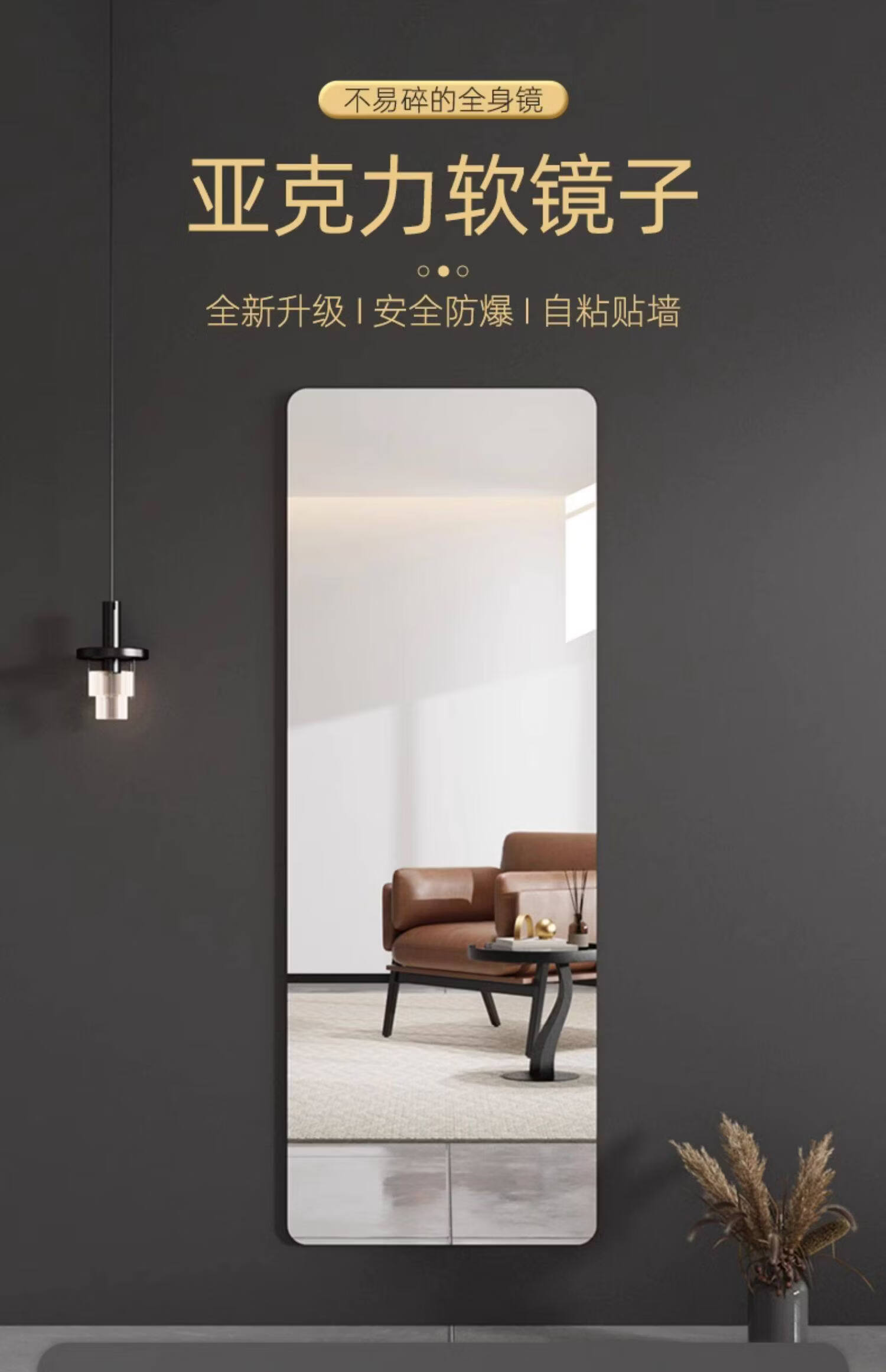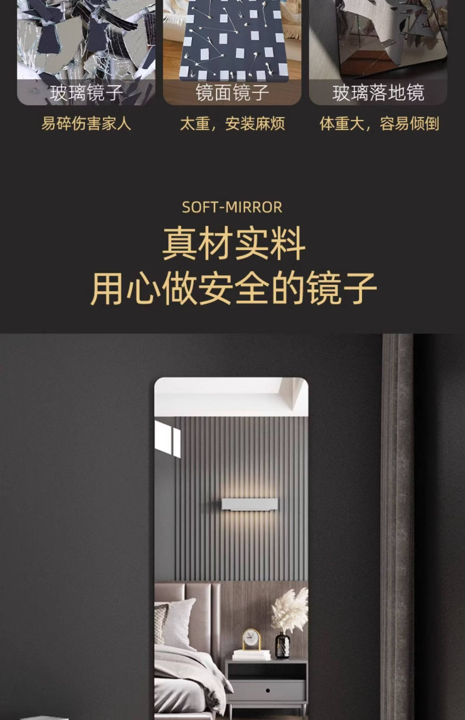 诗元学生宿舍全身镜免打孔高清试衣镜贴墙自粘穿衣镜真实不变形化妆镜 【高清防爆】20*80【粘贴免打孔 破损补发】