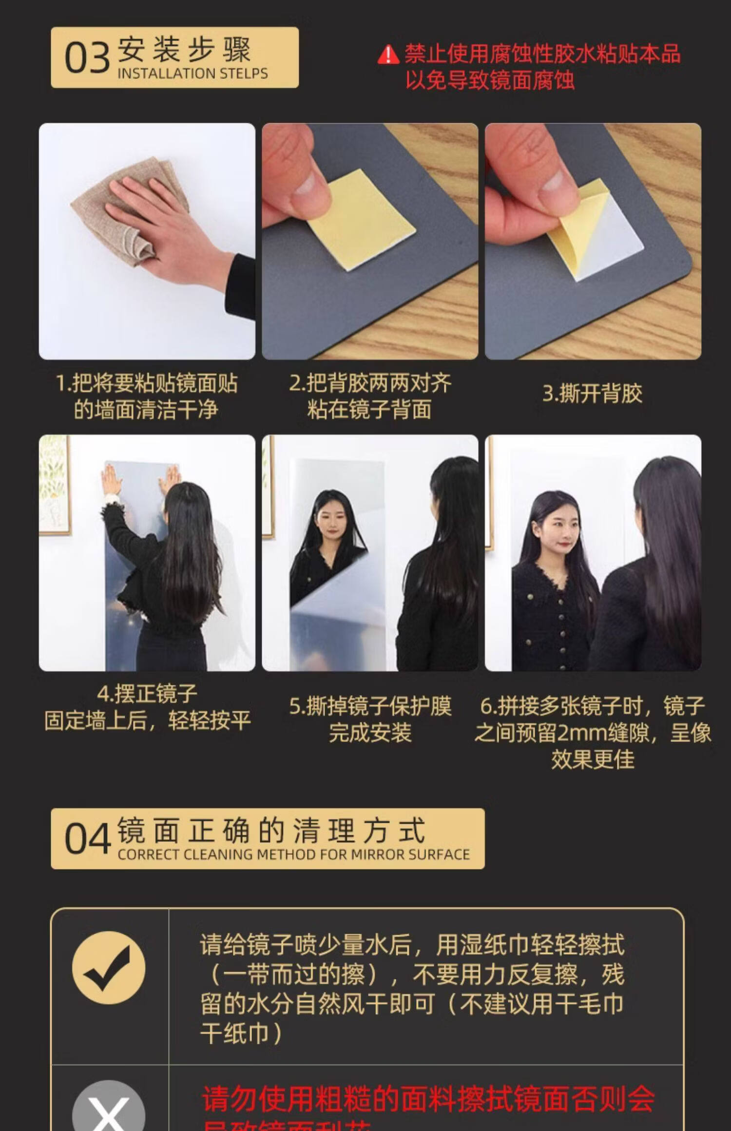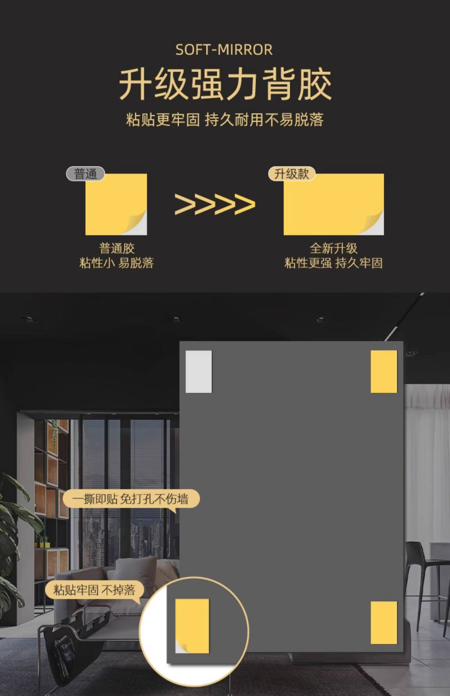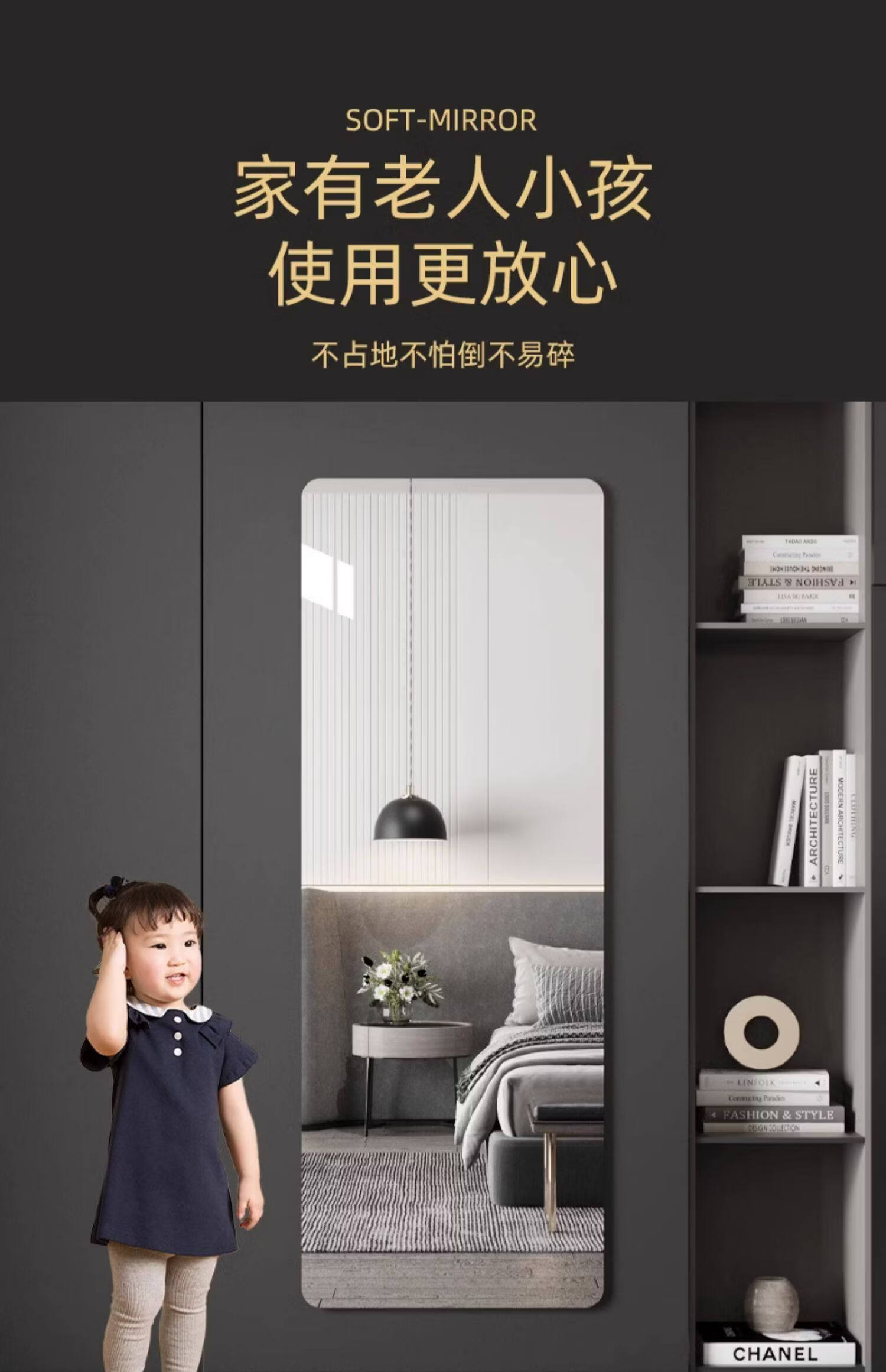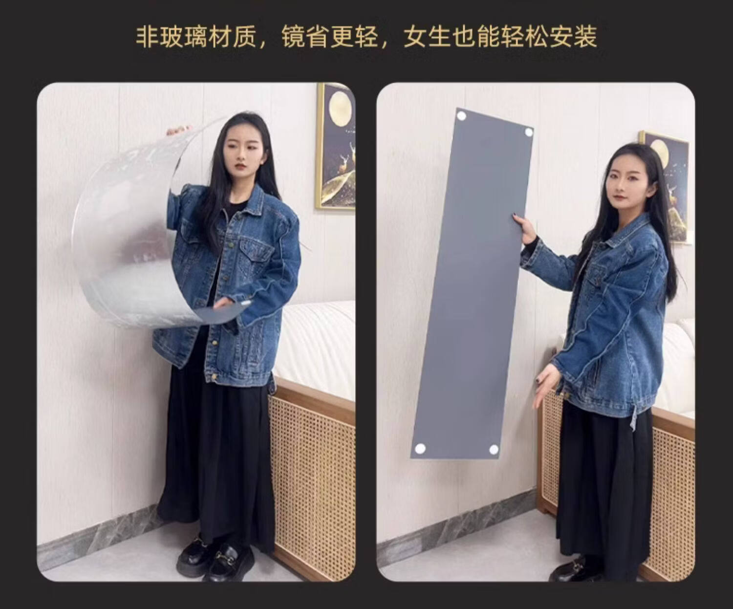 诗元学生宿舍全身镜免打孔高清试衣镜贴墙自粘穿衣镜真实不变形化妆镜 【高清防爆】20*80【粘贴免打孔 破损补发】