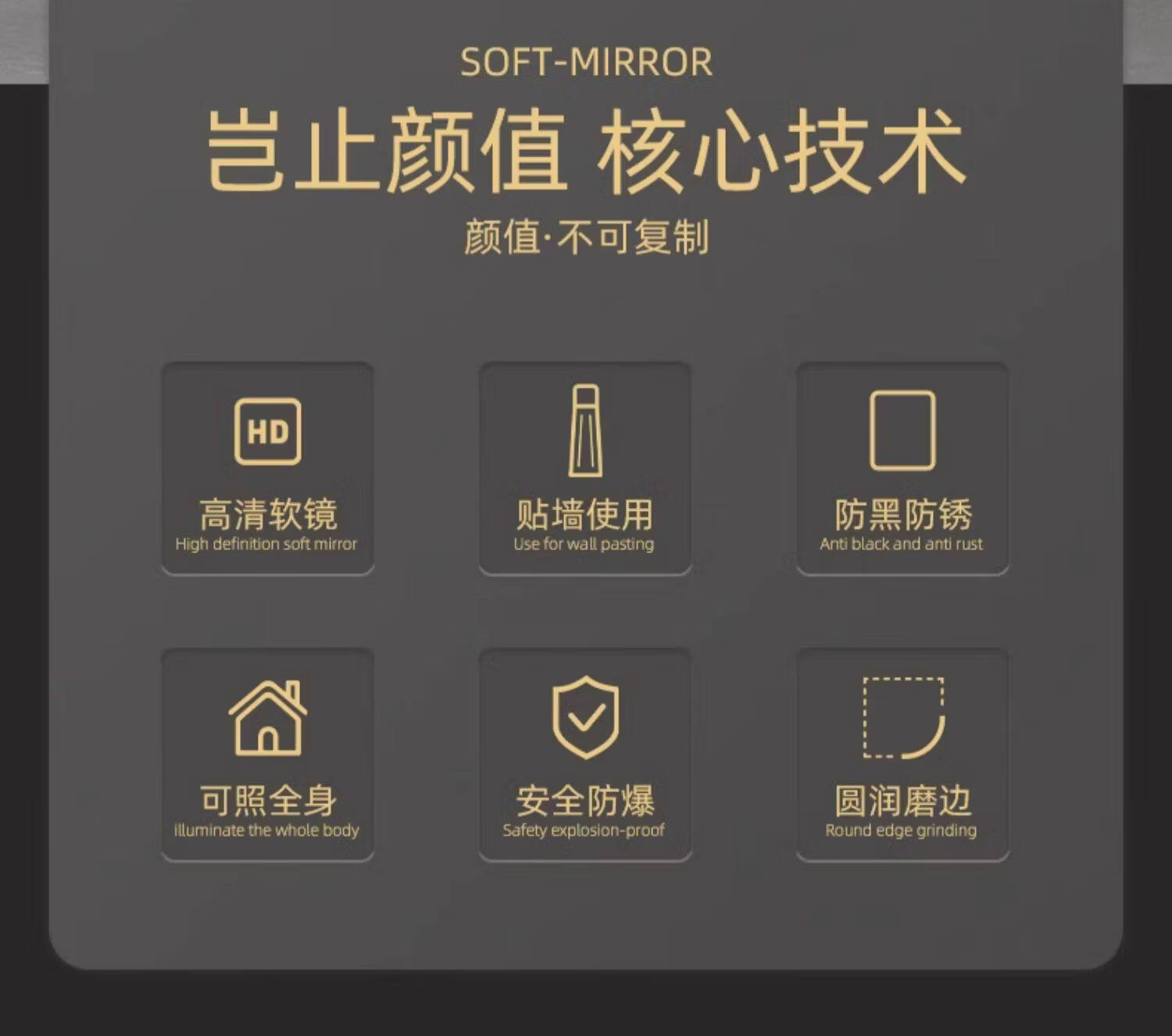 诗元轻奢无框玻璃浴室镜子贴墙自粘免打孔卫生间壁挂式化妆梳妆镜定制 【打孔/免打孔】圆角防爆【破损包赔】 35x45厘米
