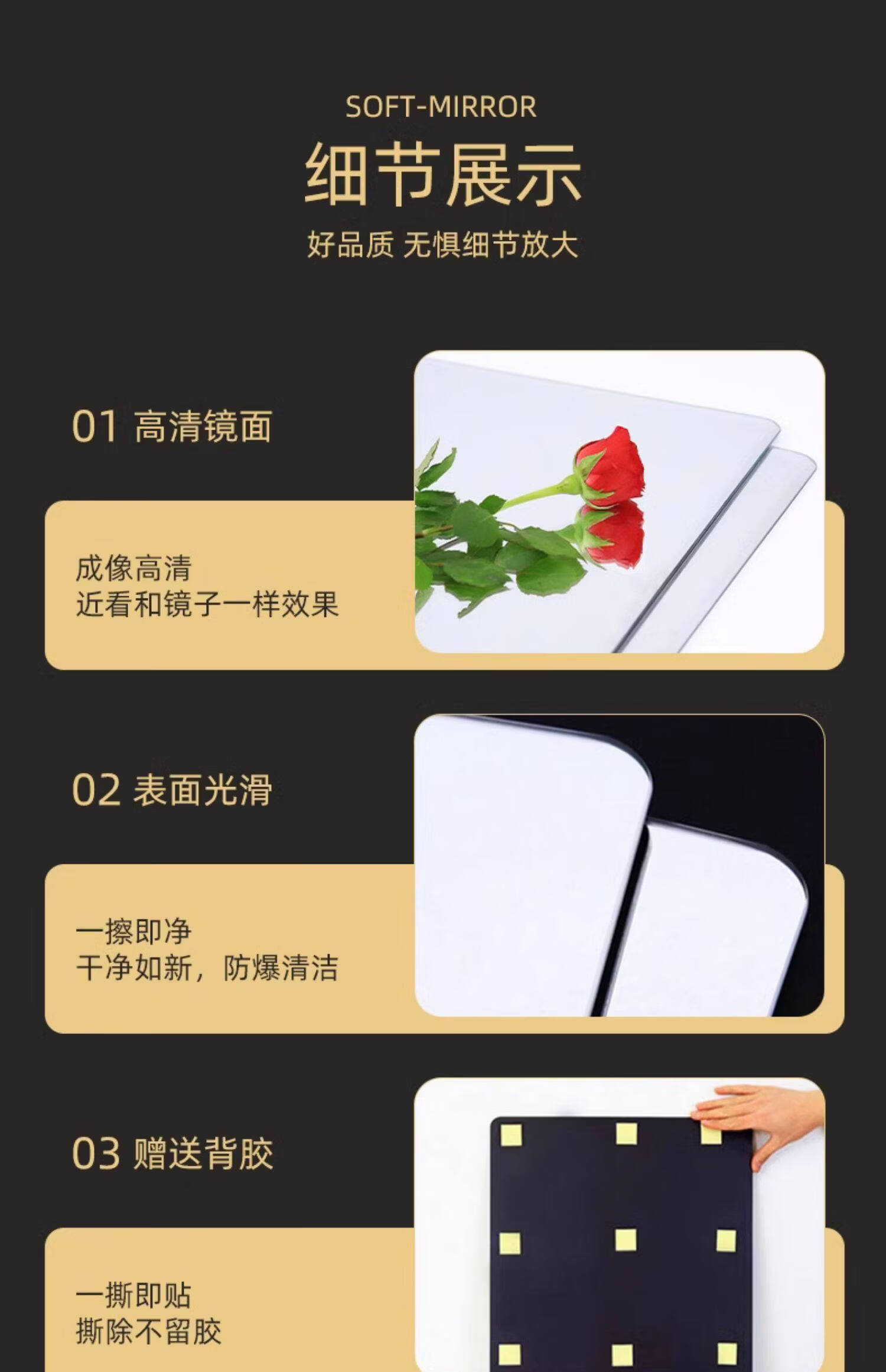 诗元软镜子贴墙自粘浴室家用亚克力全身镜卫生间洗脸化妆镜高清免打孔 【方形圆角款】30*40cm【高清防爆 破损包赔】