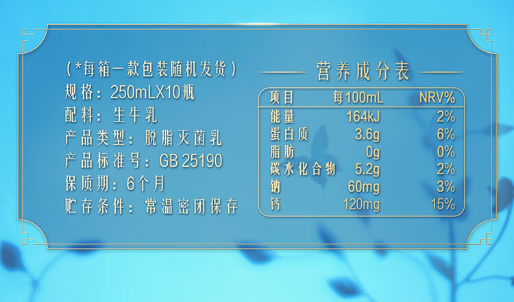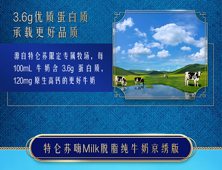 特仑苏脱脂纯牛奶 嗨MILK 0脂肪纯牛奶 250ml*10盒/箱