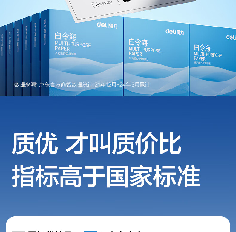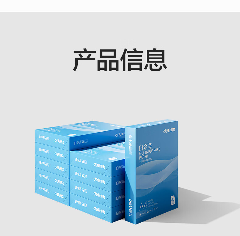 得力(deli)白令海A4打印纸 80g500张单包复印纸 双面加厚 高性价比草稿纸 打印作业7756【经济热销】