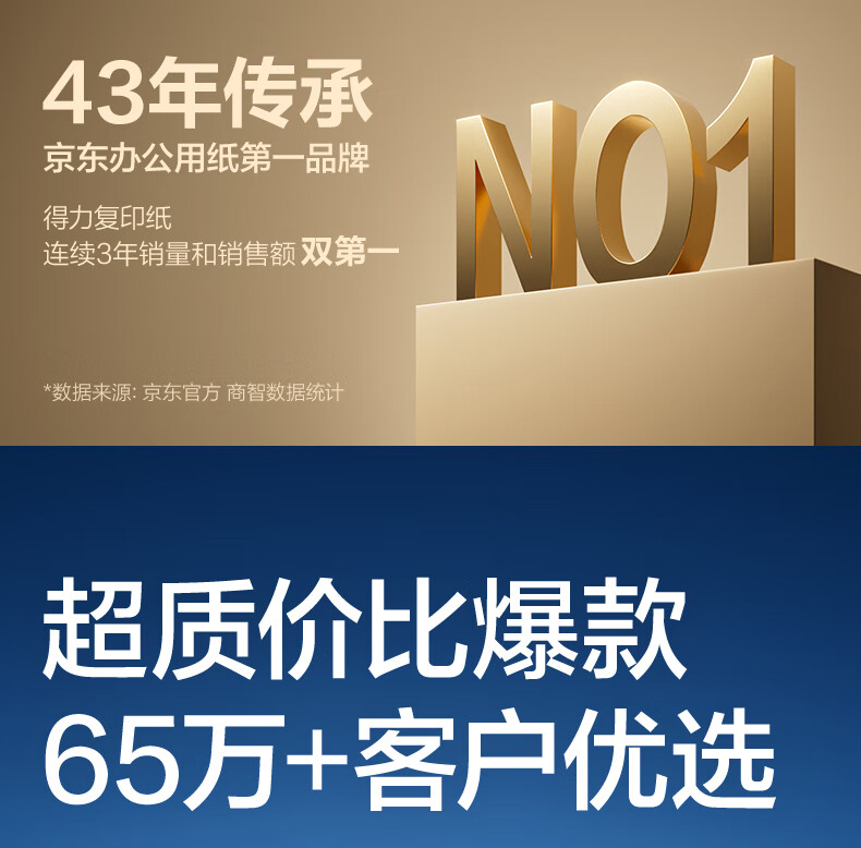 得力(deli)辉铂A4打印纸 70g500张*5包一箱 顺滑细腻 双面打印复印纸 整箱2500张7783【品质升级】