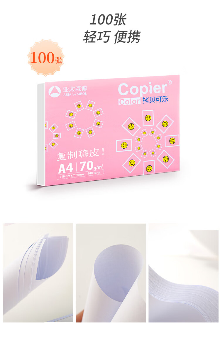 亚太森博拷贝可乐A4打印纸 70g单包装复印纸 双面打印资料 不透印不卡纸【品质热销-100张体验款】