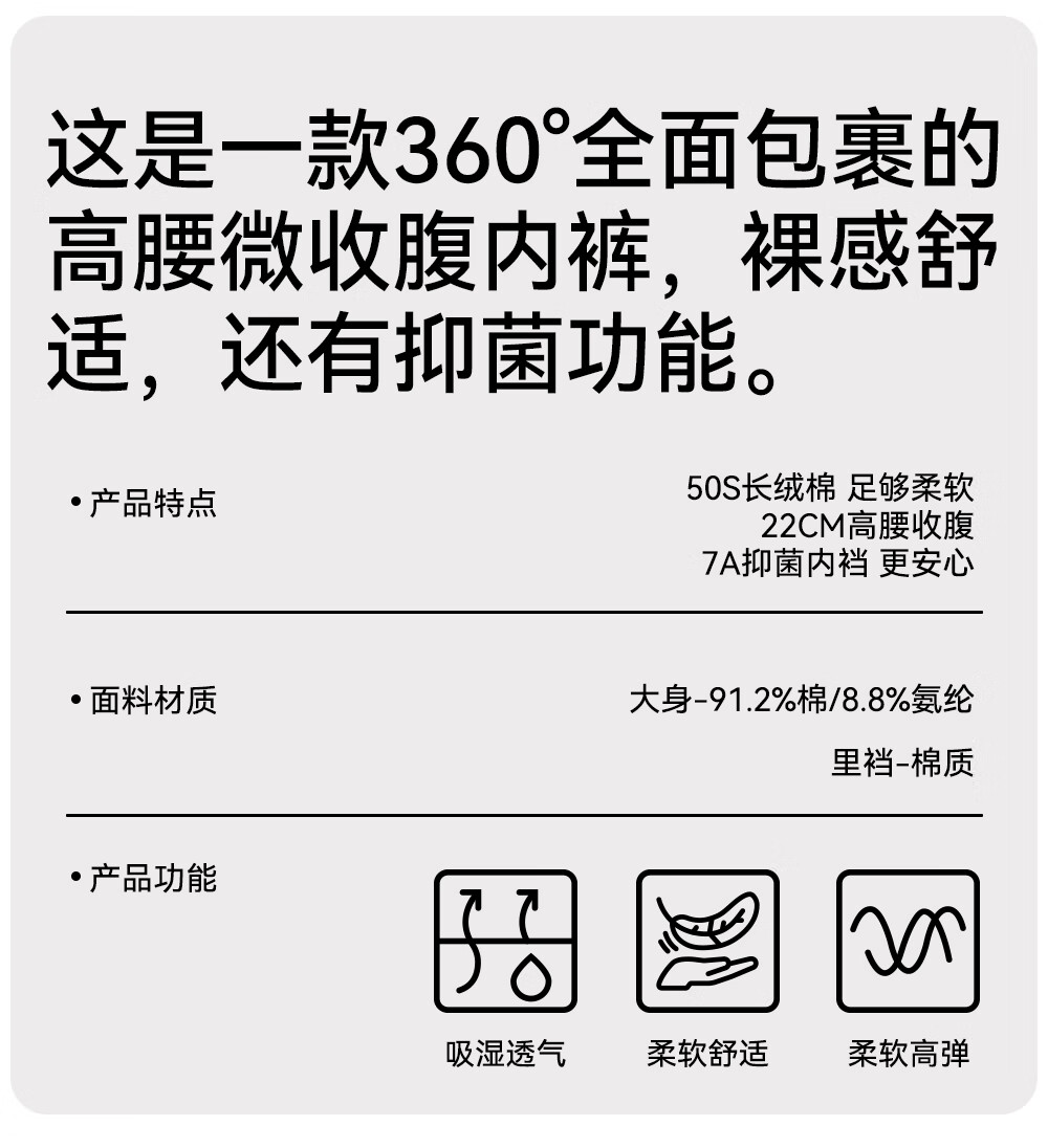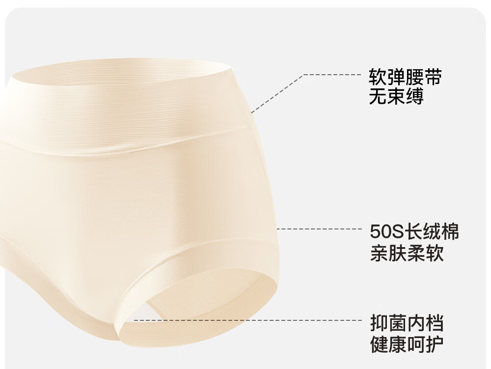菇娘家新疆长绒棉高腰内裤微收腹加长裆抗菌无痕高弹舒适女士三角裤大码