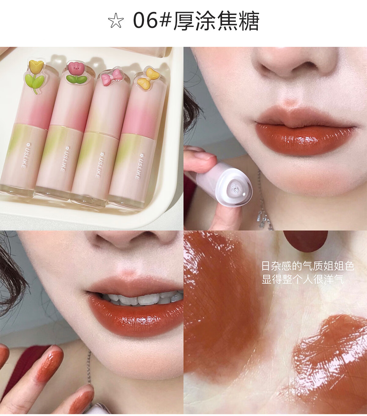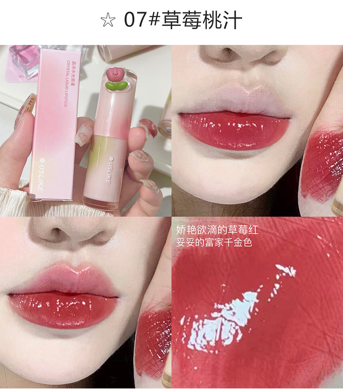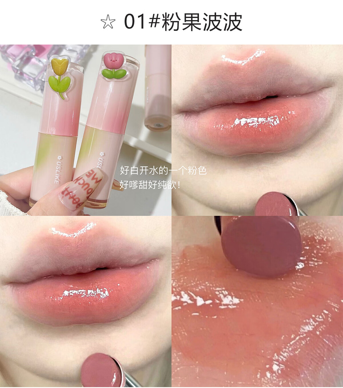 【甄选】灵光唇膏滋润保湿持久不易掉色玻璃唇纯欲嘟嘟水光口红学 01#粉果啵啵一支
