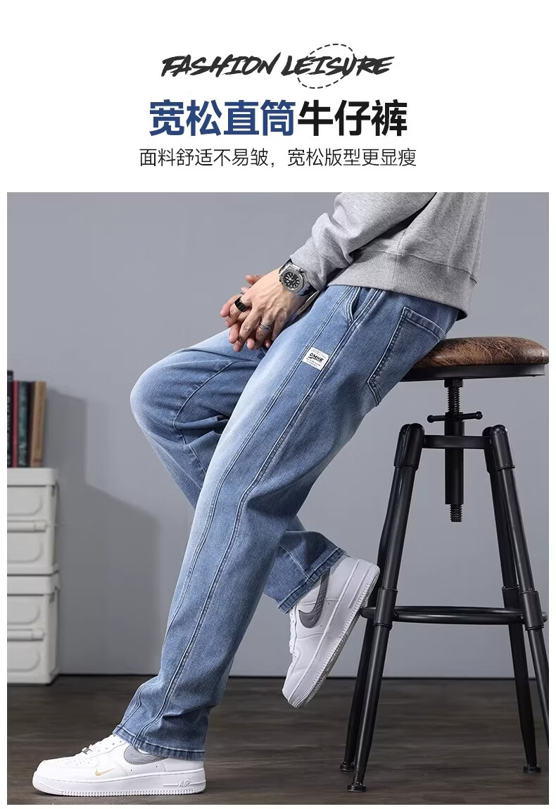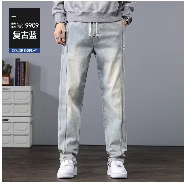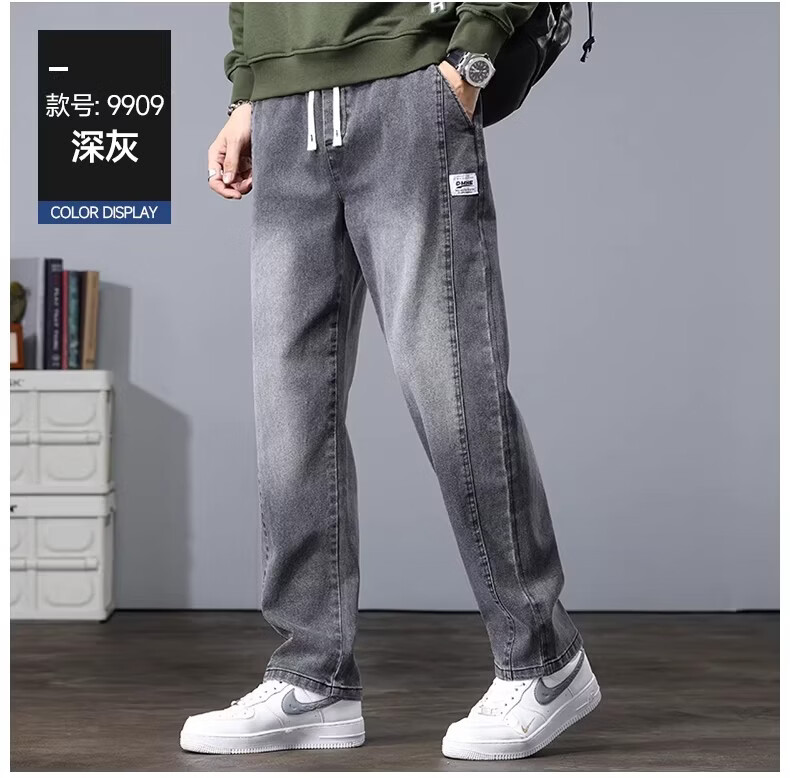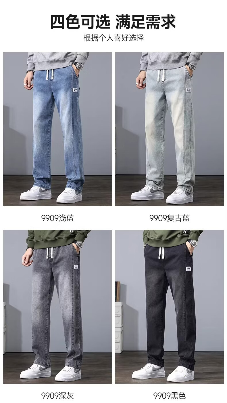 真维斯2026新款春秋季牛仔裤男士宽松潮牌松紧腰裤子男生休闲直筒长裤子 随机款 2XL