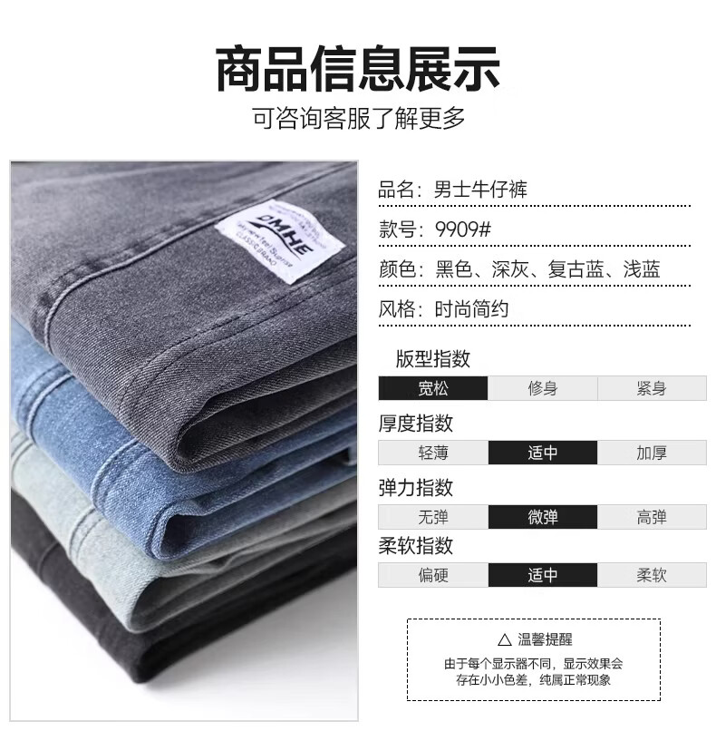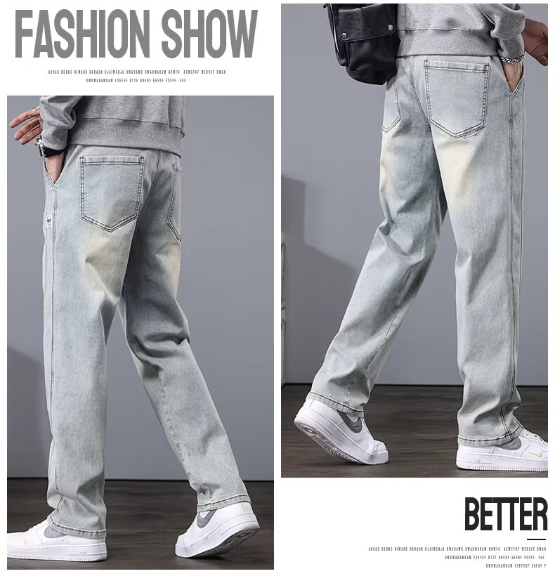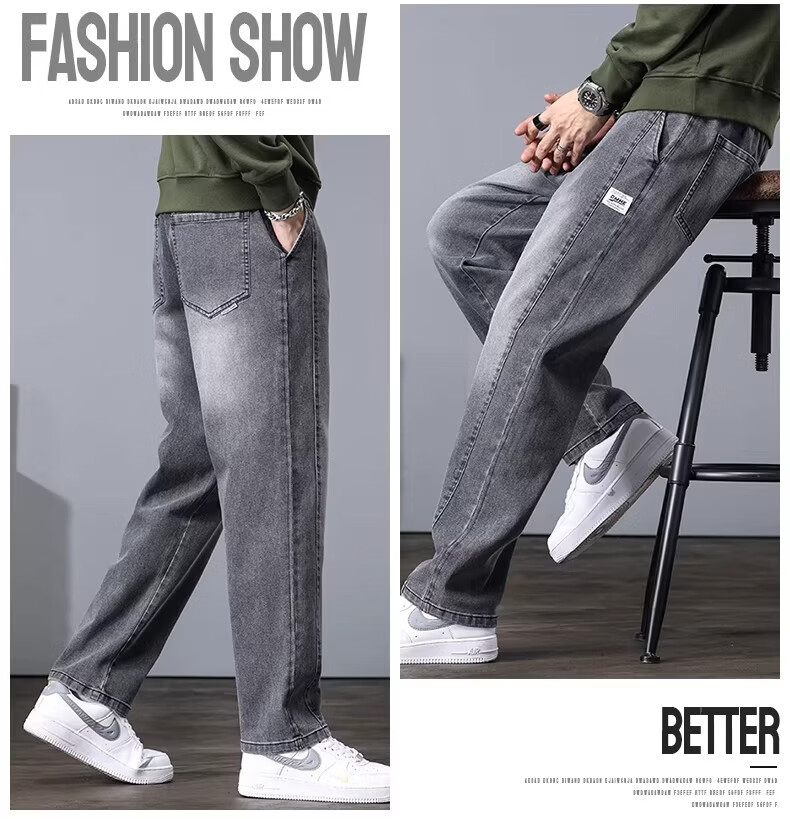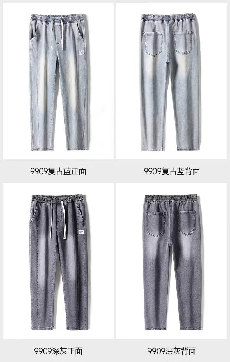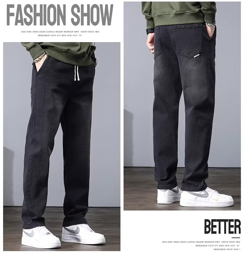 真维斯2026新款春秋季牛仔裤男士宽松潮牌松紧腰裤子男生休闲直筒长裤子 随机款 2XL