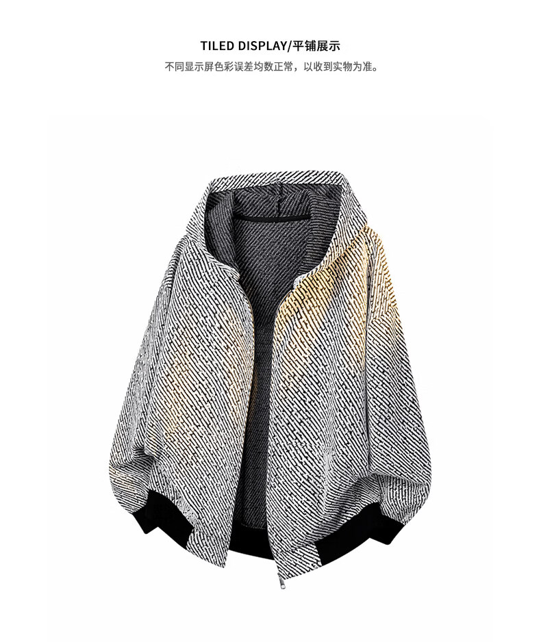 真维斯(Jeanswest)2026冬季新款男士连帽夹克高级感潮牌痞帅美式休闲条纹休闲外套男 灰色 L 建议116-125斤