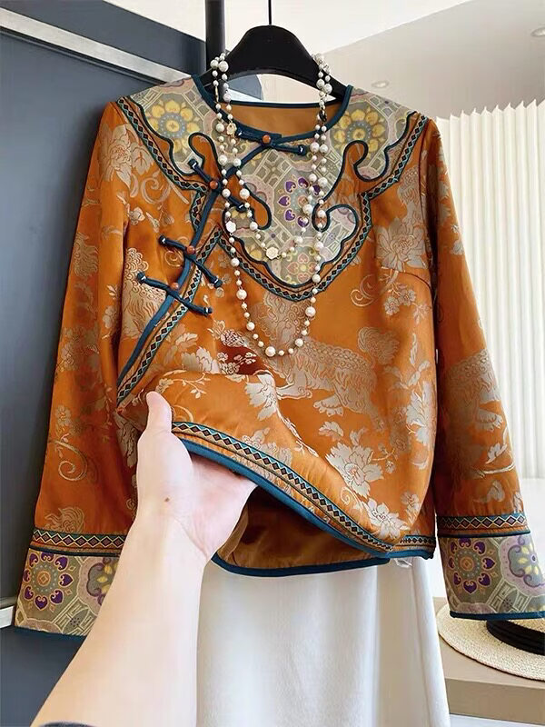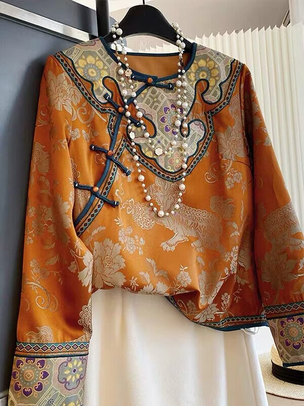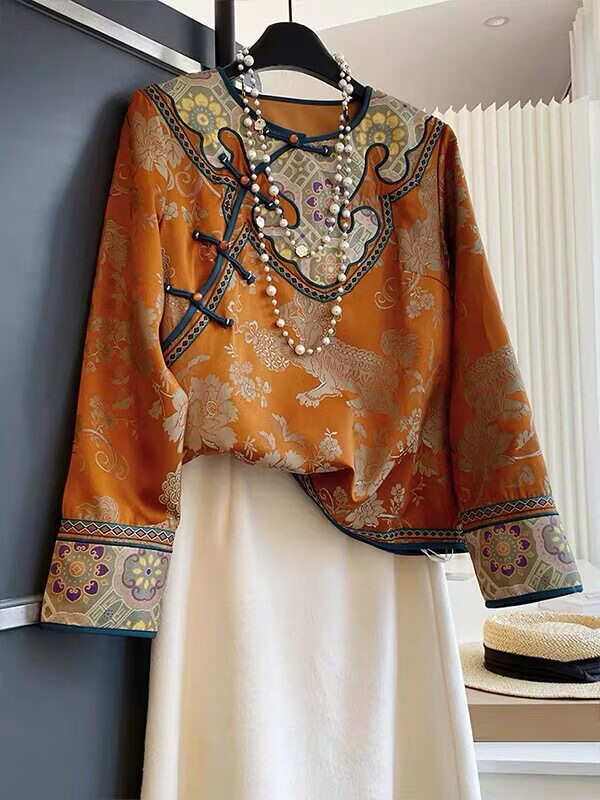 MODX专柜捡漏新中式国风上衣橙色圆领长袖宽松唐装禅意2026早春新款 橙色 S