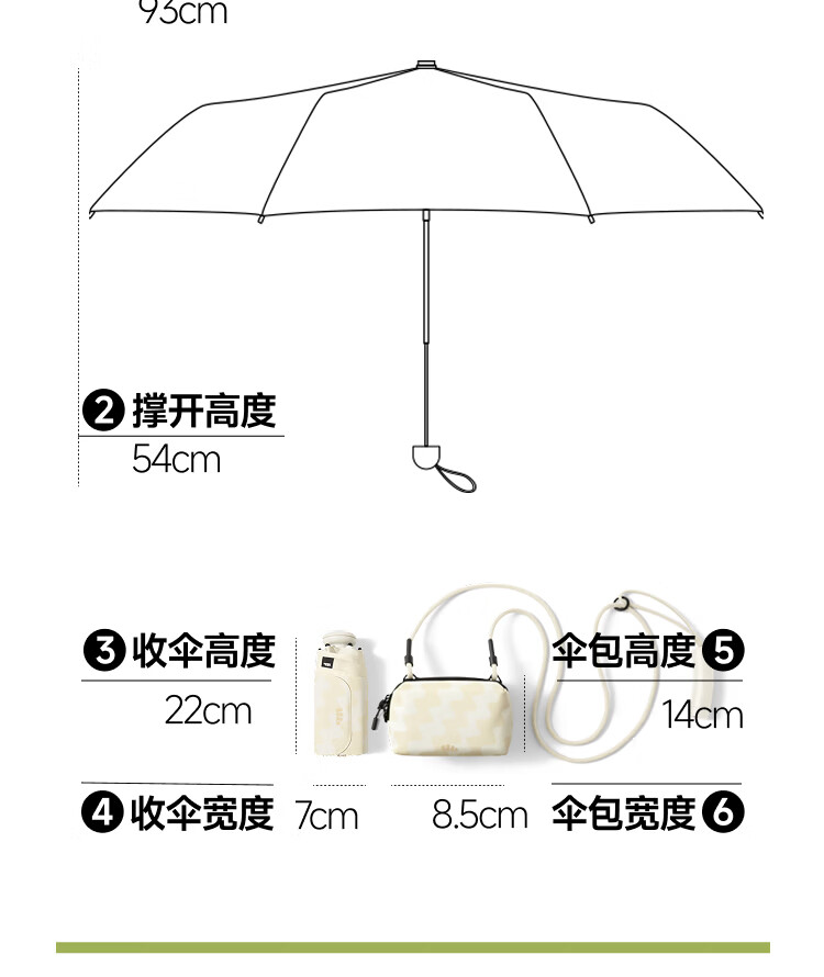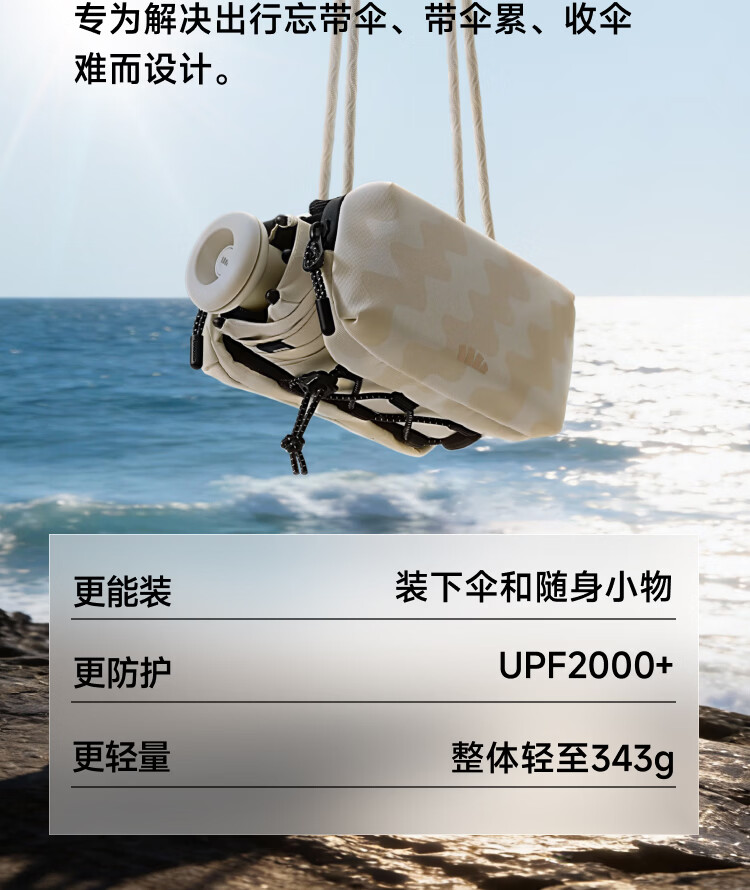 蕉下(beneunder)防紫外线遮阳伞六折黑胶晴雨伞户外便携防晒伞BM003 烟熏芝麻