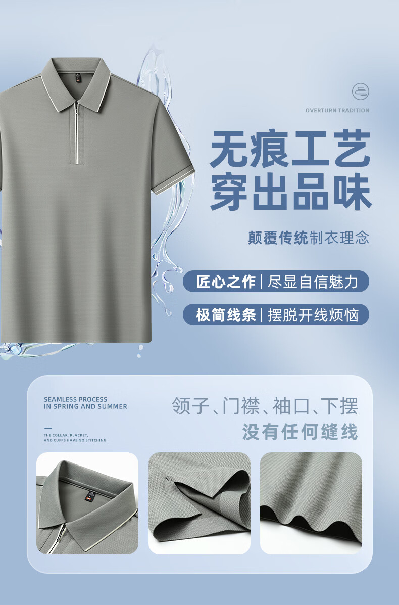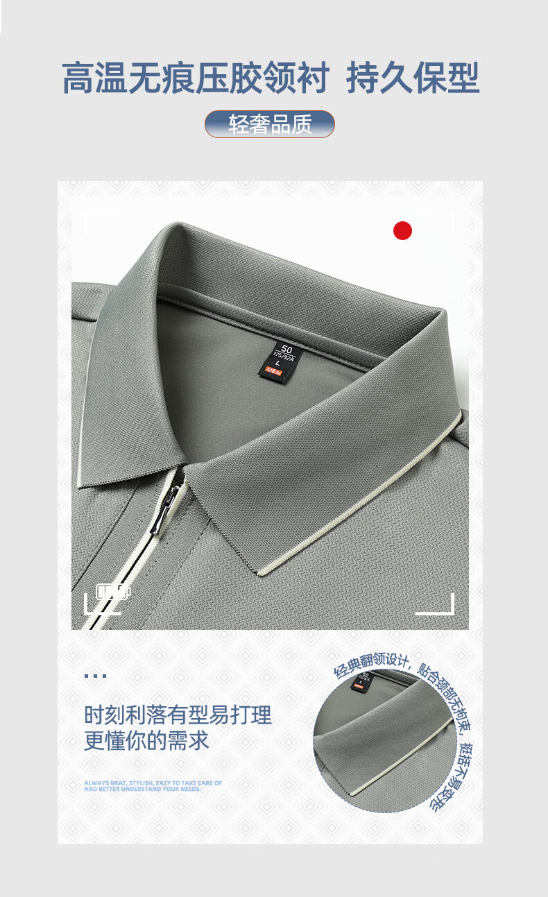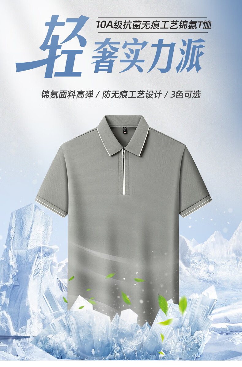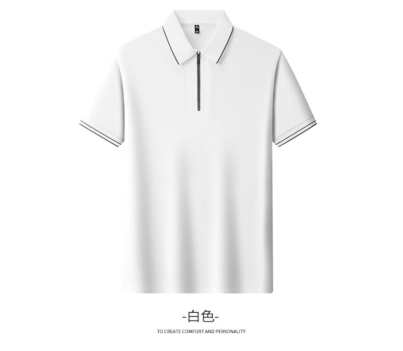 SHANSHAN杉杉【10A抗菌+凉感】短袖T恤男夏季纯色拉链领polo商务休闲上衣 白色 M /170