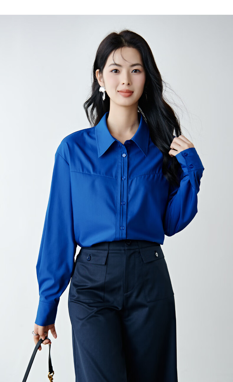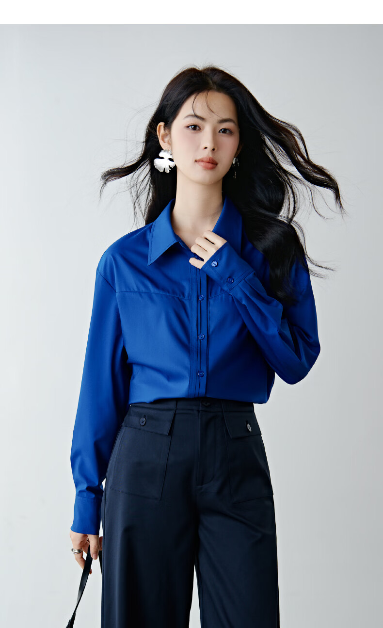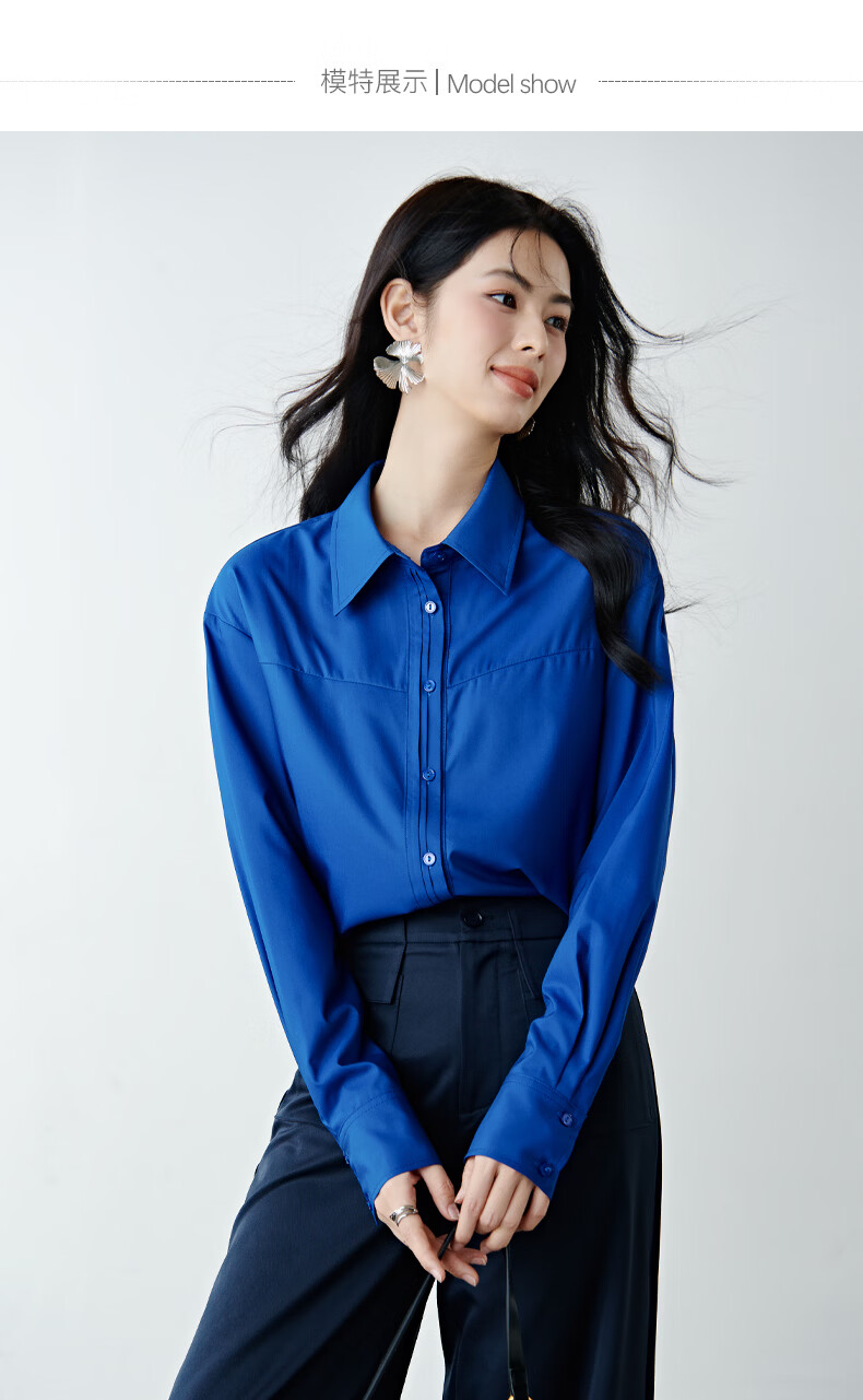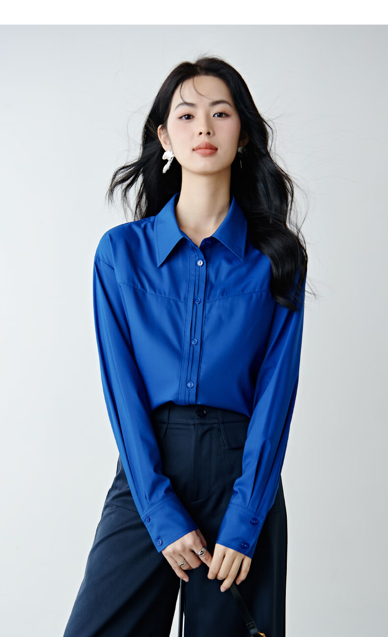 晚白克莱因蓝显白减龄衬衫2026春款潮流韩系气质百搭法式通勤大码衬衣 克莱因蓝 XL